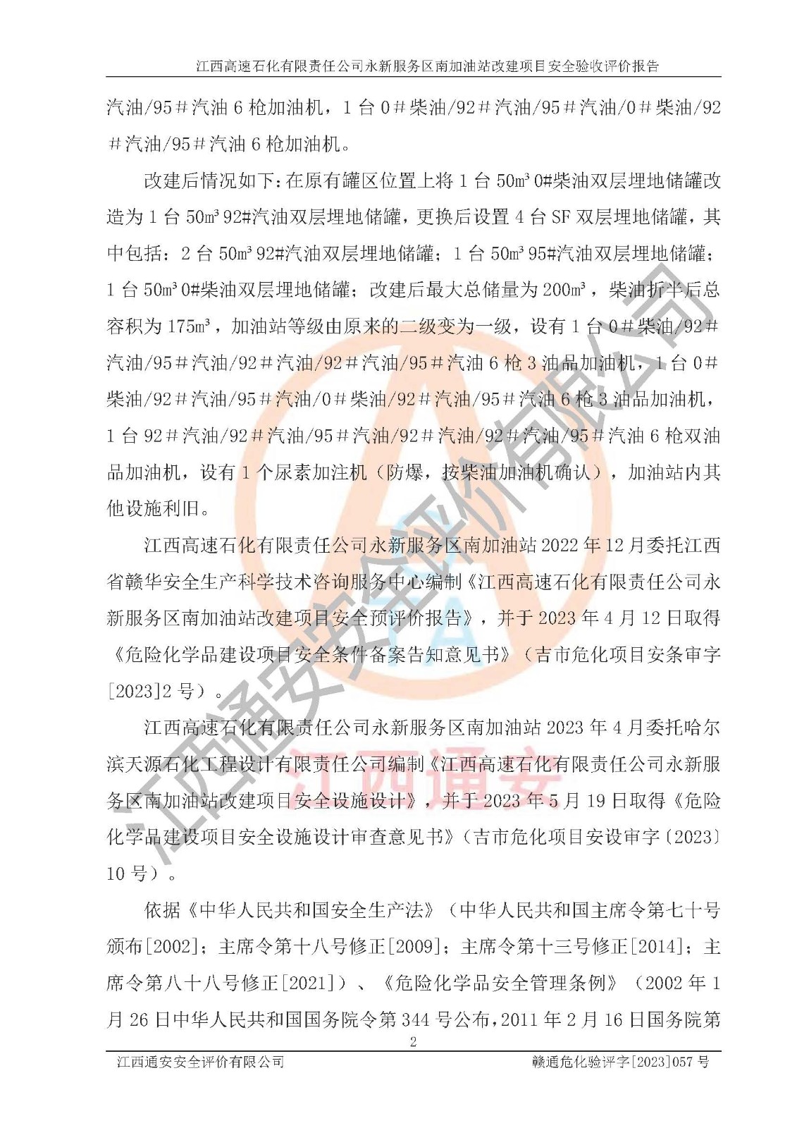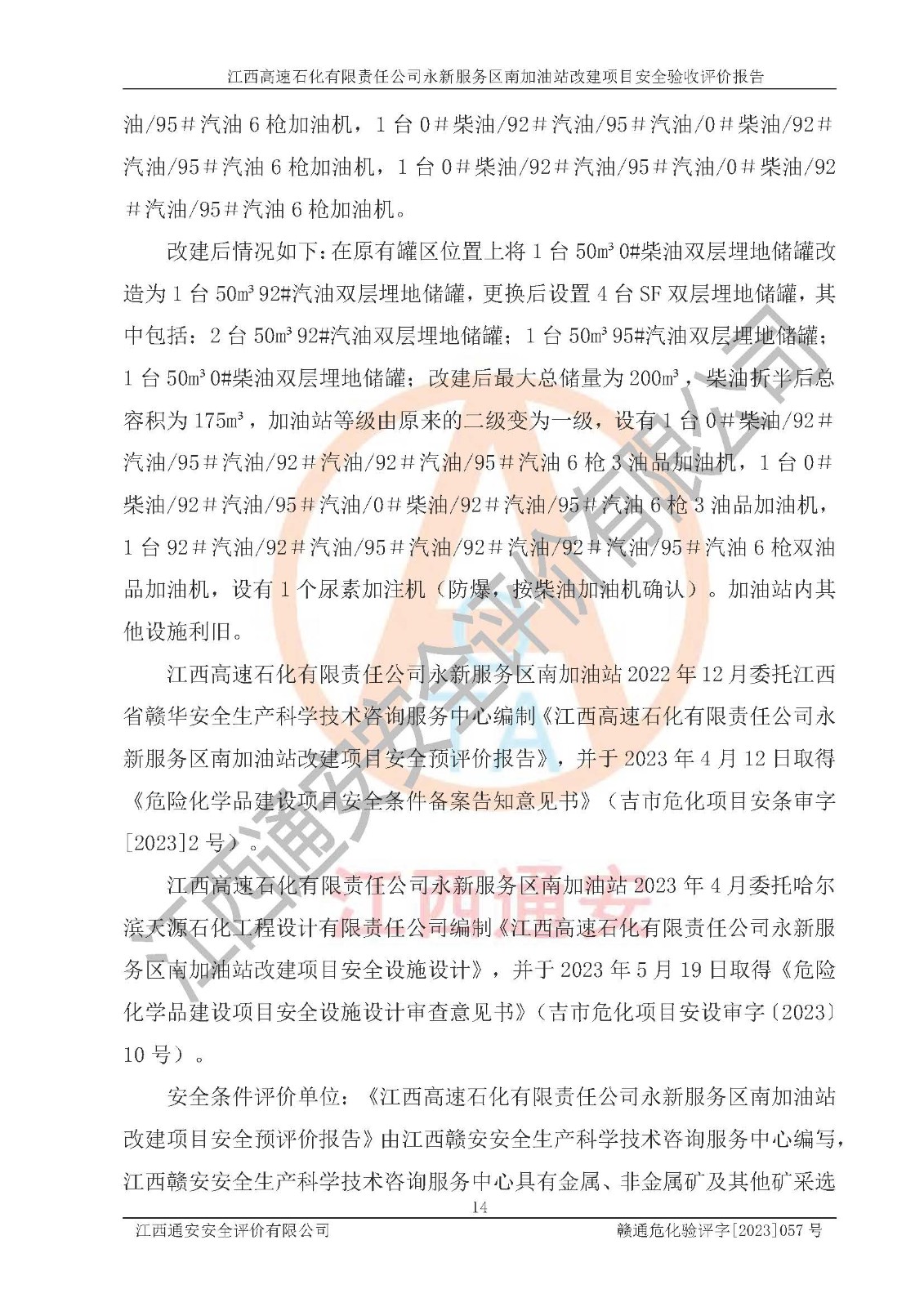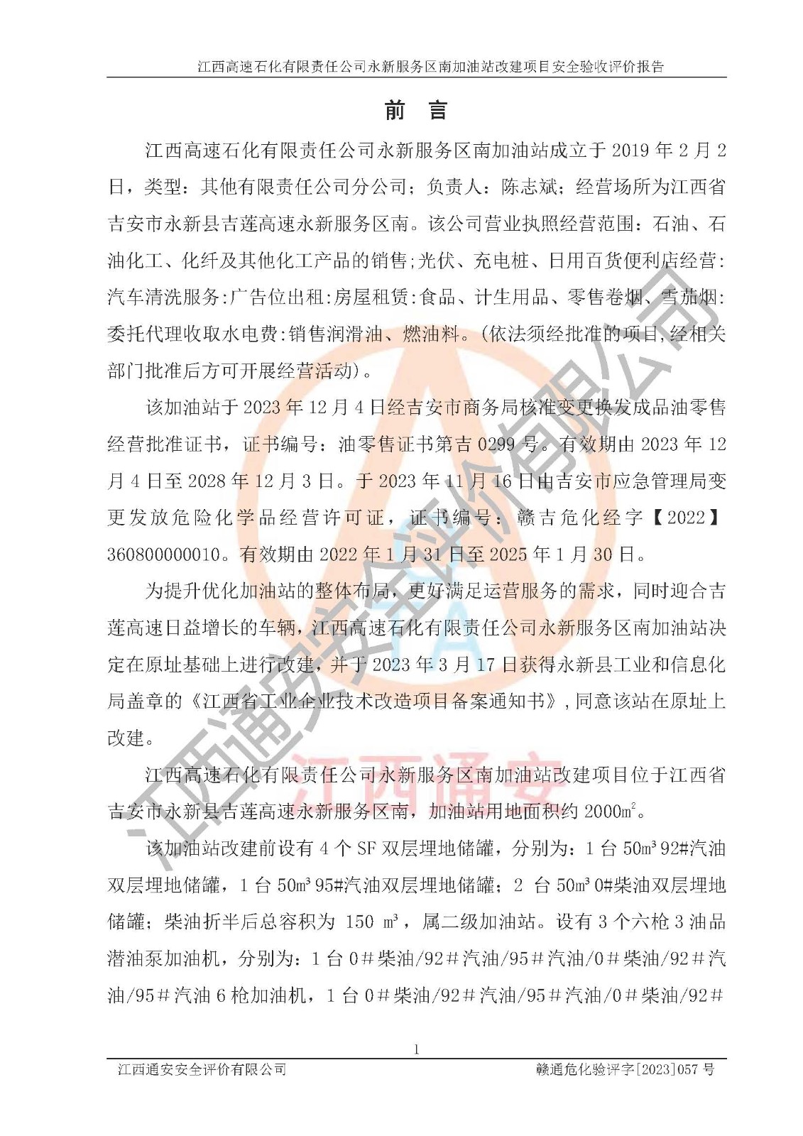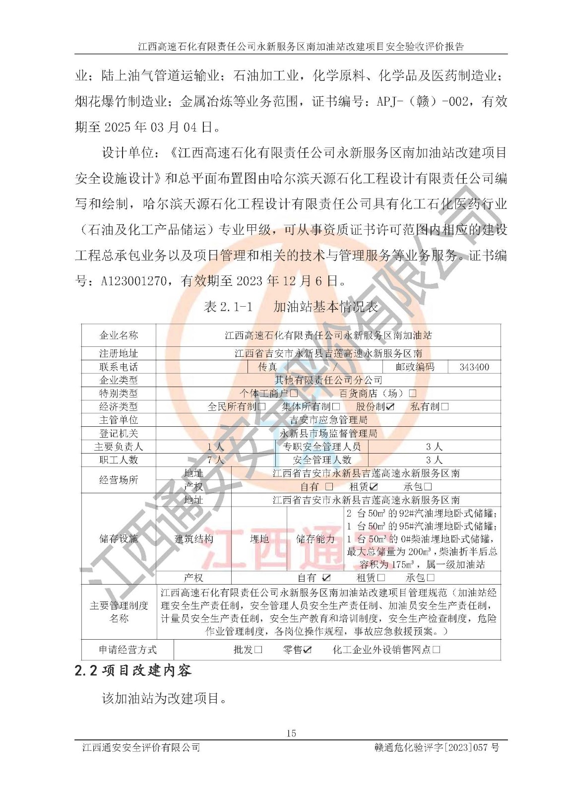 項(xiàng)目名稱(chēng)  | 江西高速石化有限責(zé)任公司永新服務(wù)區(qū)南加油站改建項(xiàng)目安全驗(yàn)收評(píng)價(jià)報(bào)告  | ||||