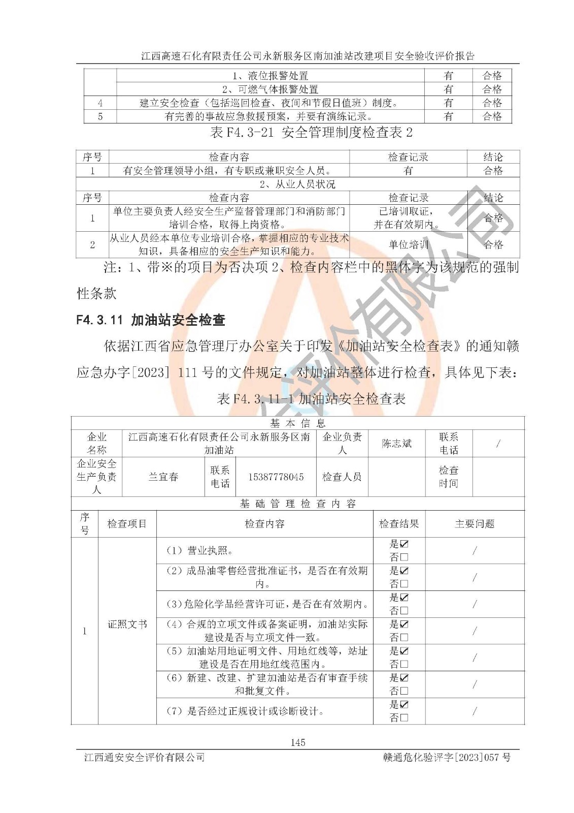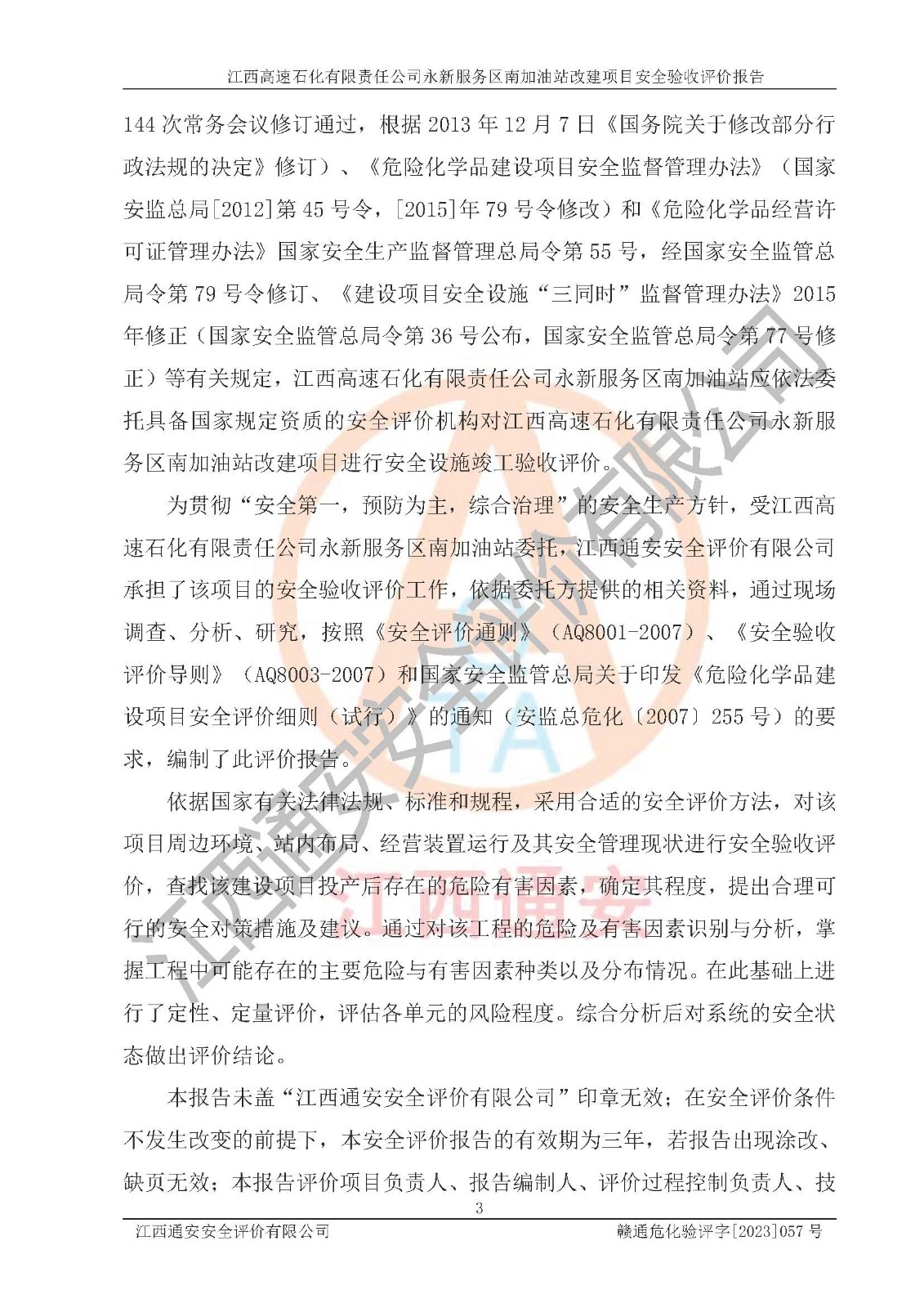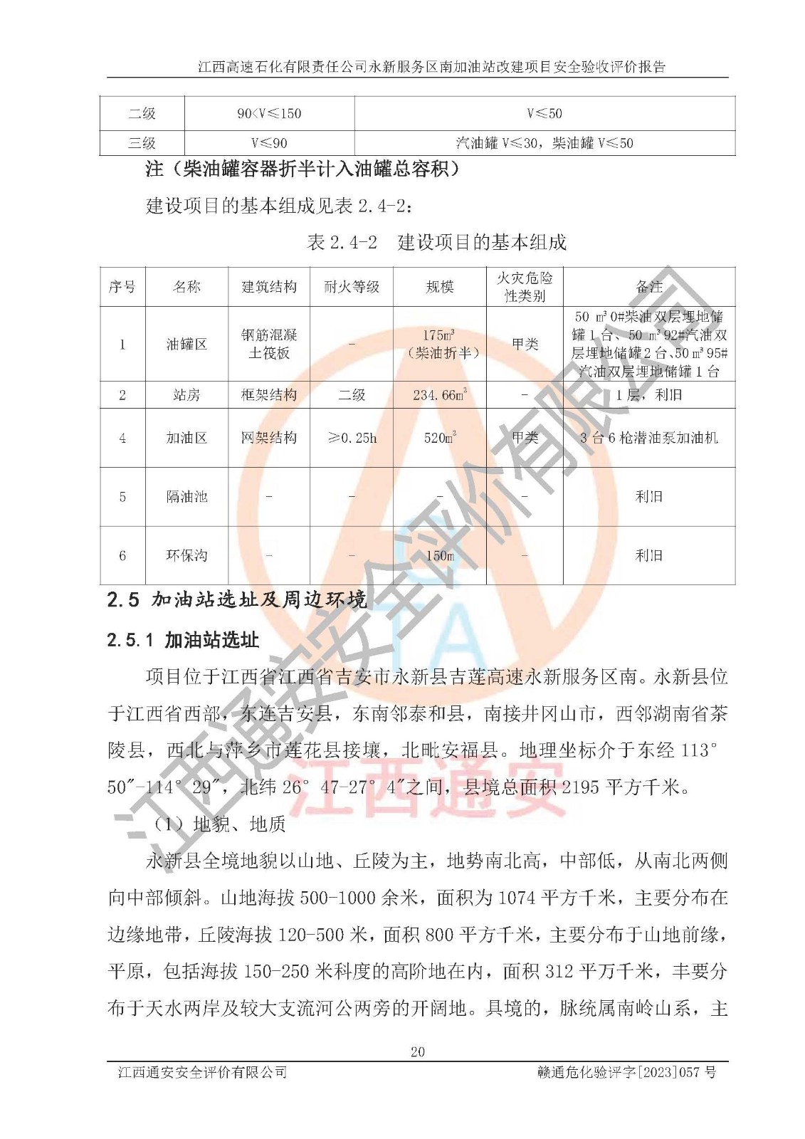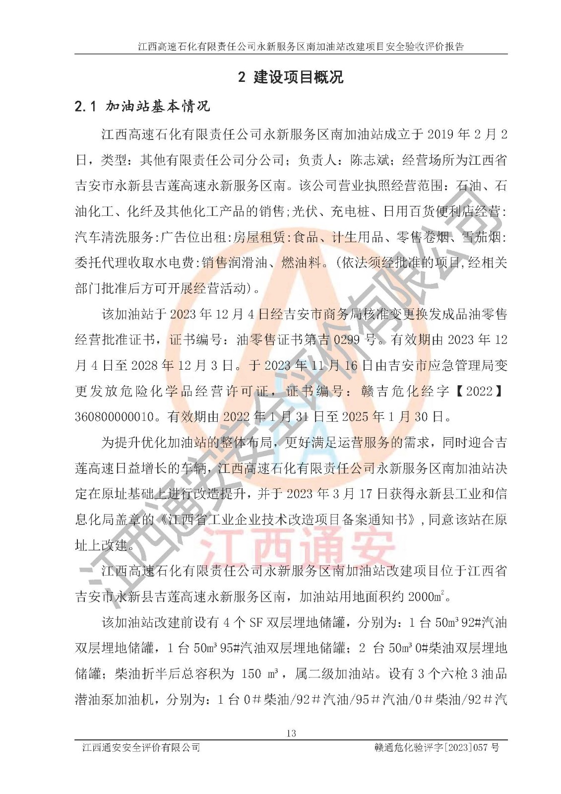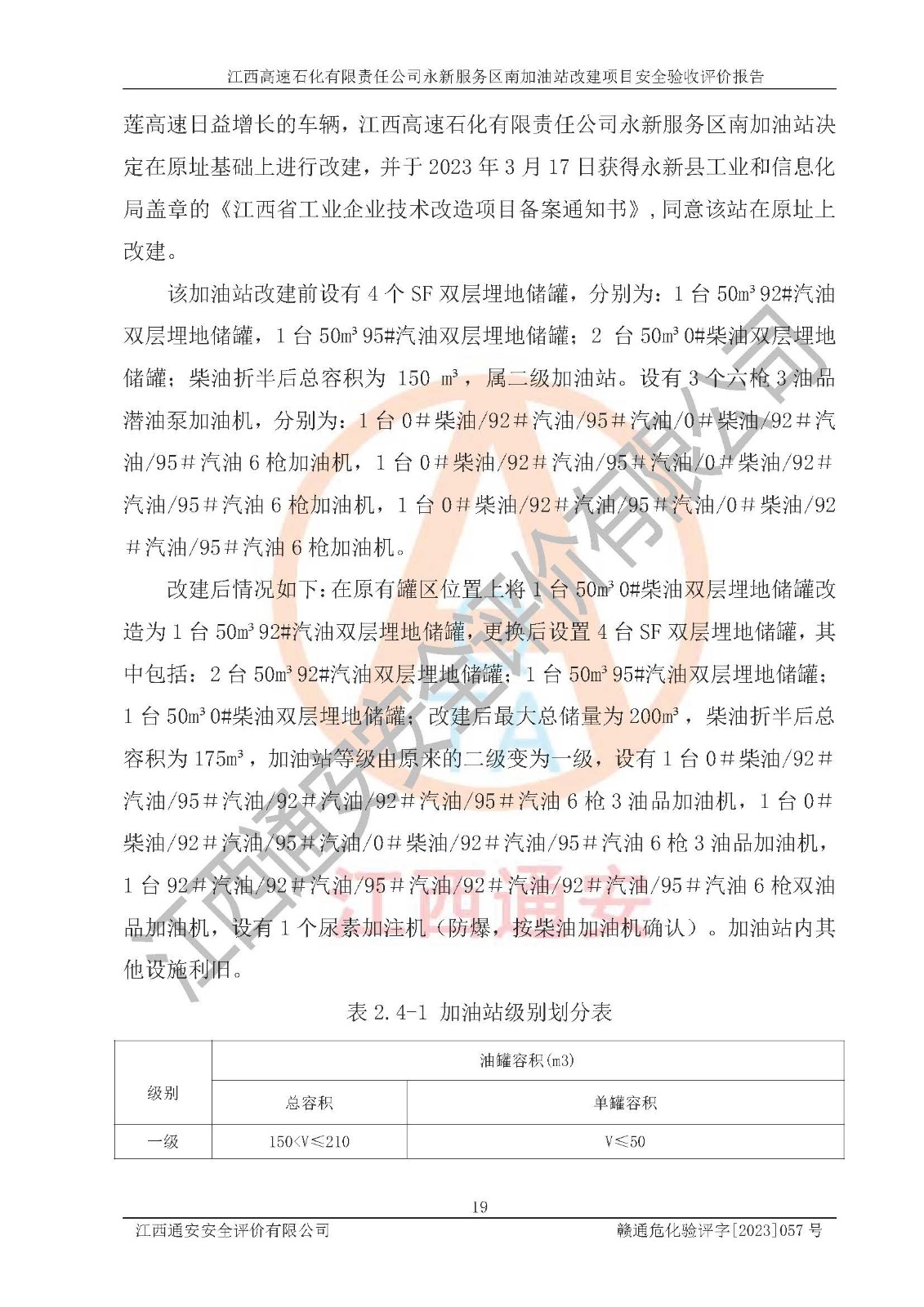 項(xiàng)目名稱(chēng)  | 江西高速石化有限責(zé)任公司永新服務(wù)區(qū)南加油站改建項(xiàng)目安全驗(yàn)收評(píng)價(jià)報(bào)告  | ||||