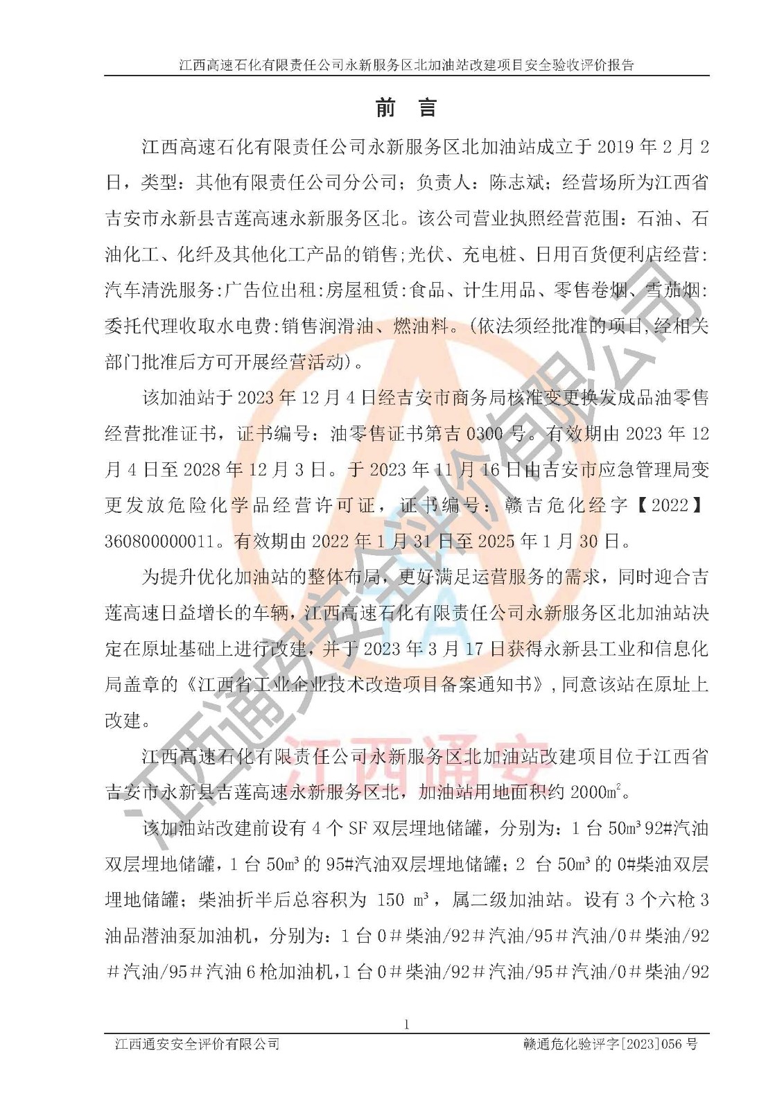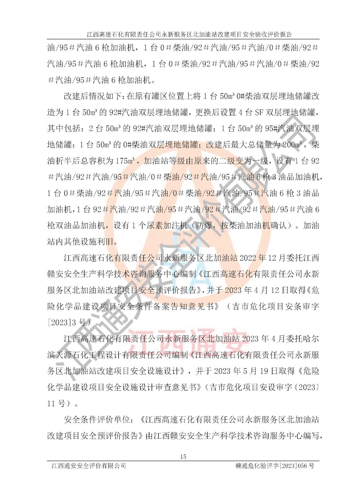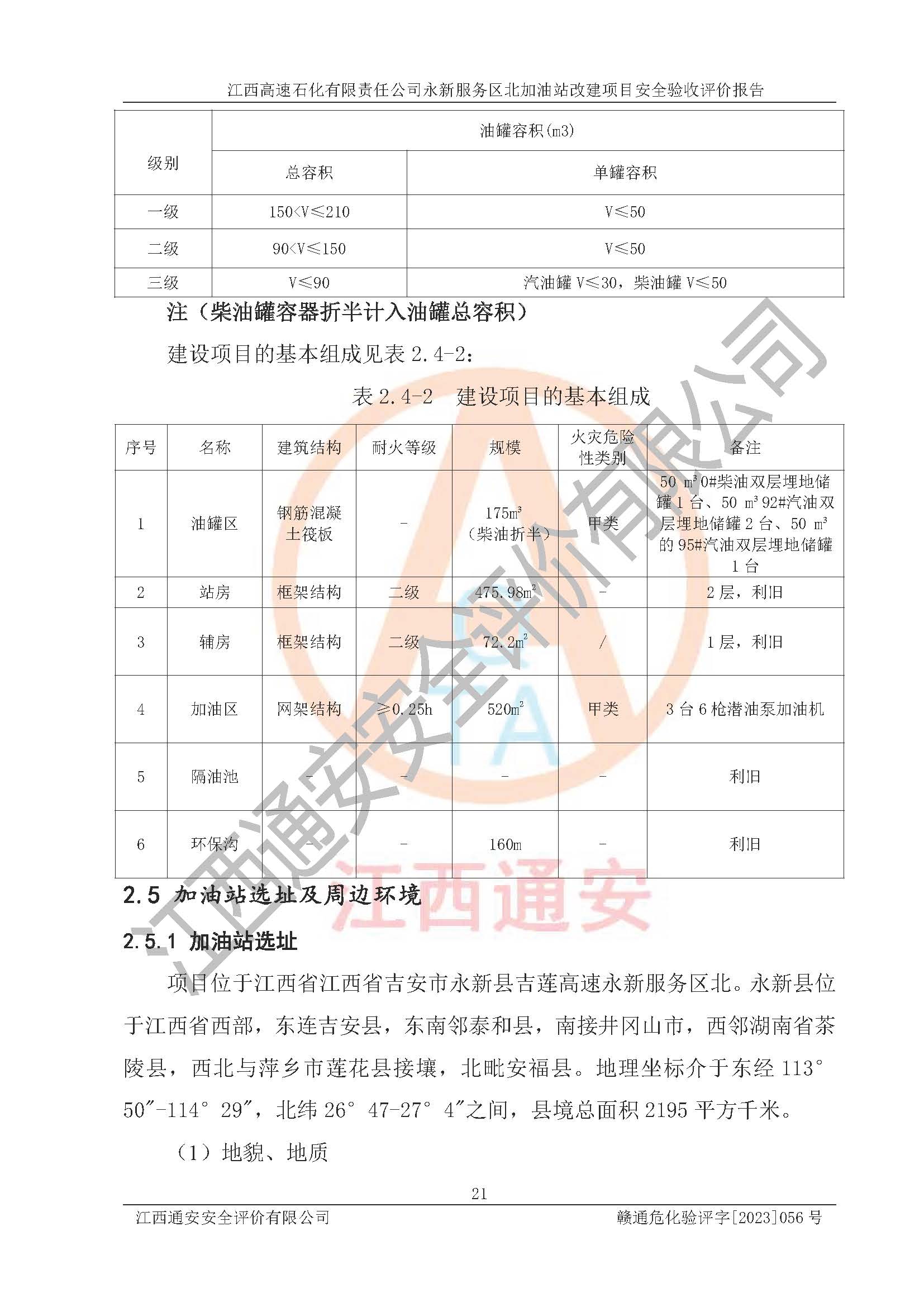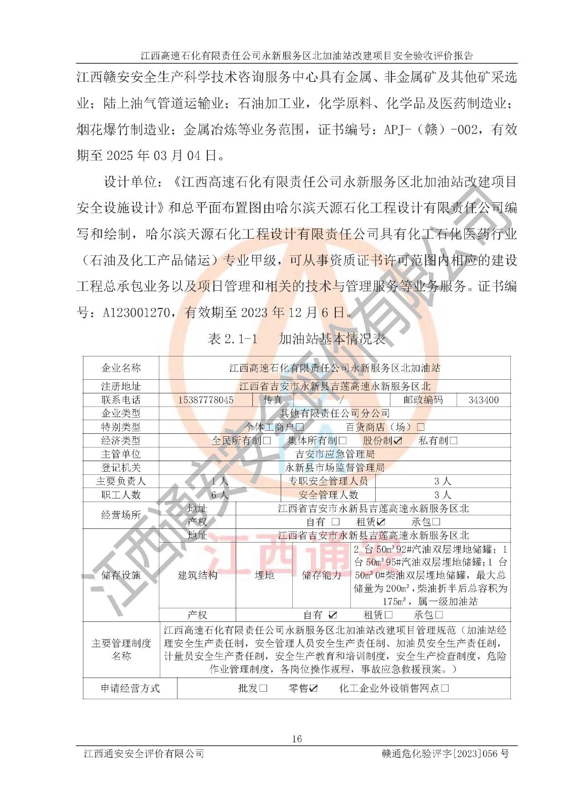 項(xiàng)目名稱 | 江西高速石化有限責(zé)任公司永新服務(wù)區(qū)北加油站改建項(xiàng)目安全驗(yàn)收評價報告 | ||||