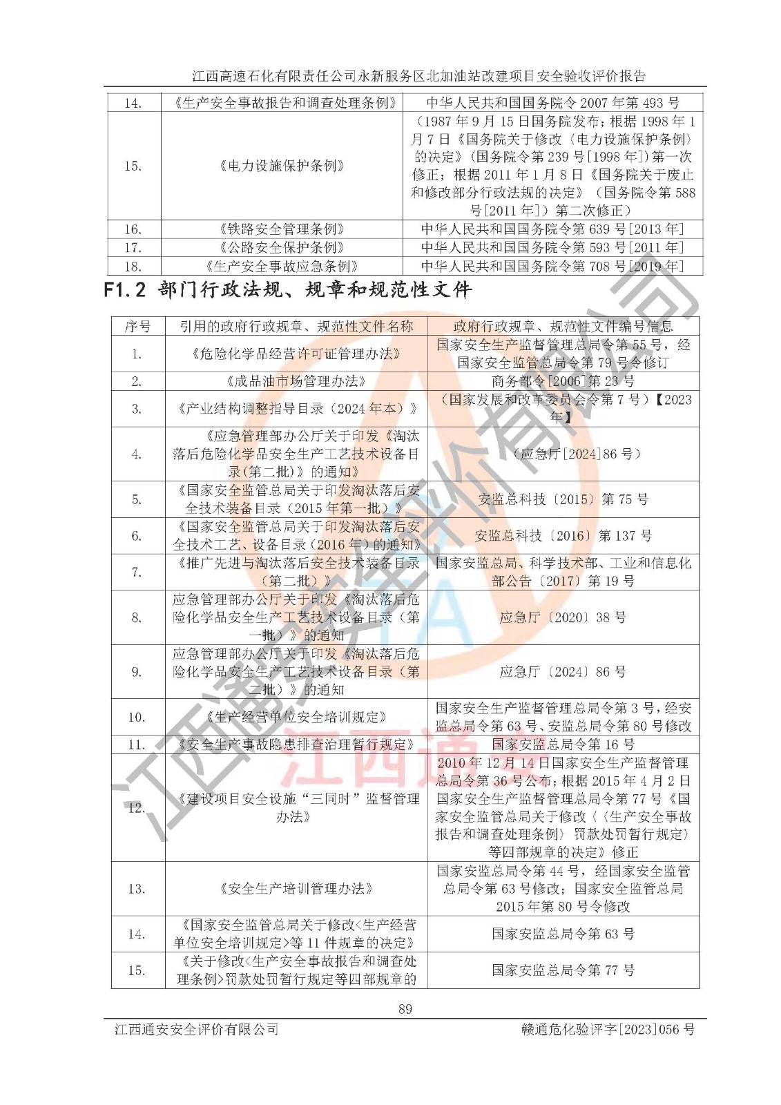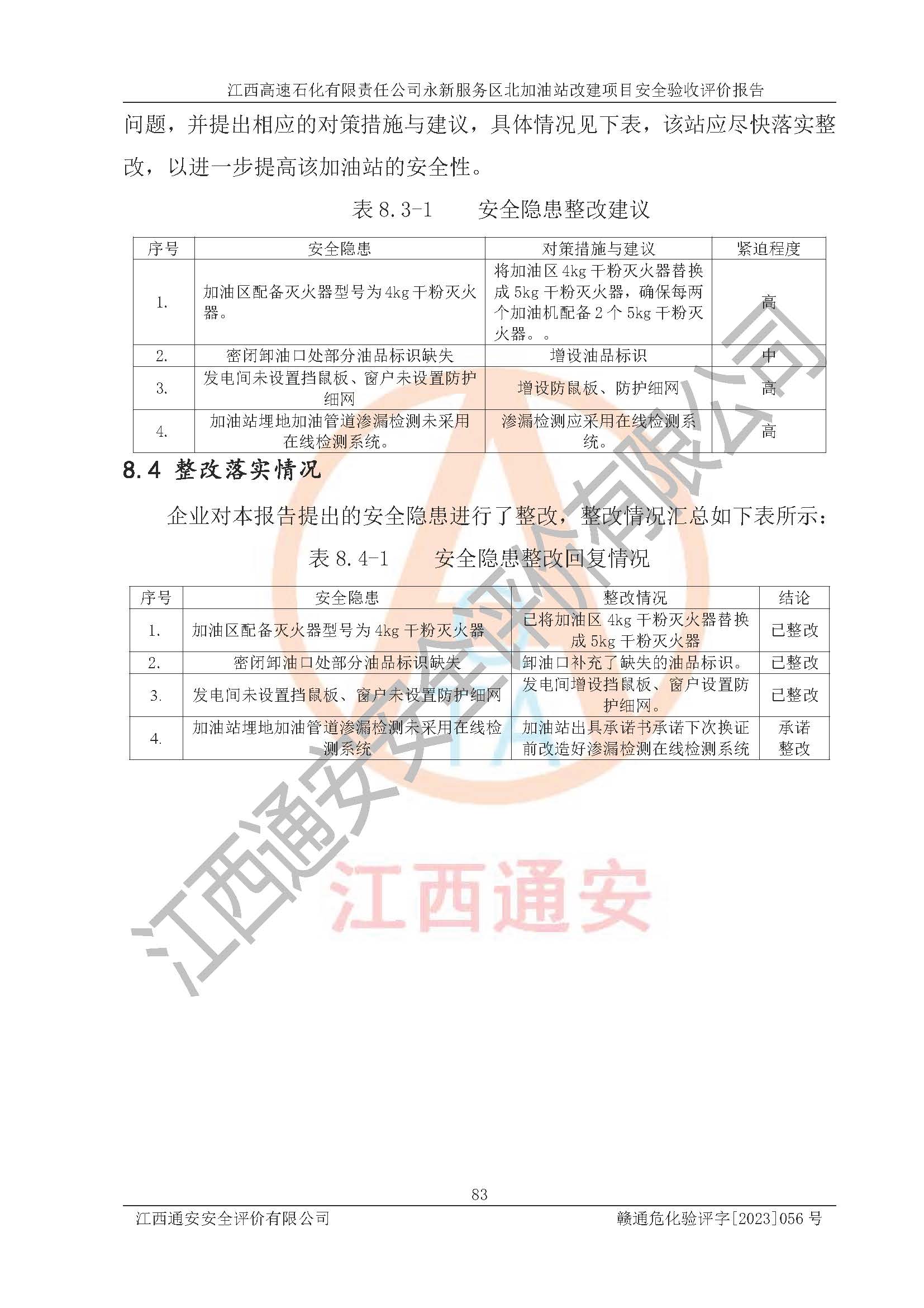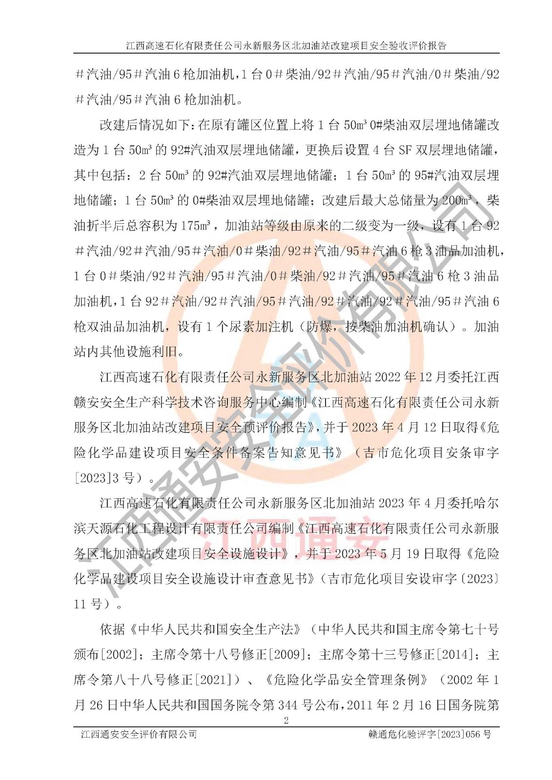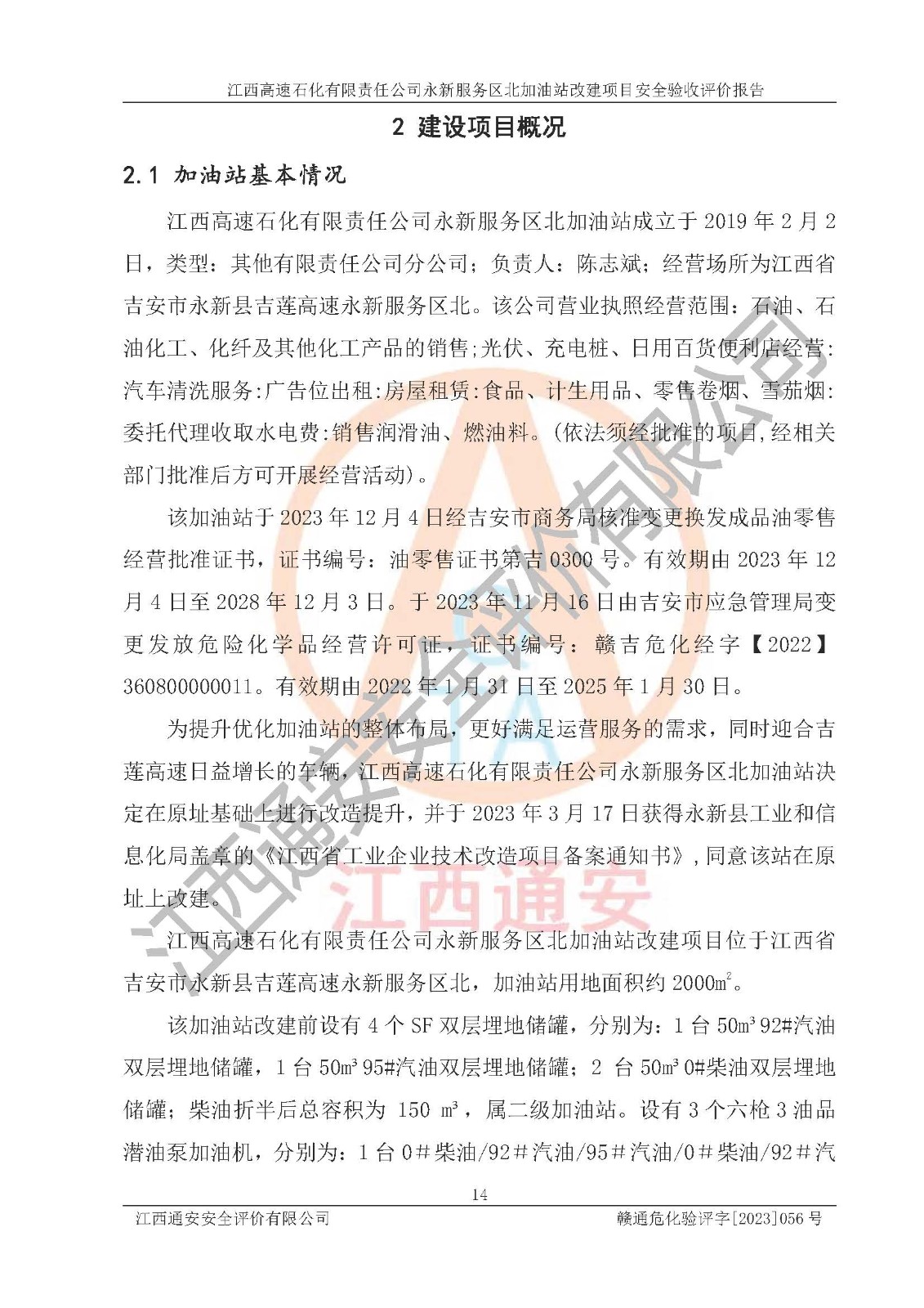 項(xiàng)目名稱 | 江西高速石化有限責(zé)任公司永新服務(wù)區(qū)北加油站改建項(xiàng)目安全驗(yàn)收評價報告 | ||||
