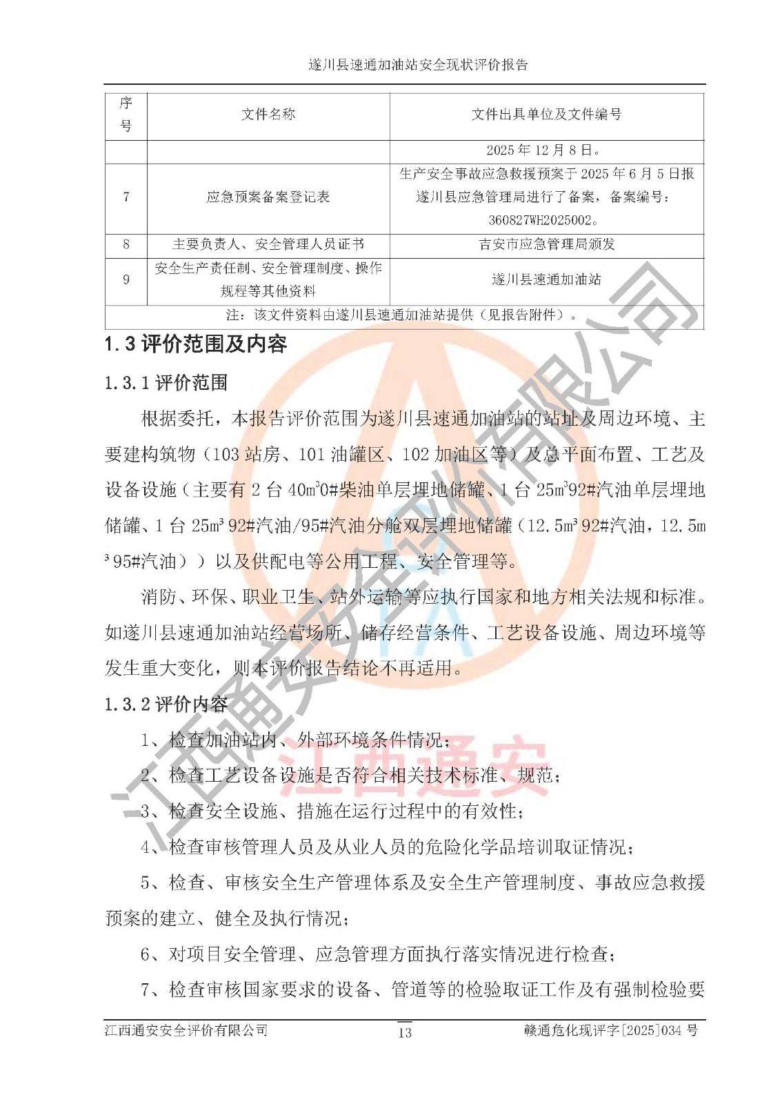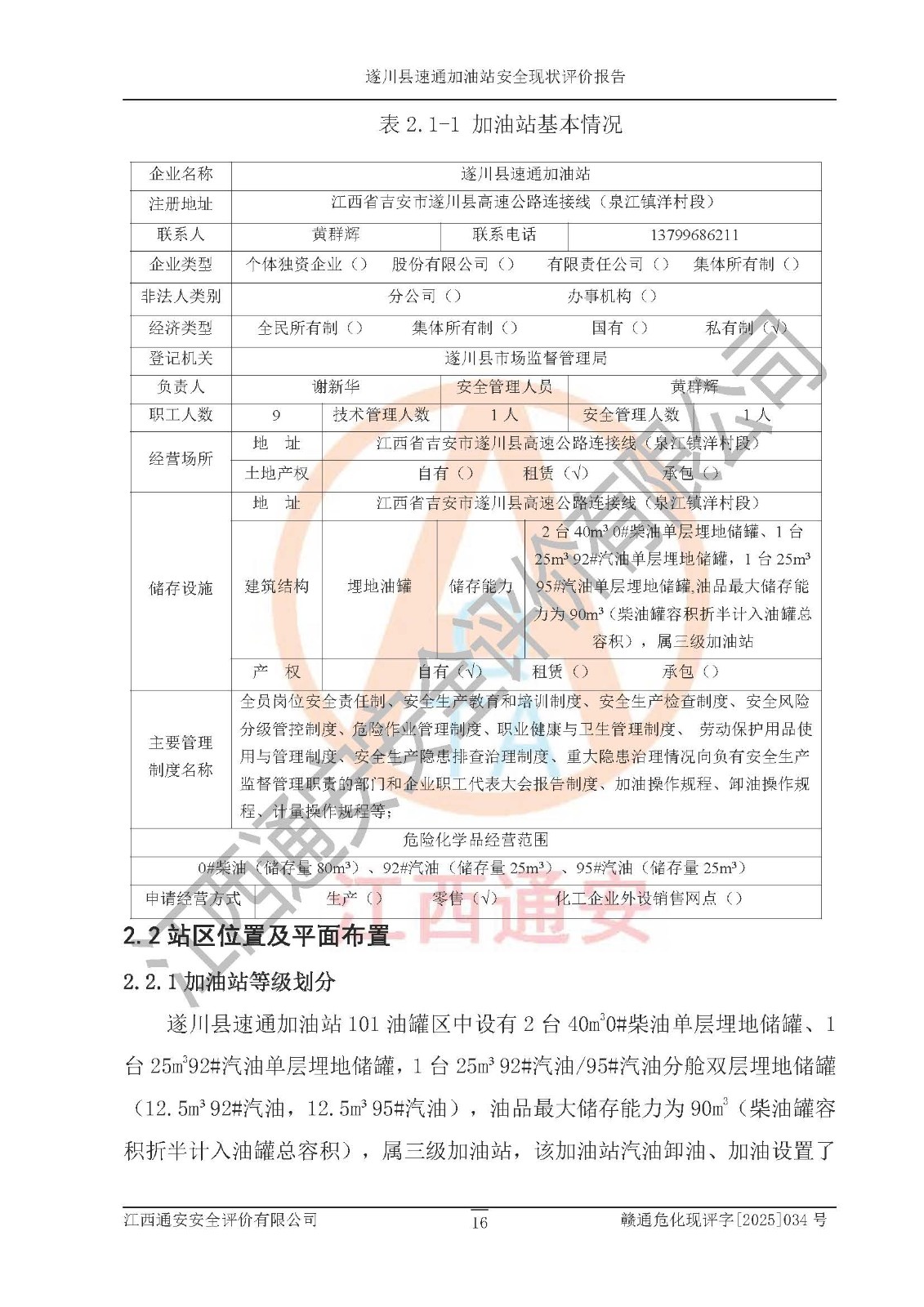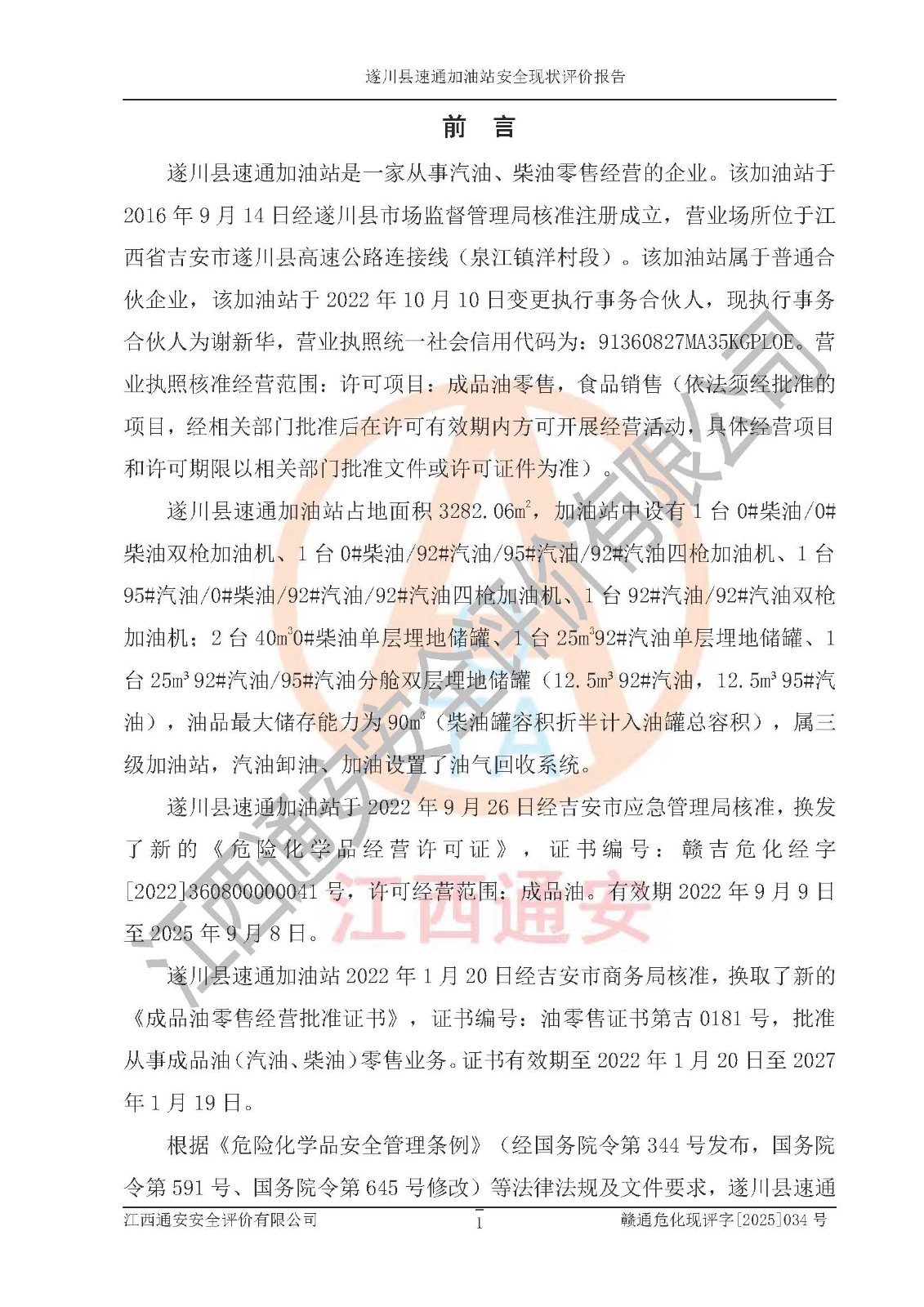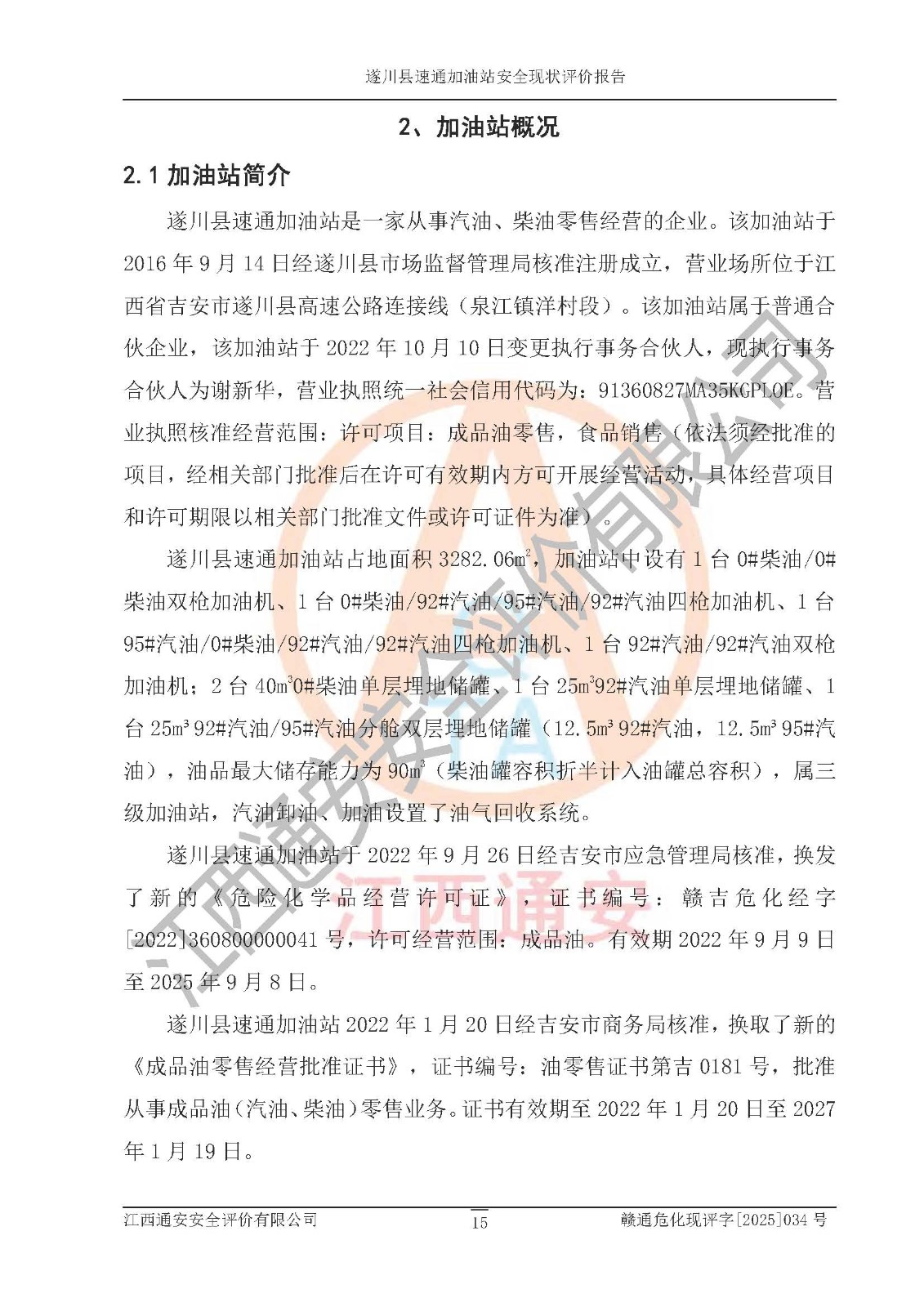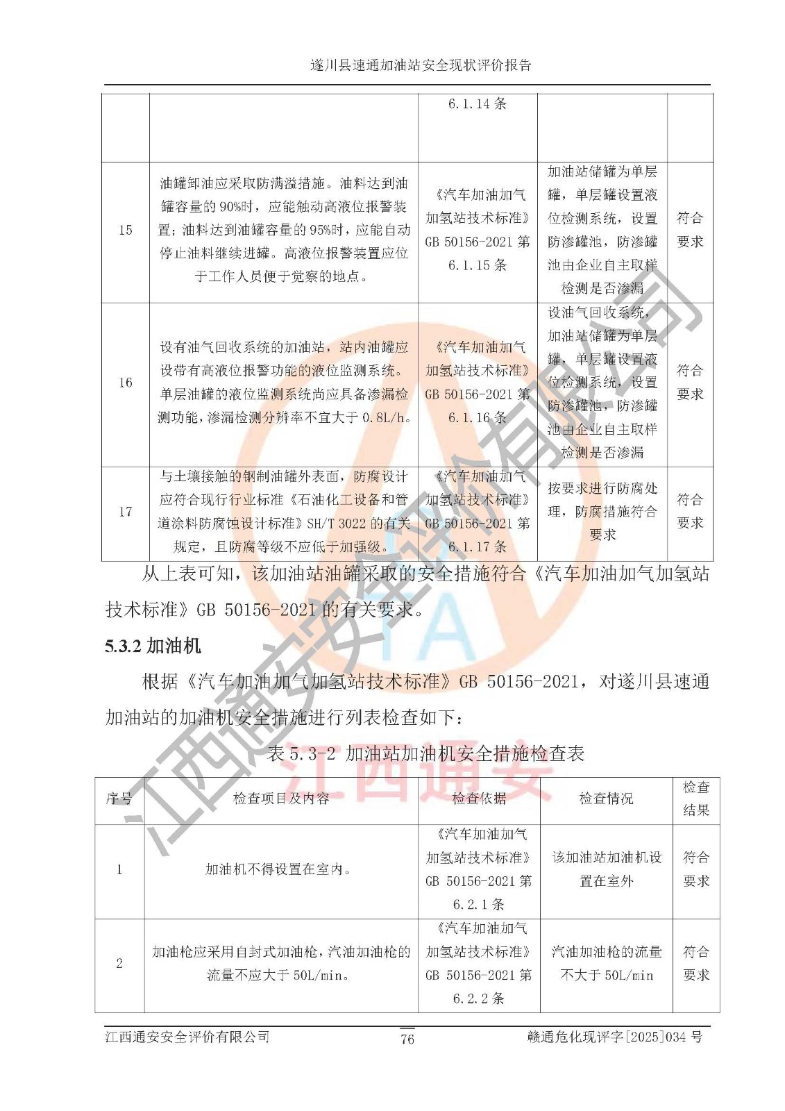 項目名稱 | 遂川縣速通加油站安全現(xiàn)狀評價報告 | ||||