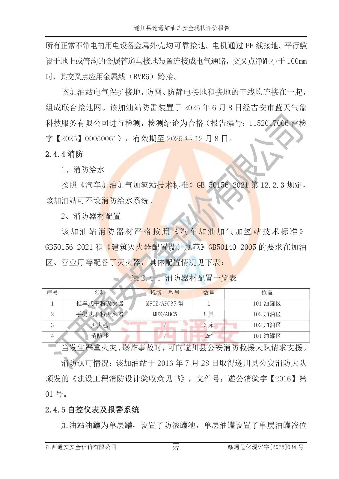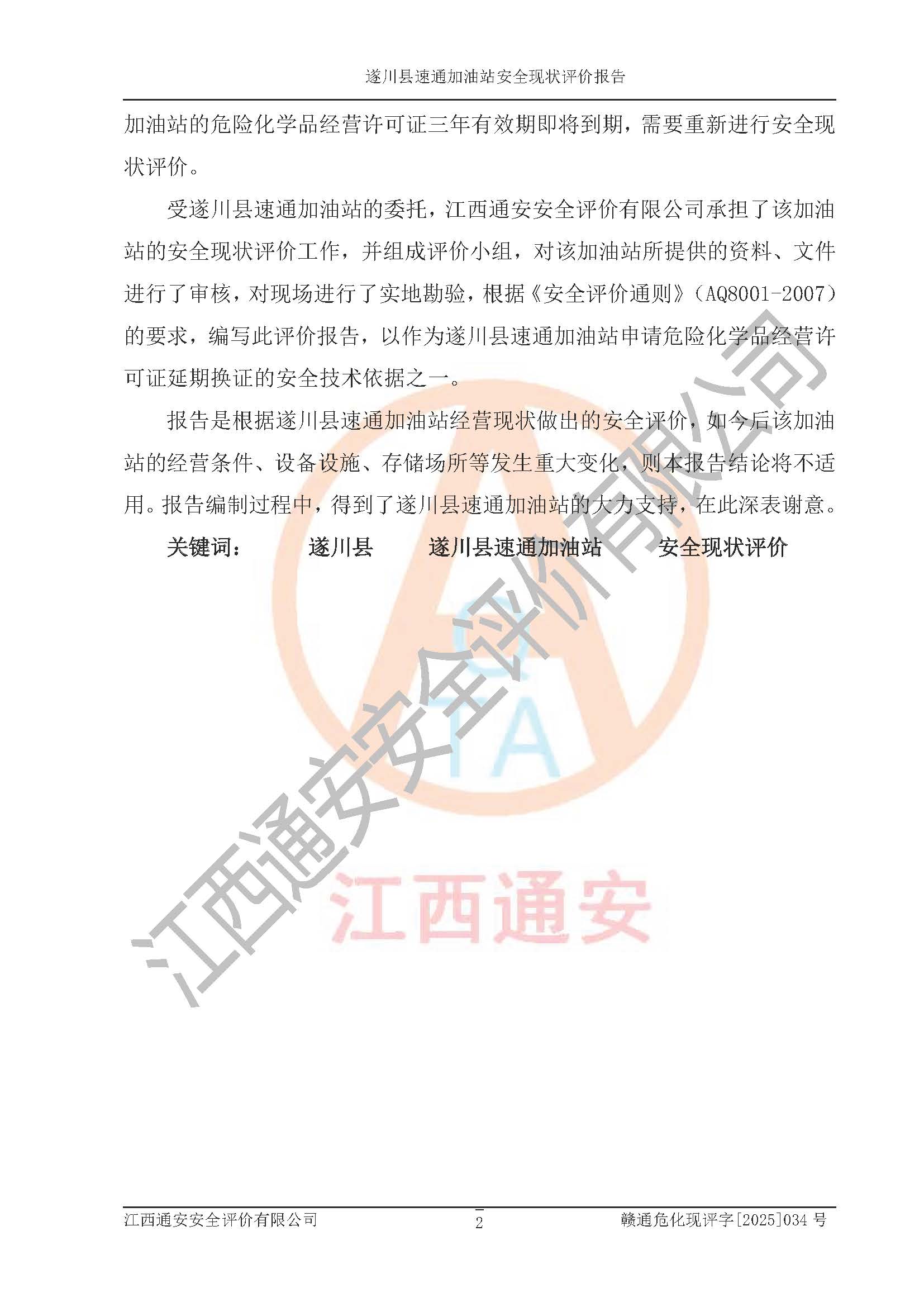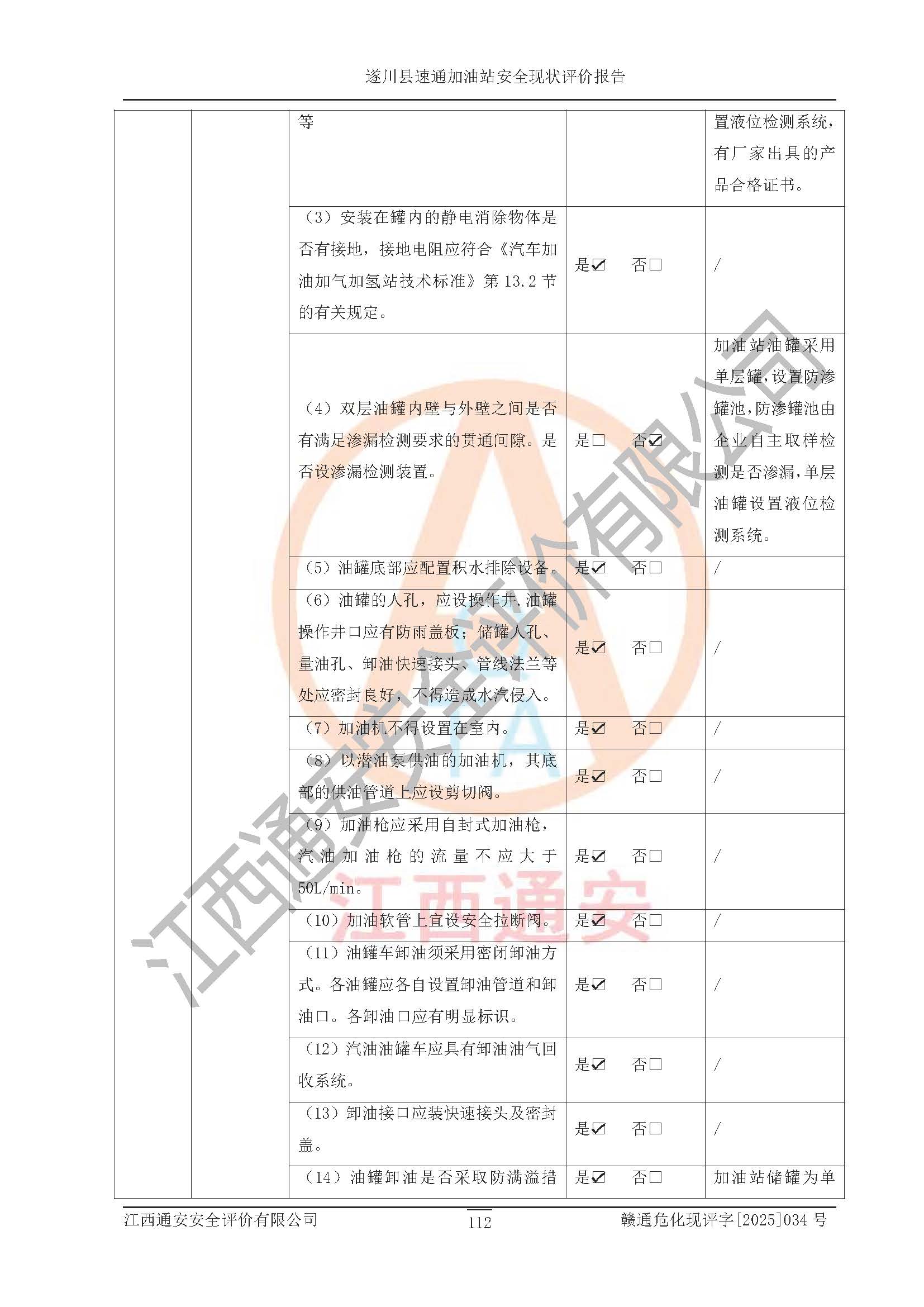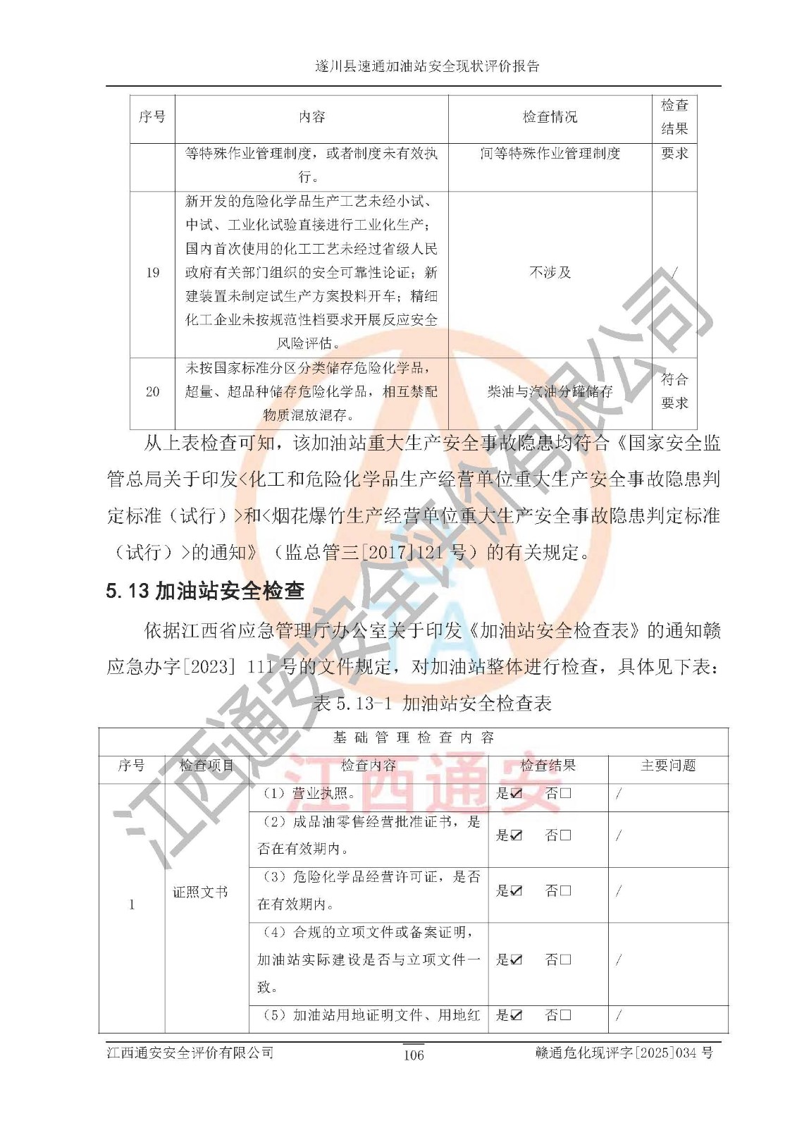 項目名稱 | 遂川縣速通加油站安全現(xiàn)狀評價報告 | ||||
