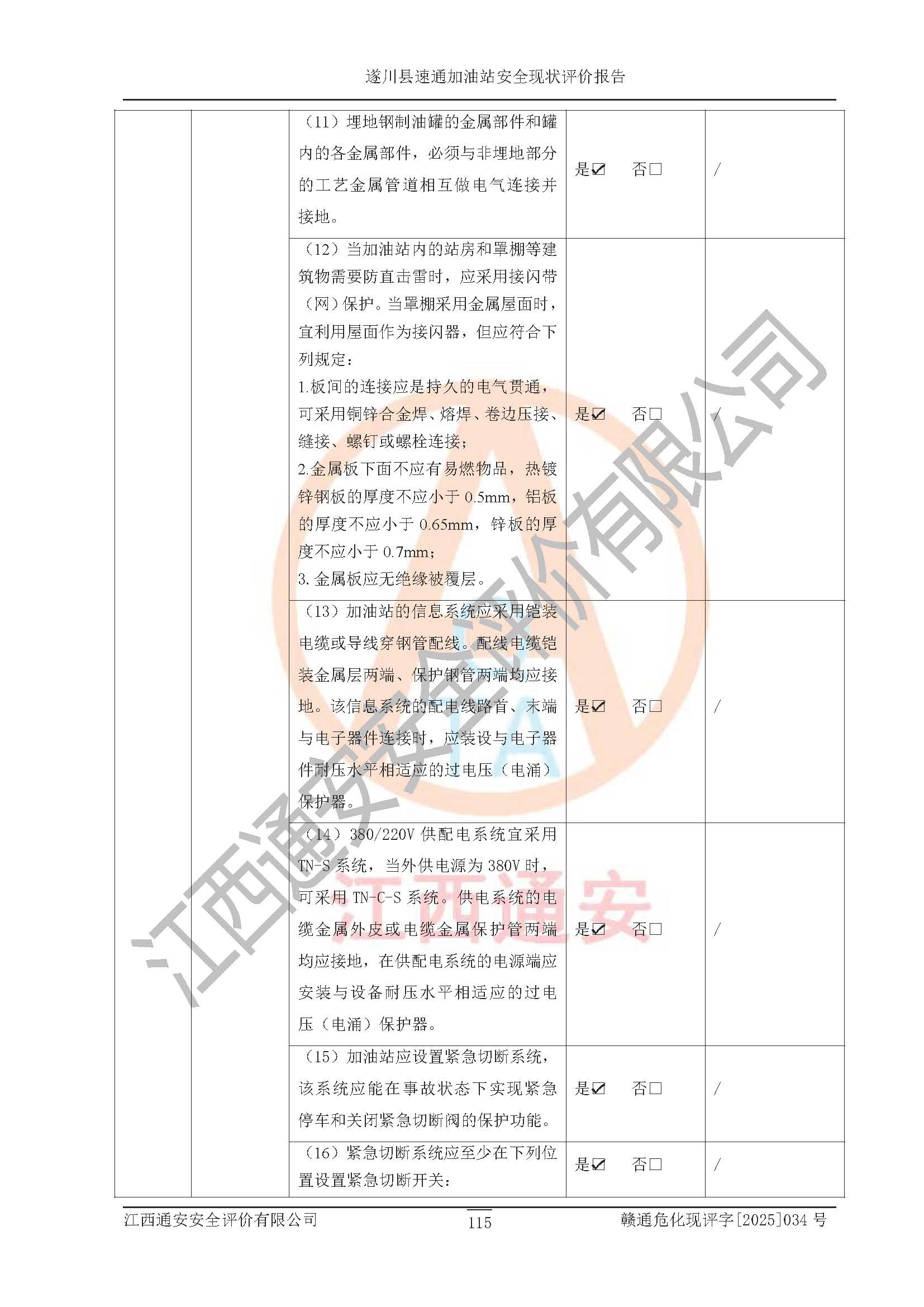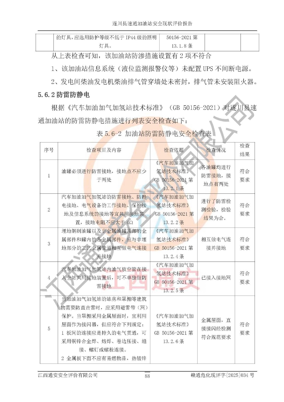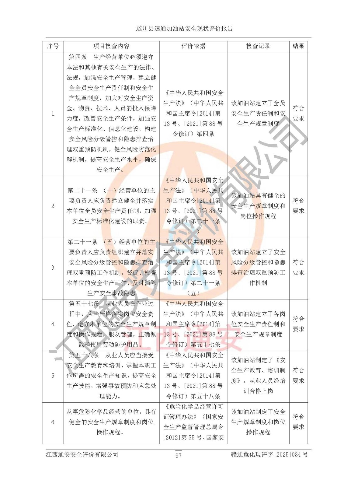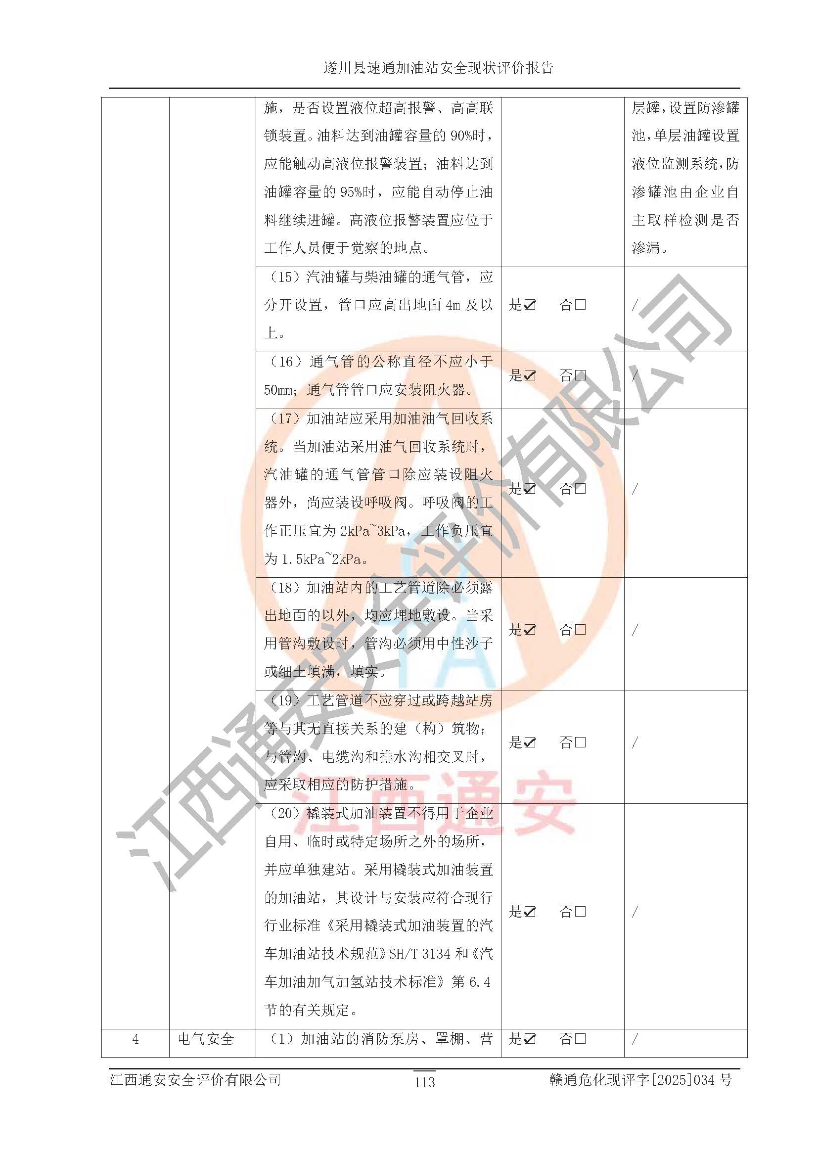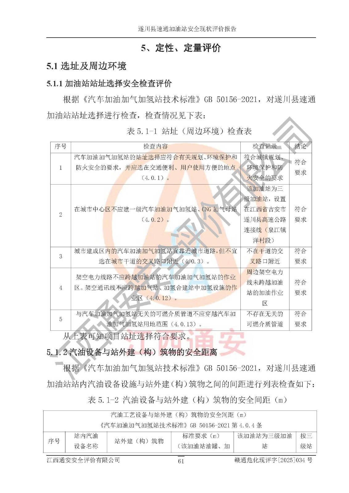 項目名稱 | 遂川縣速通加油站安全現(xiàn)狀評價報告 | ||||