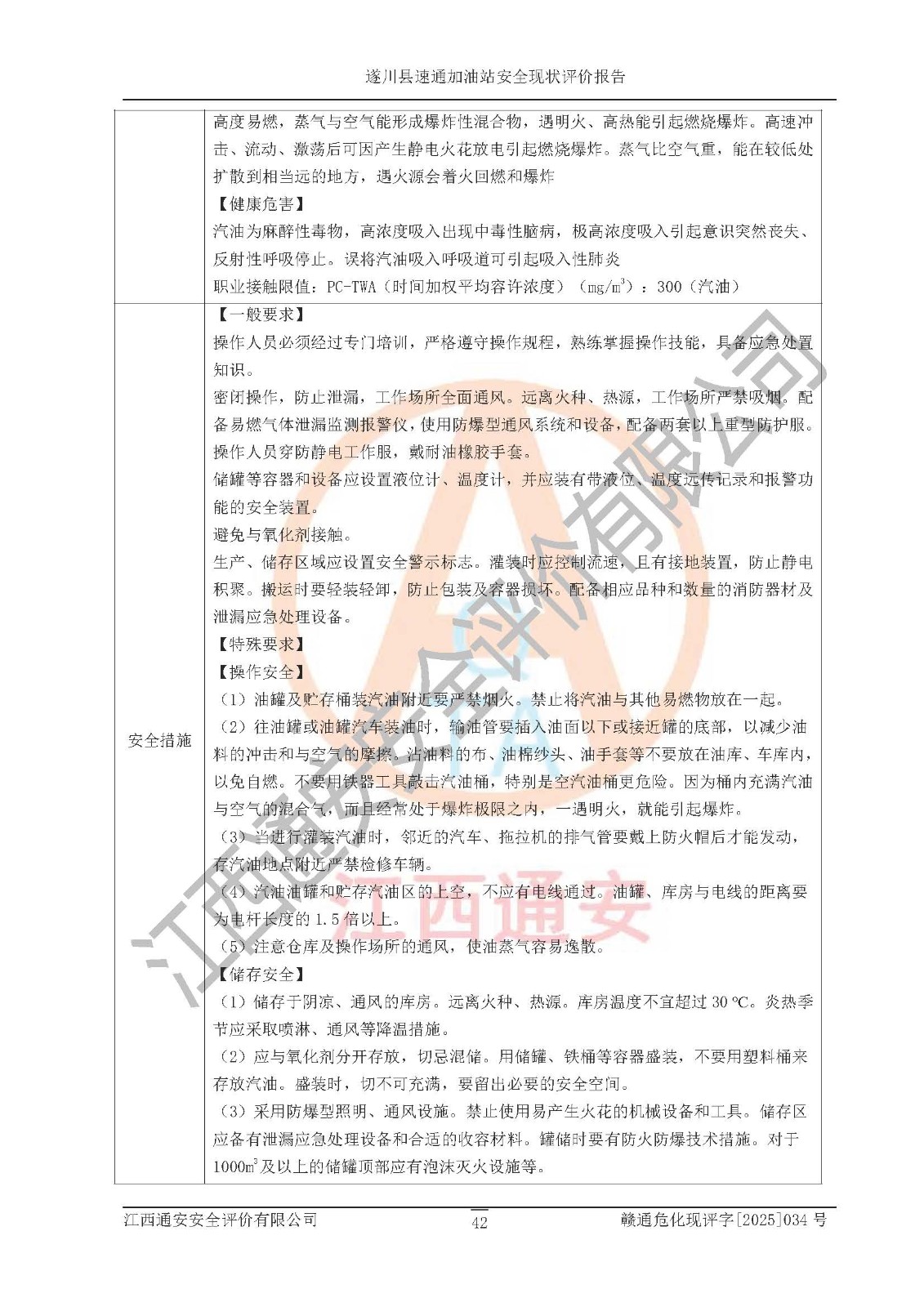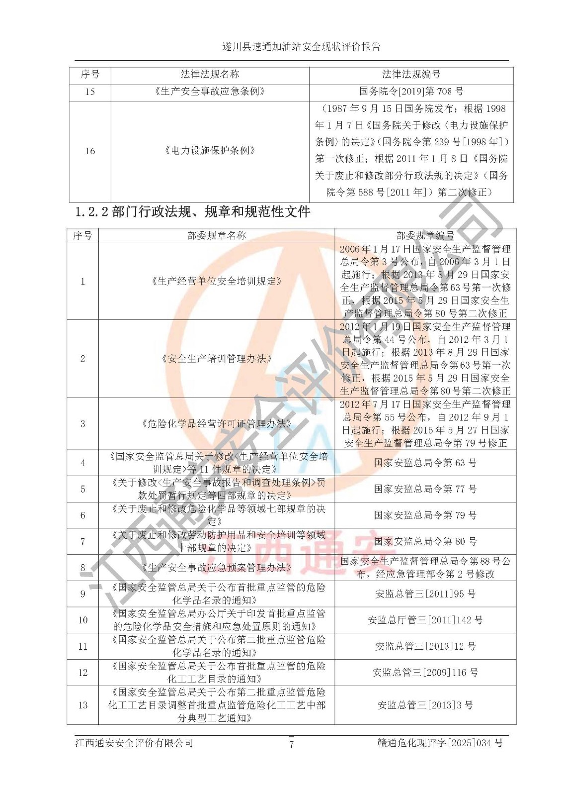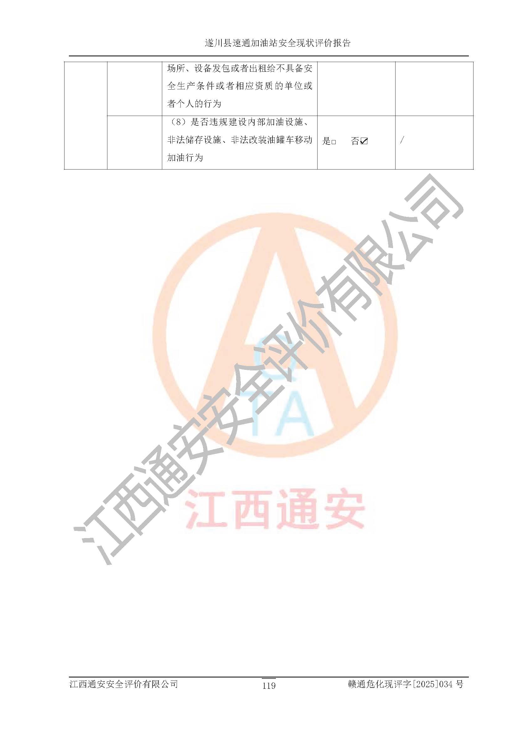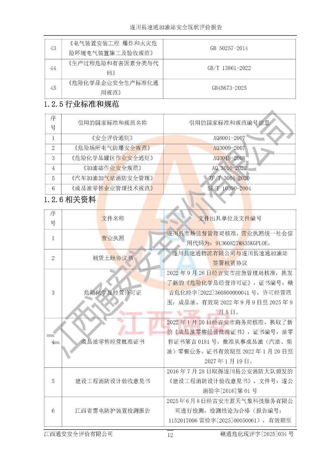 項目名稱 | 遂川縣速通加油站安全現(xiàn)狀評價報告 | ||||
