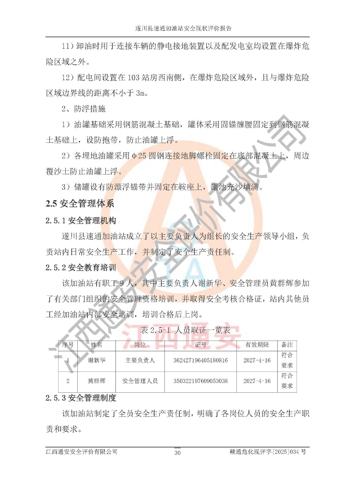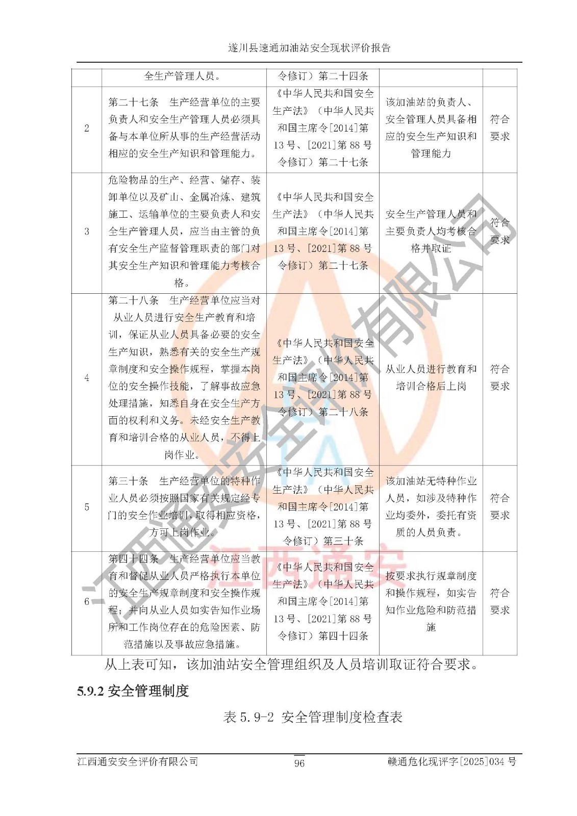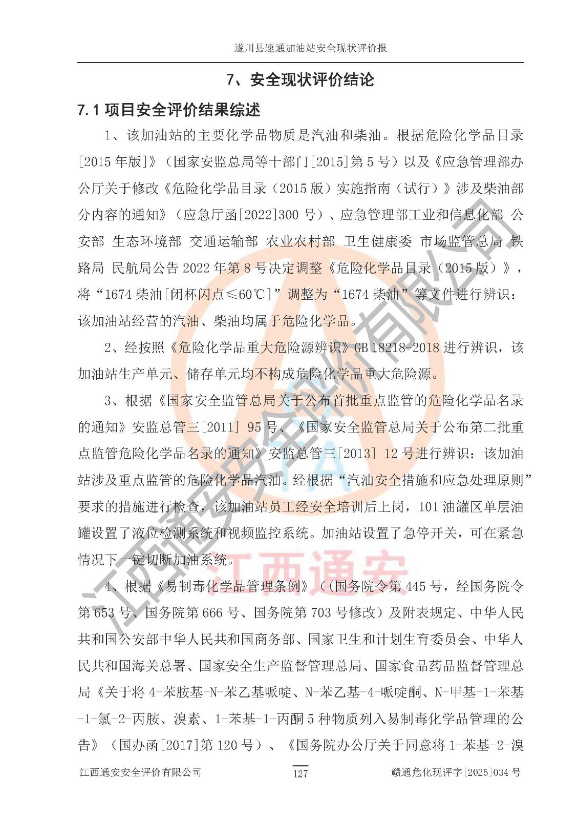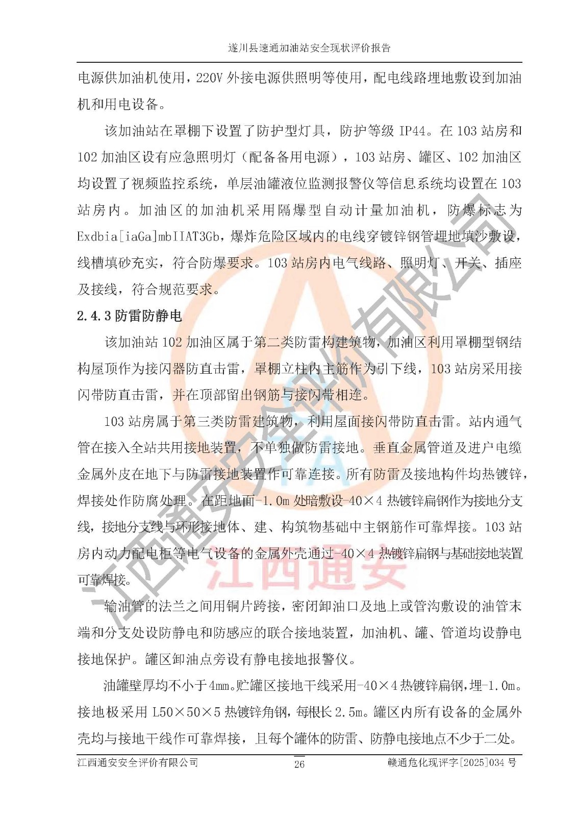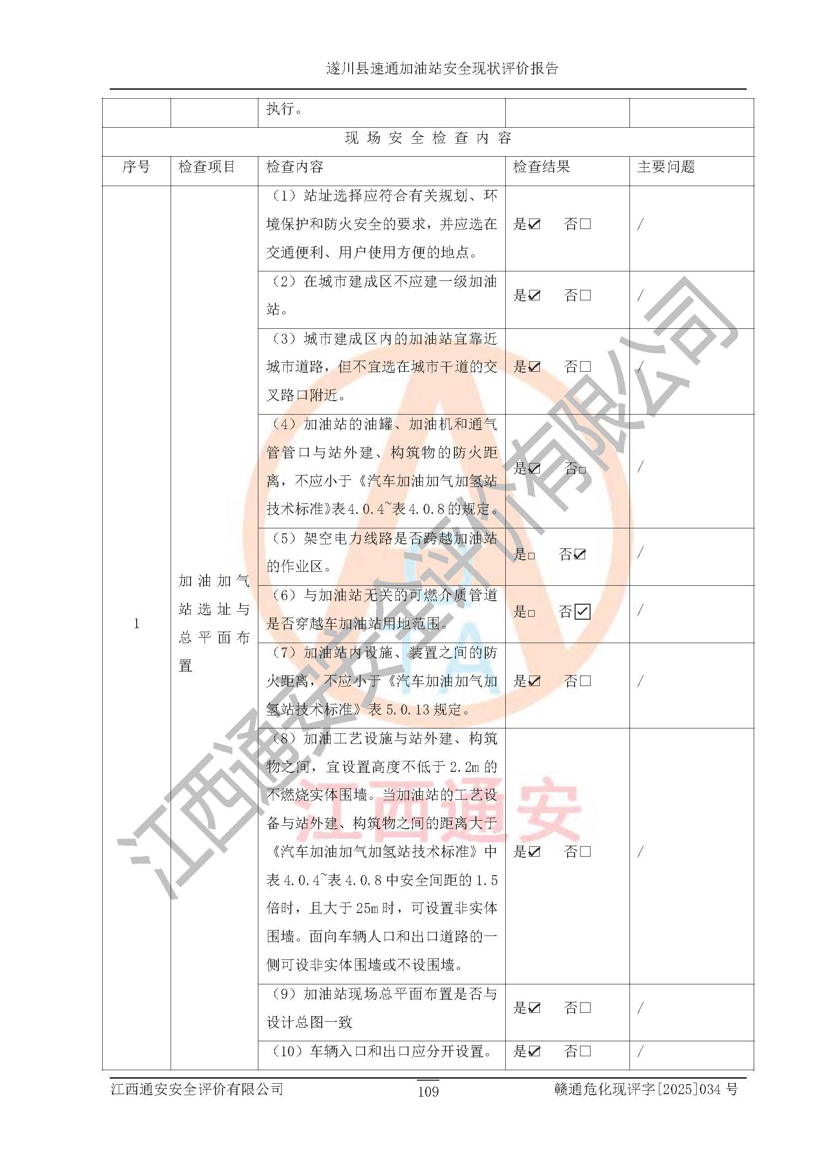 項目名稱 | 遂川縣速通加油站安全現(xiàn)狀評價報告 | ||||