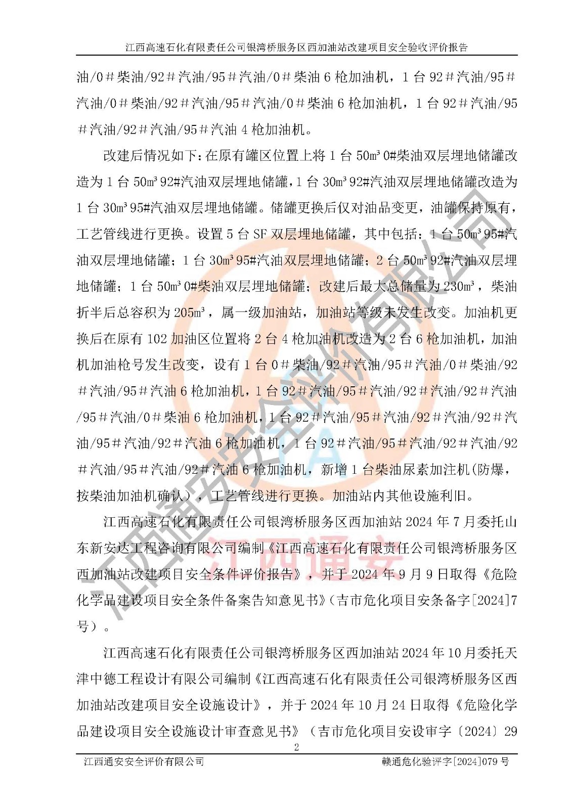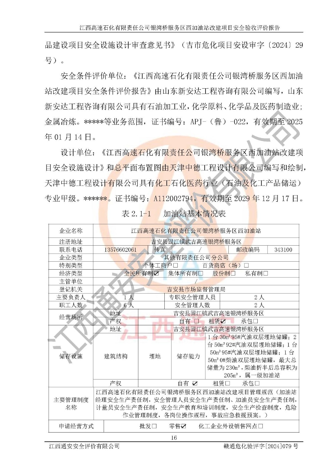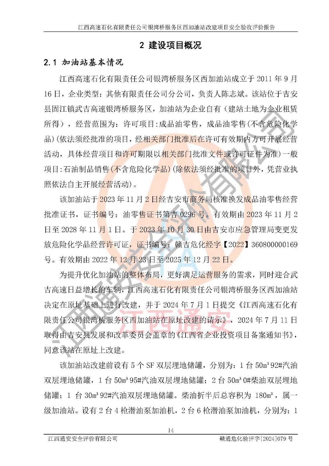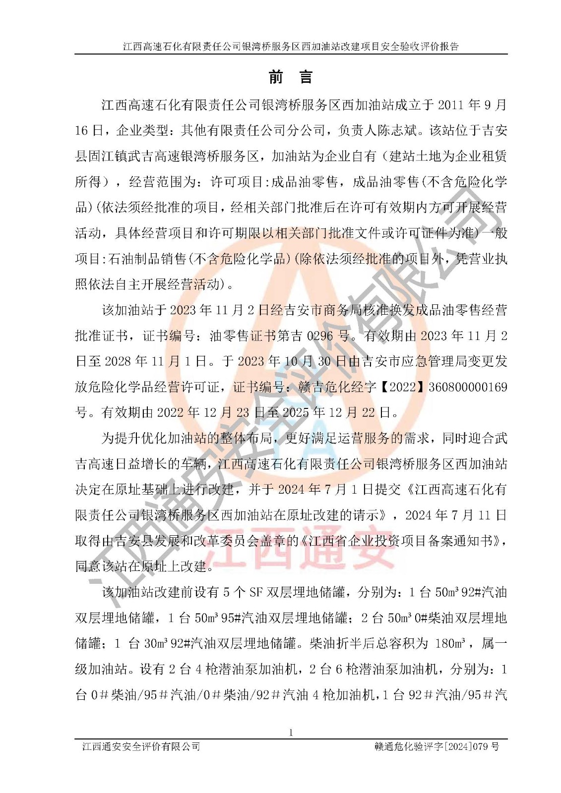 項目名稱 | 江西高速石化有限責(zé)任公司銀灣橋服務(wù)區(qū)西加油站改建項目安全驗收評價報告 | ||||