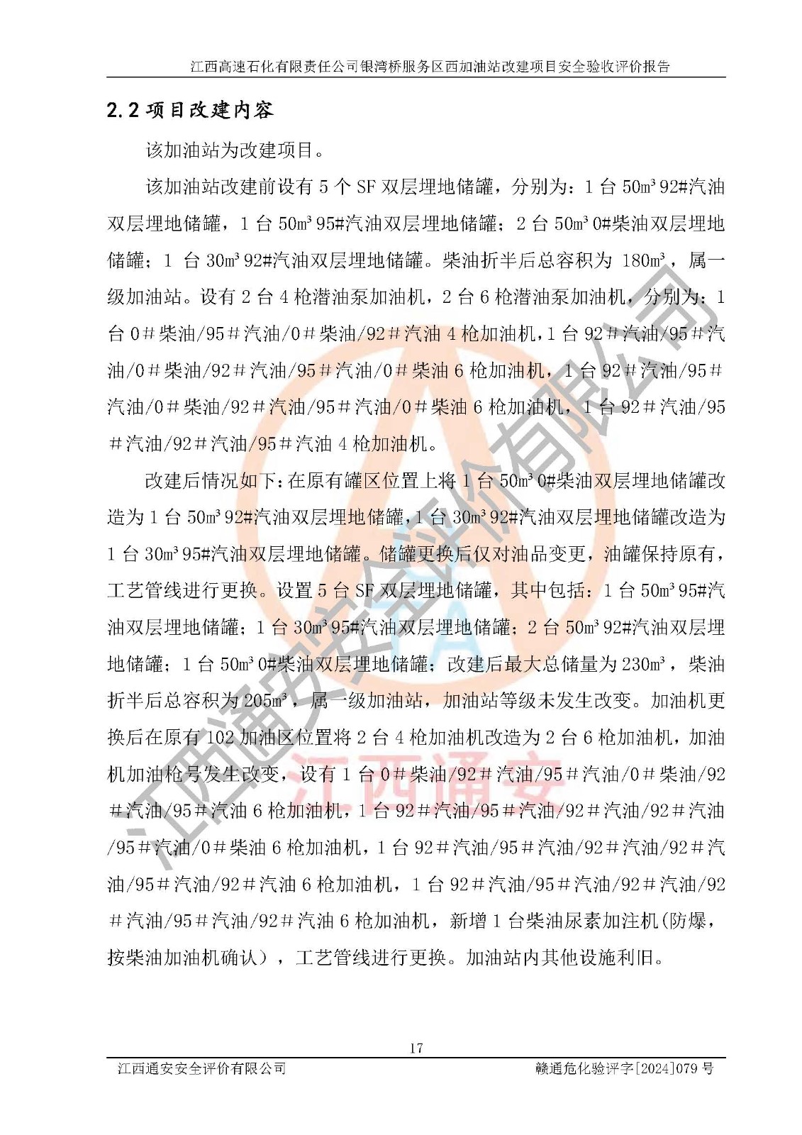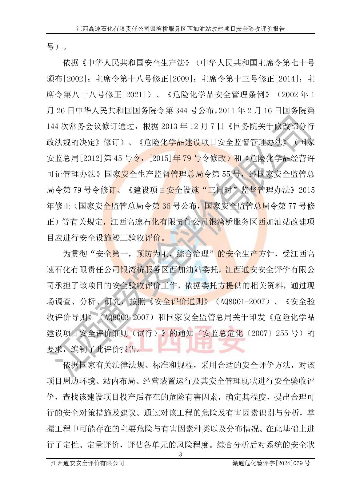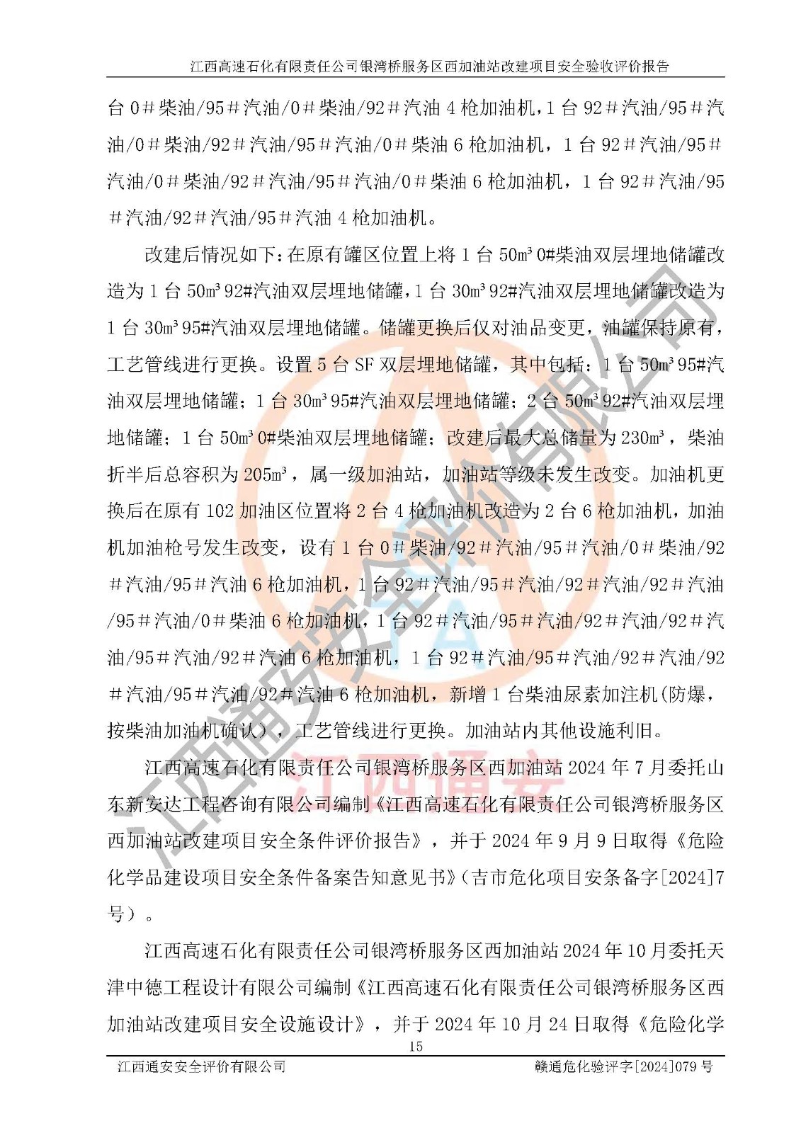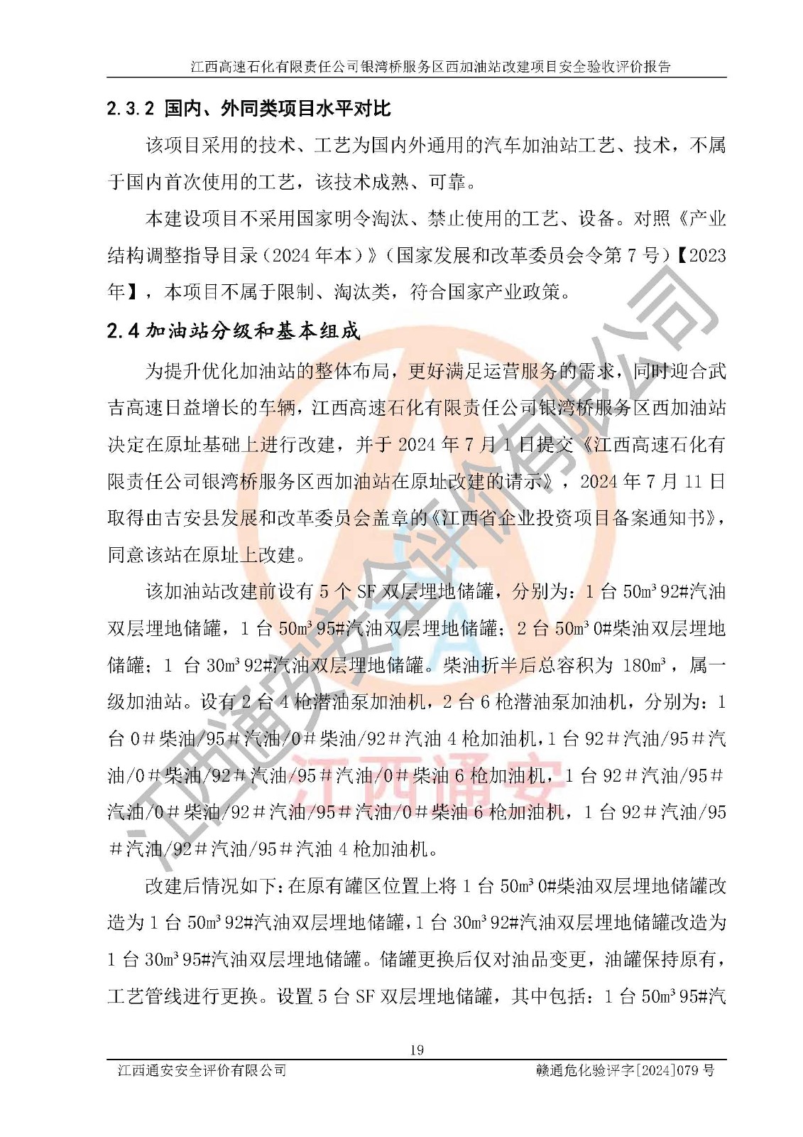 項目名稱 | 江西高速石化有限責(zé)任公司銀灣橋服務(wù)區(qū)西加油站改建項目安全驗收評價報告 | ||||