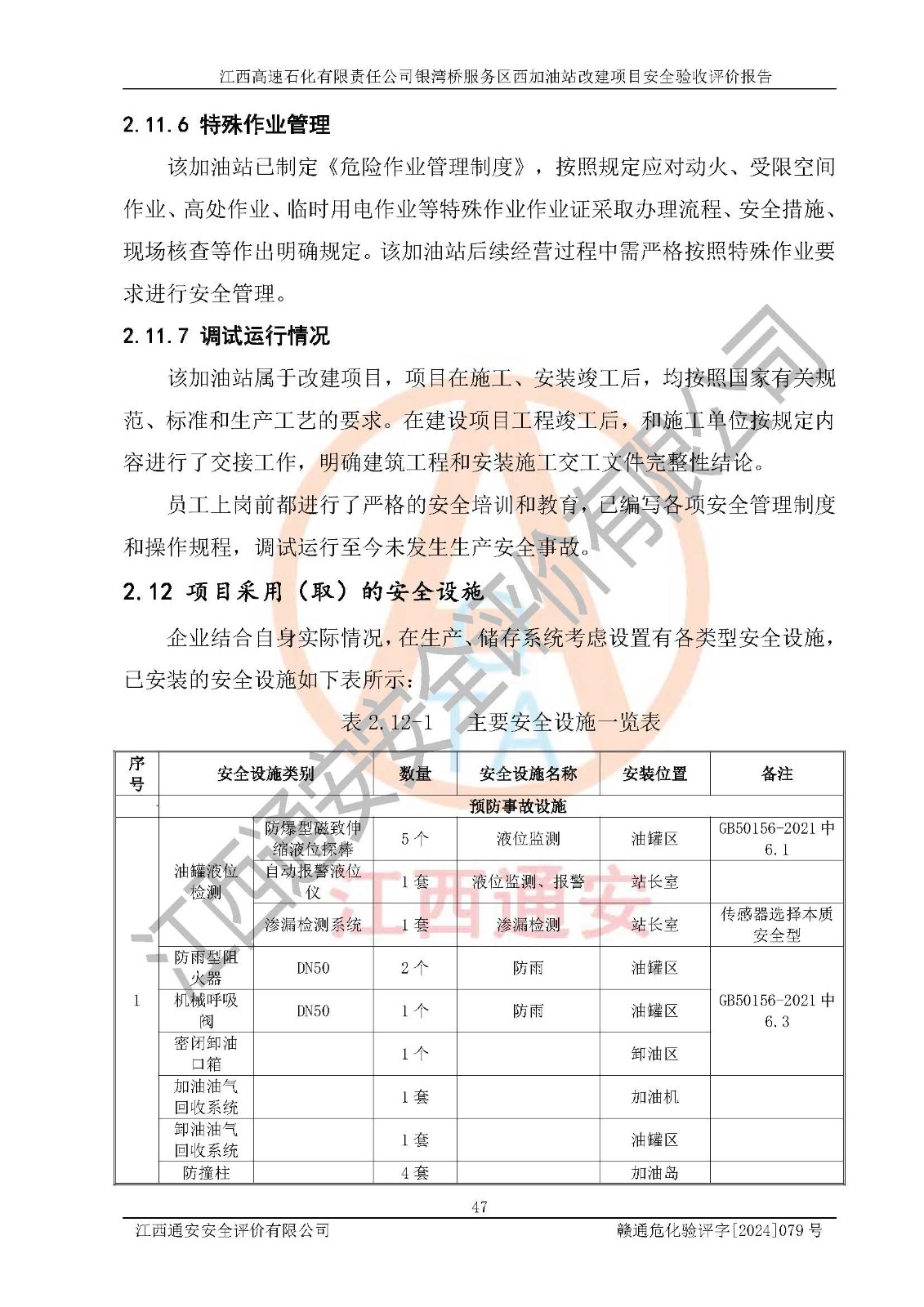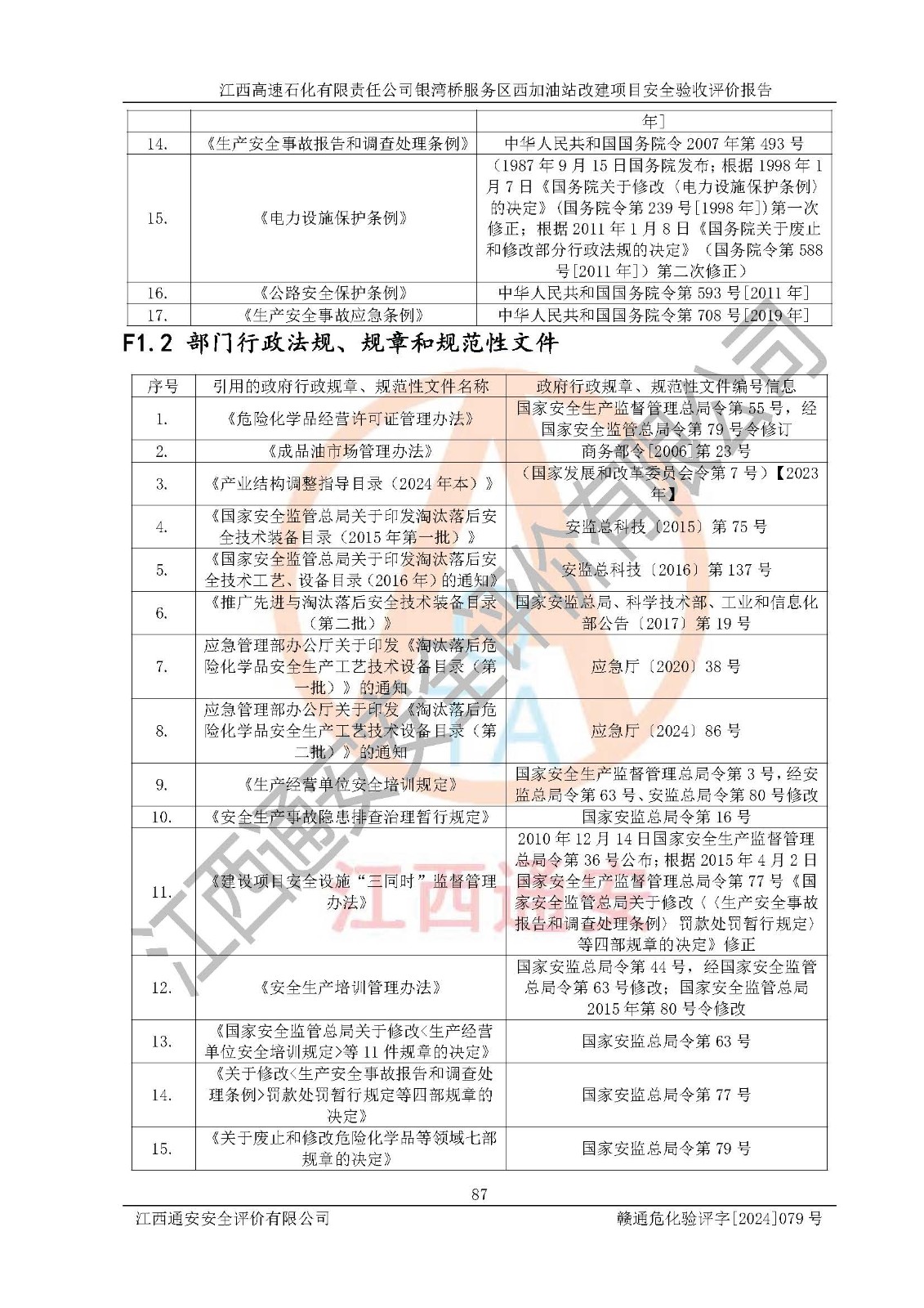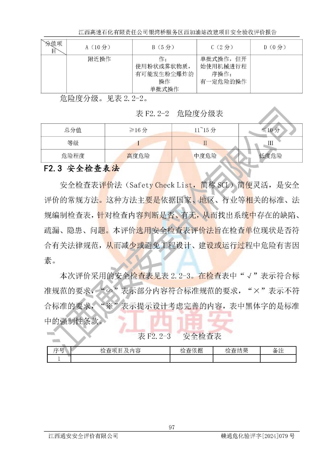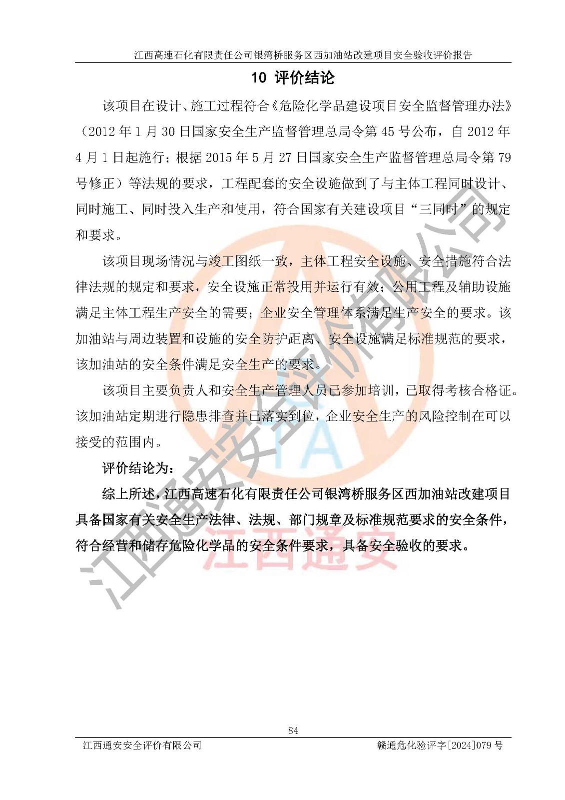 項目名稱 | 江西高速石化有限責(zé)任公司銀灣橋服務(wù)區(qū)西加油站改建項目安全驗收評價報告 | ||||