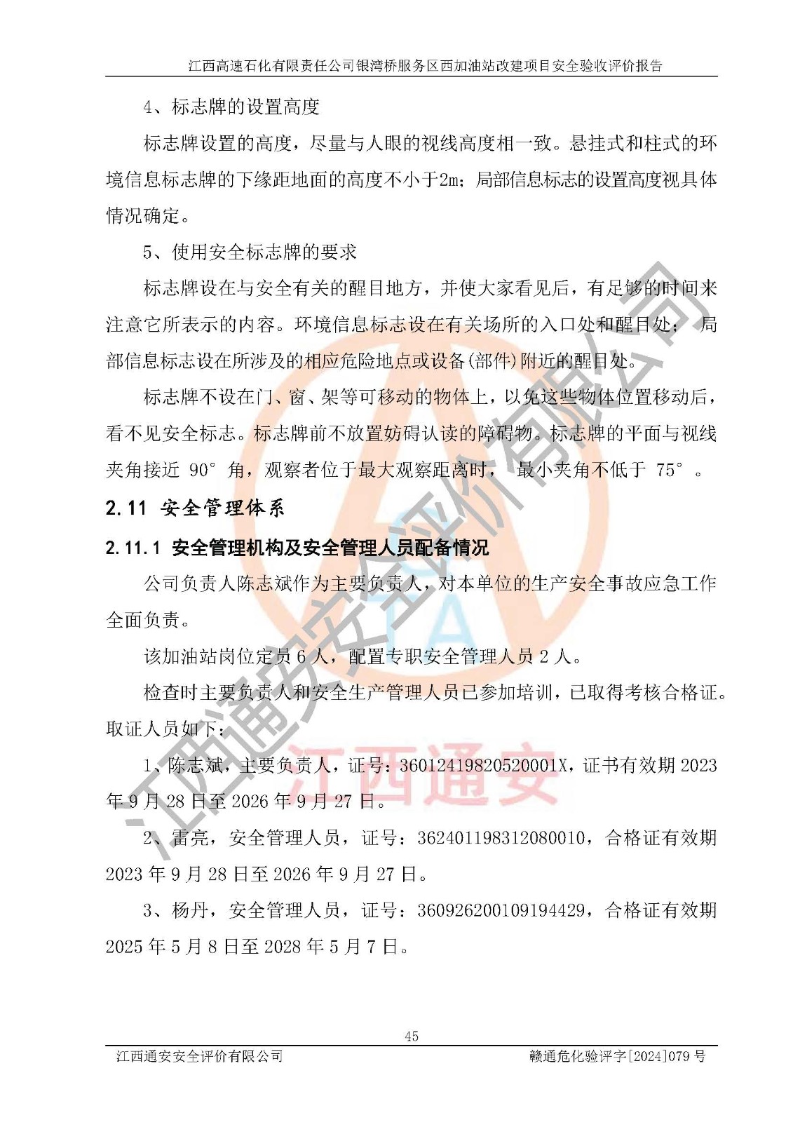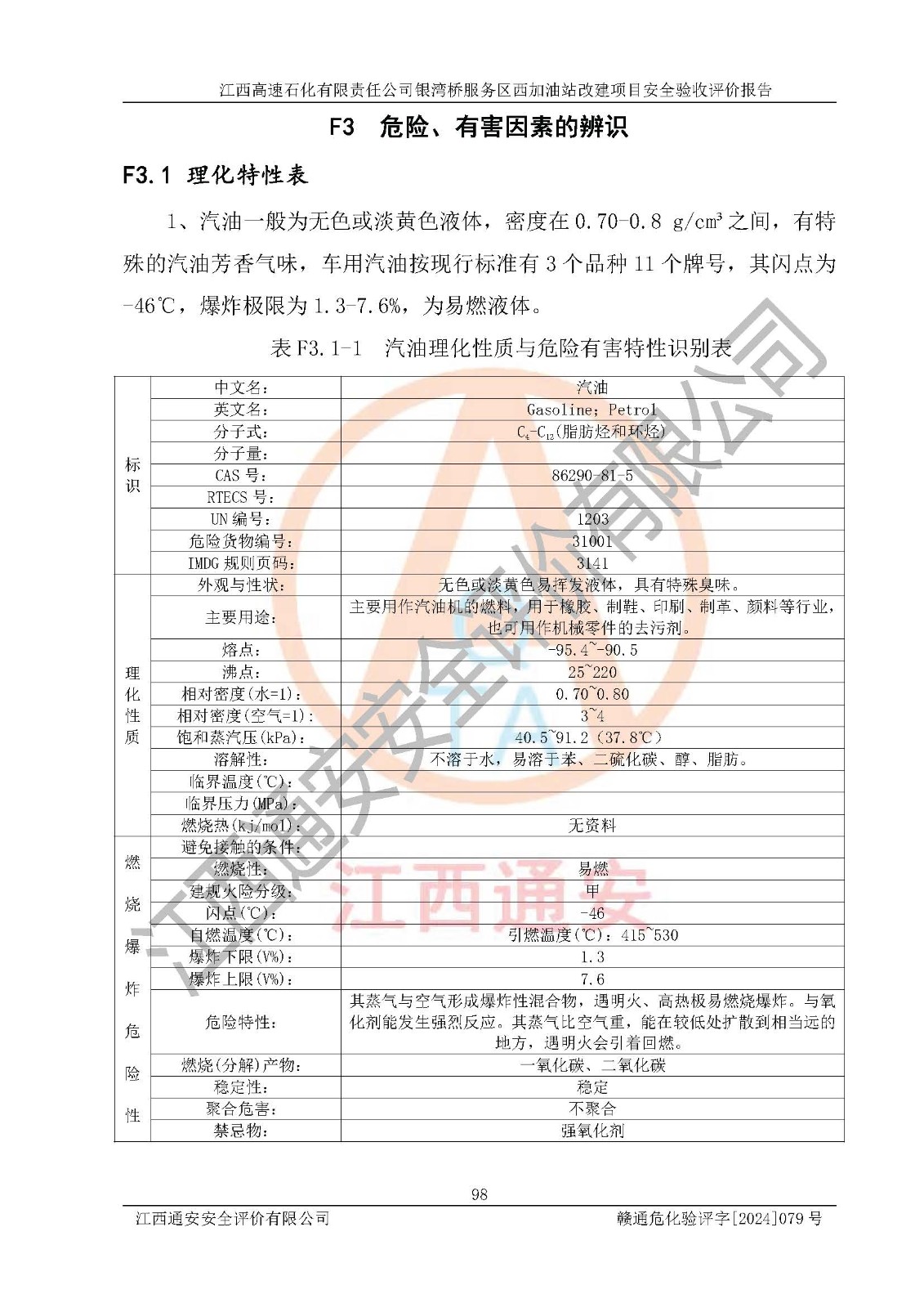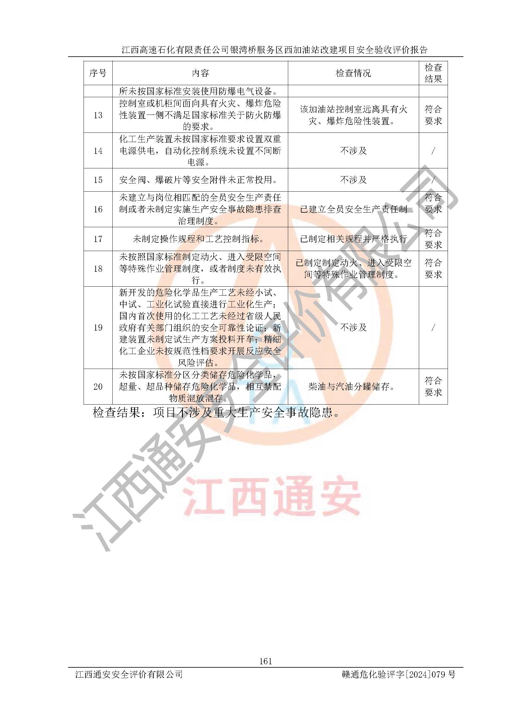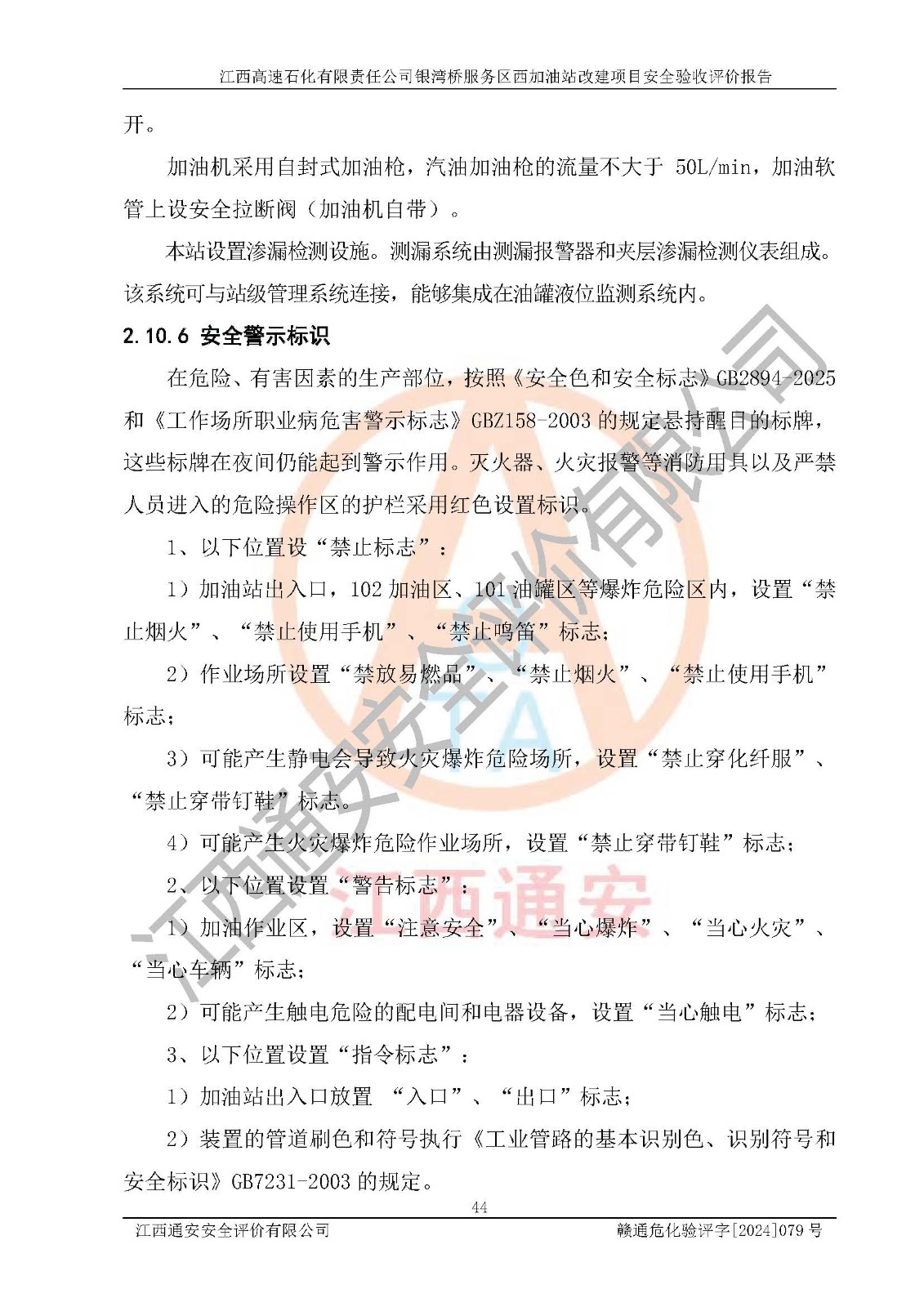 項目名稱 | 江西高速石化有限責(zé)任公司銀灣橋服務(wù)區(qū)西加油站改建項目安全驗收評價報告 | ||||