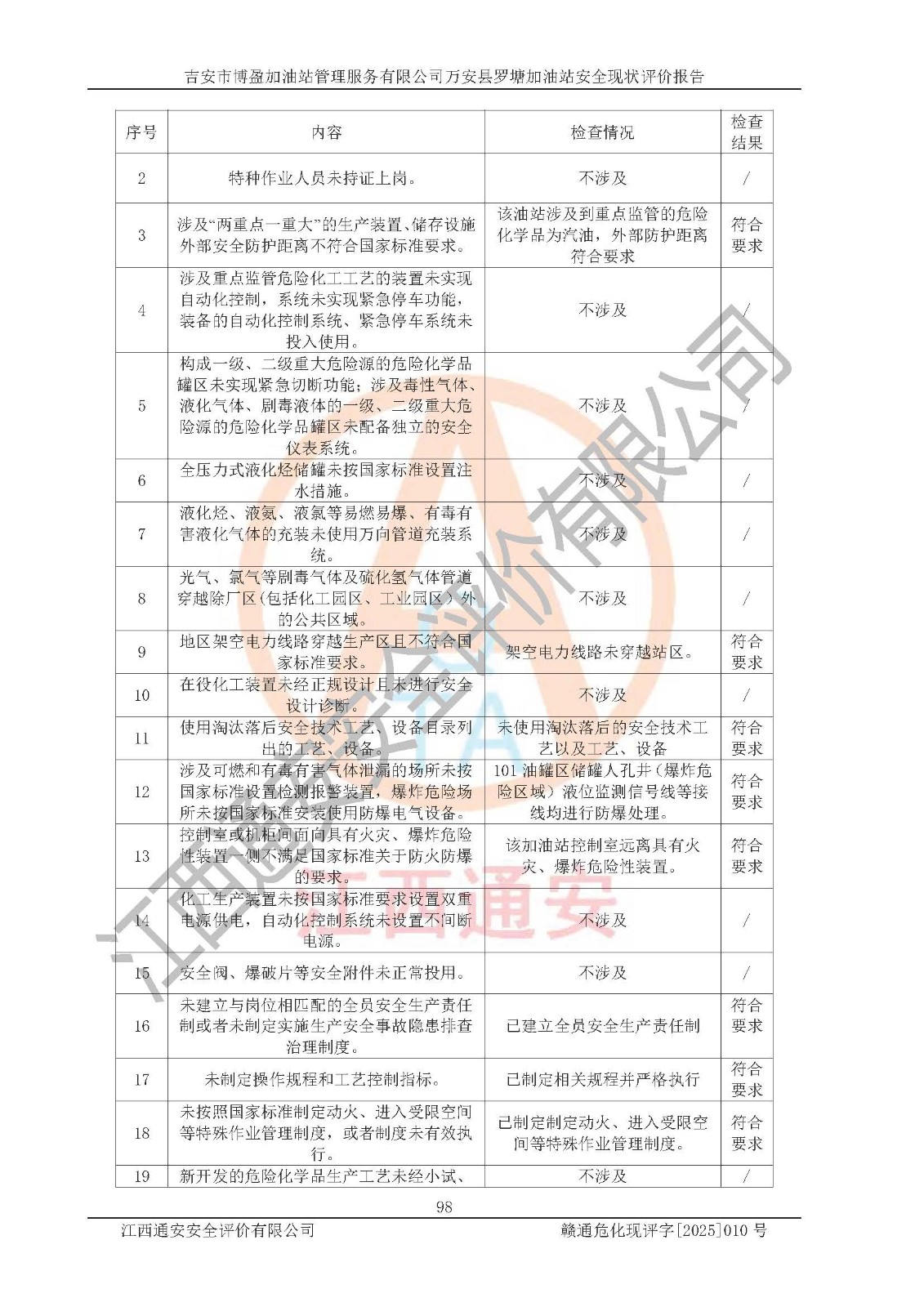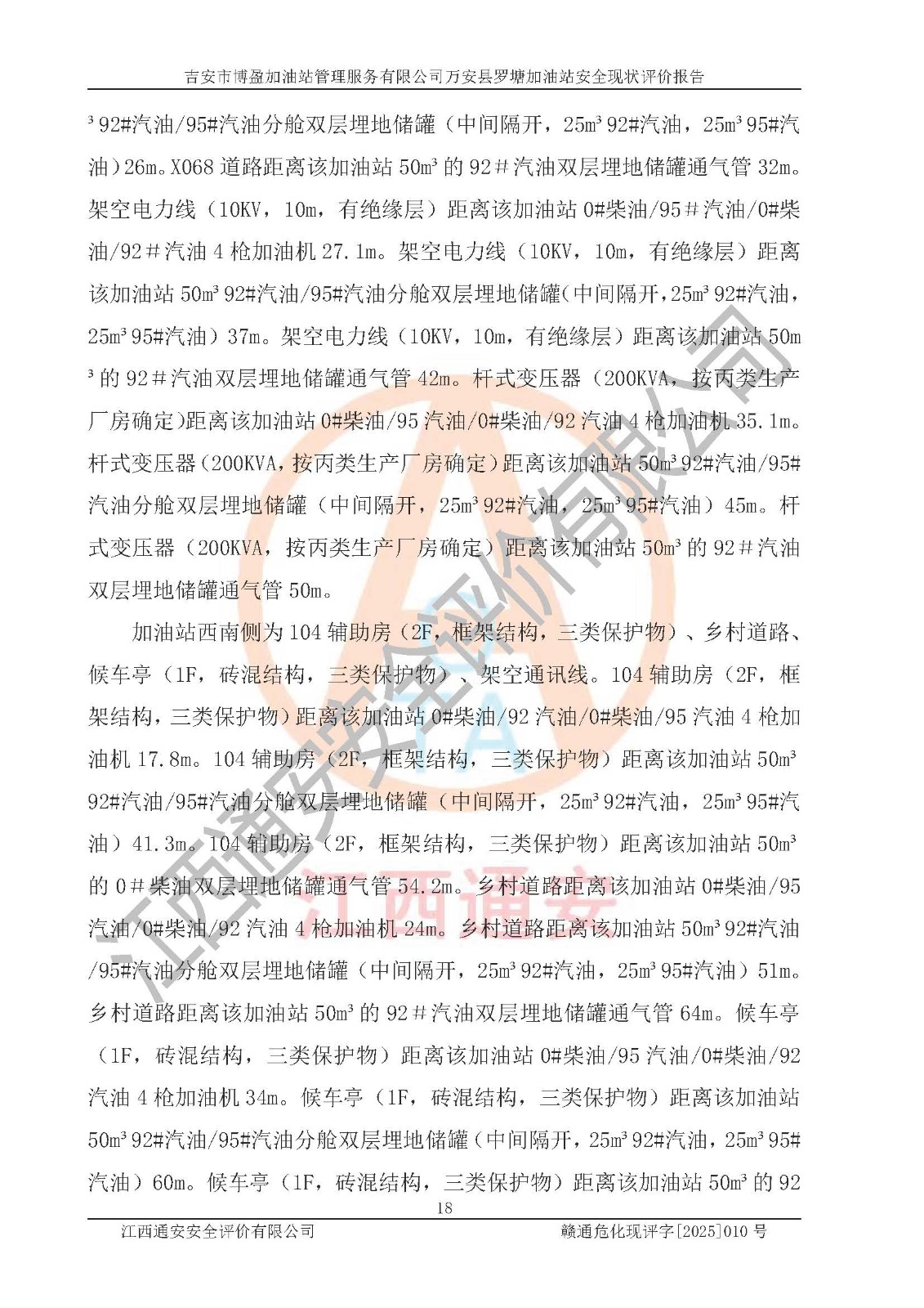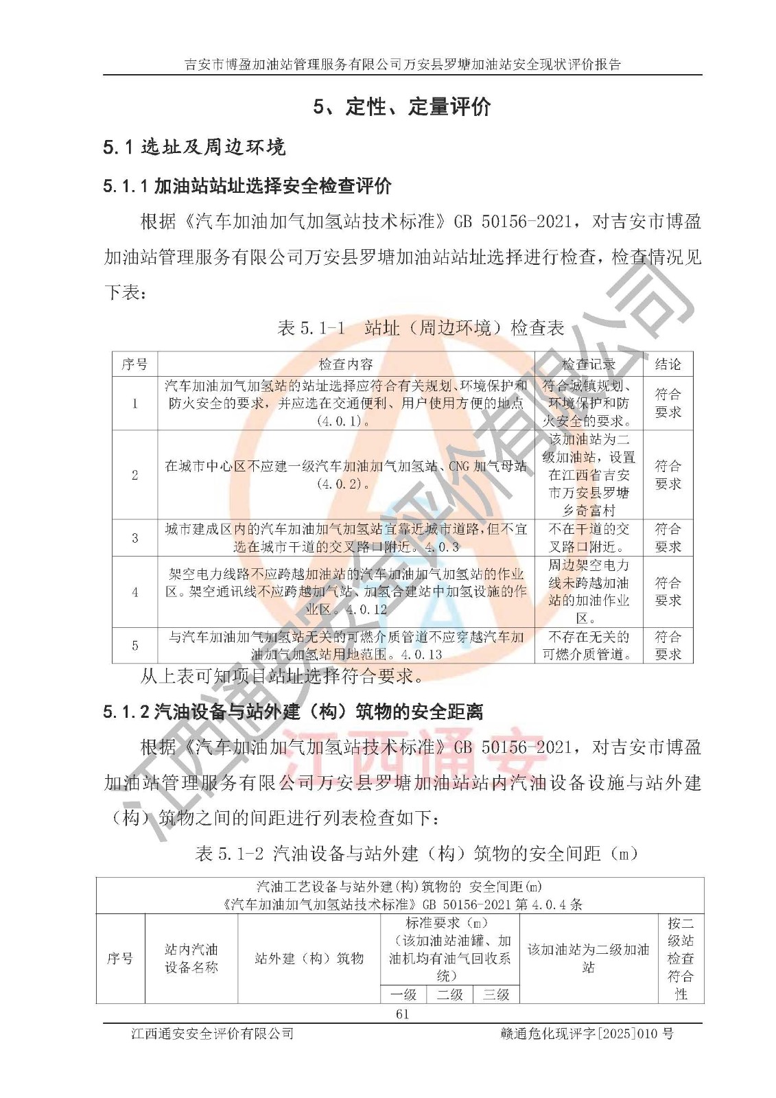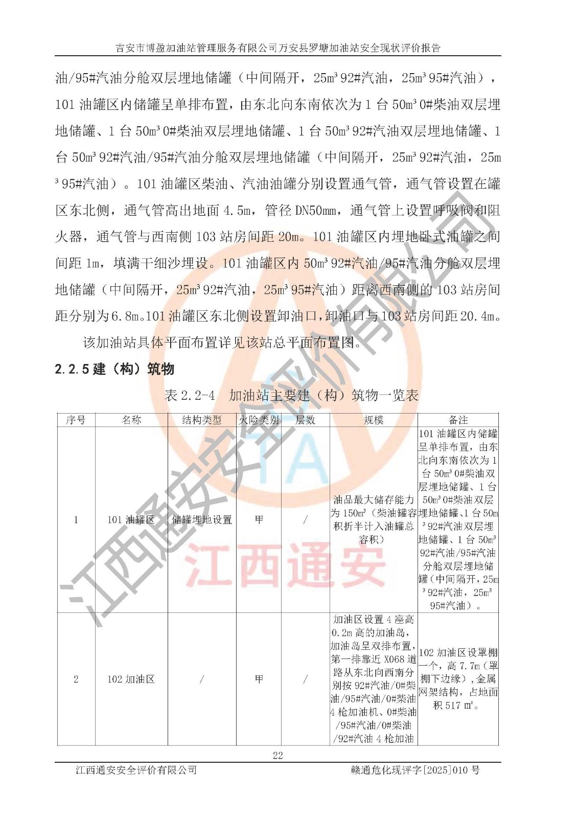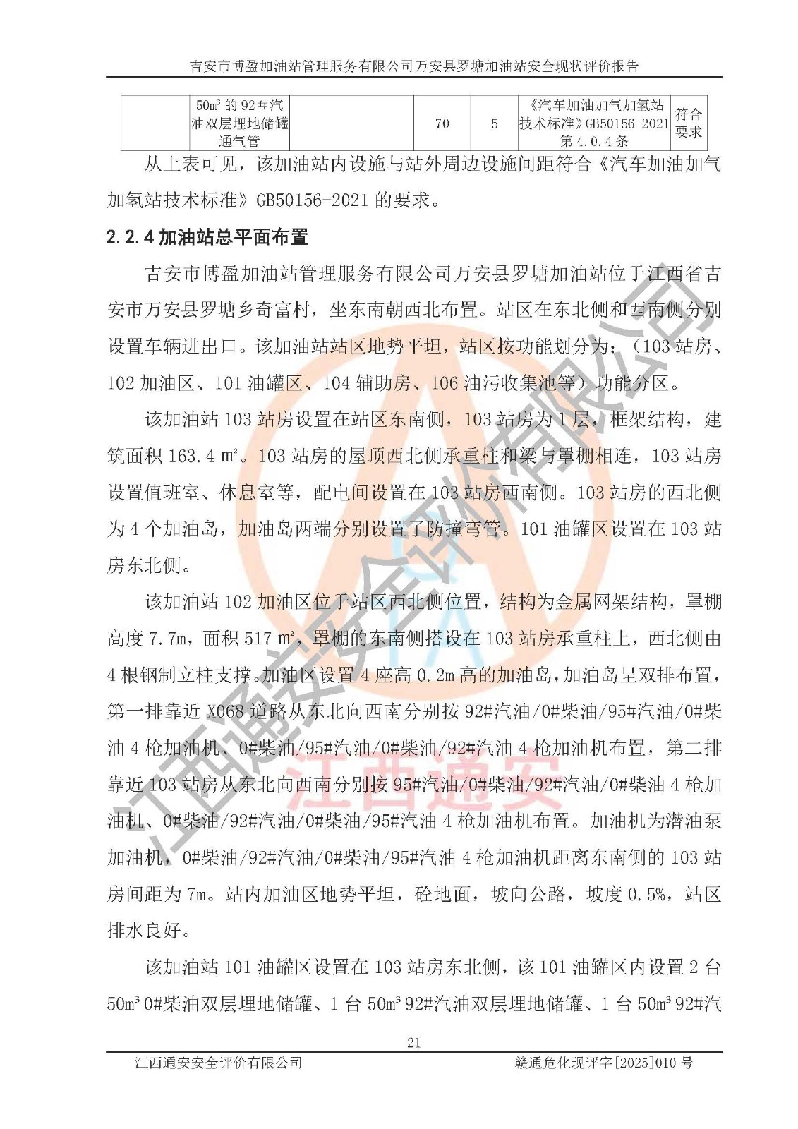項目名稱 | 吉安市博盈加油站管理服務(wù)有限公司萬安縣羅塘加油站安全現(xiàn)狀評價報告 | ||||