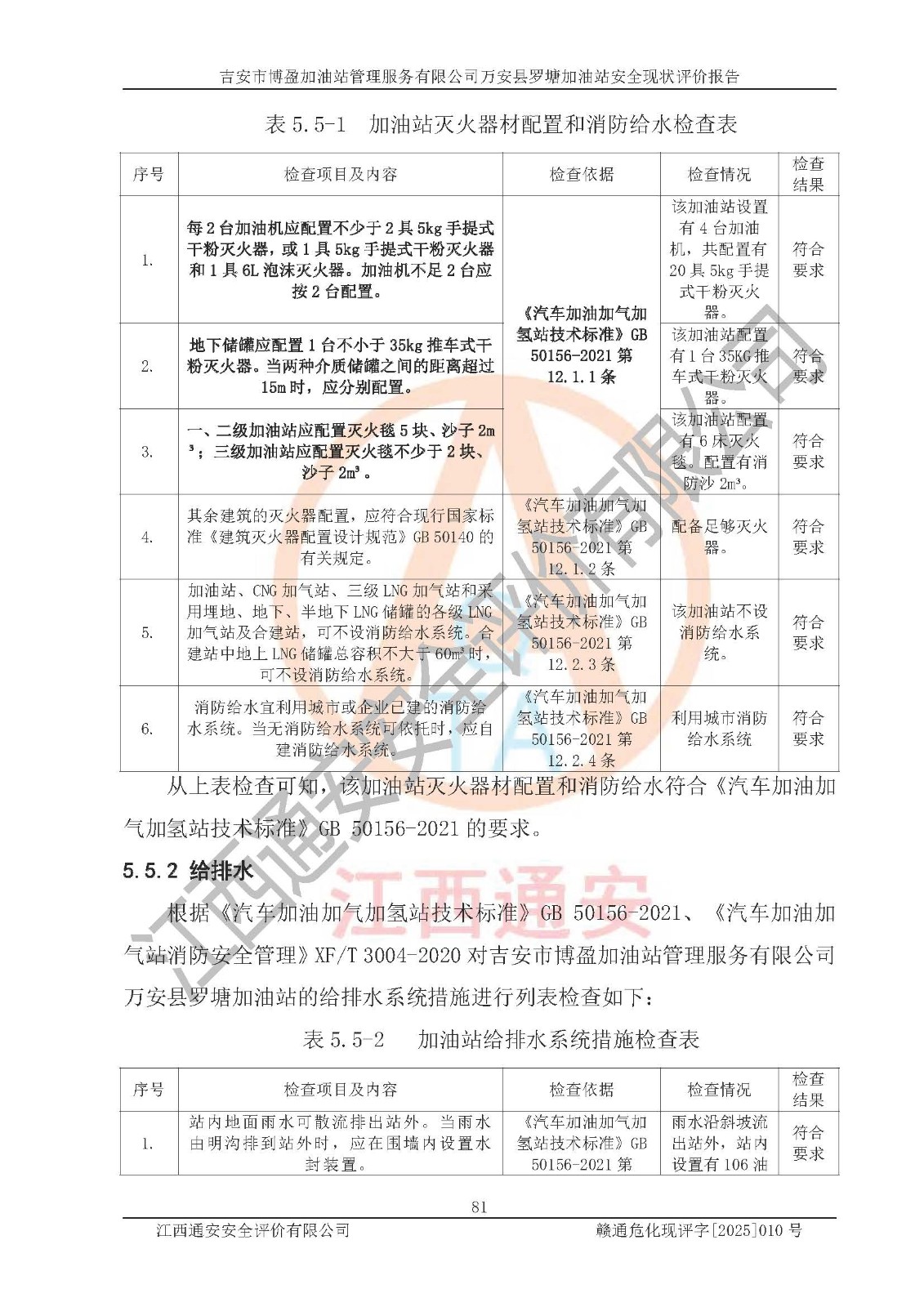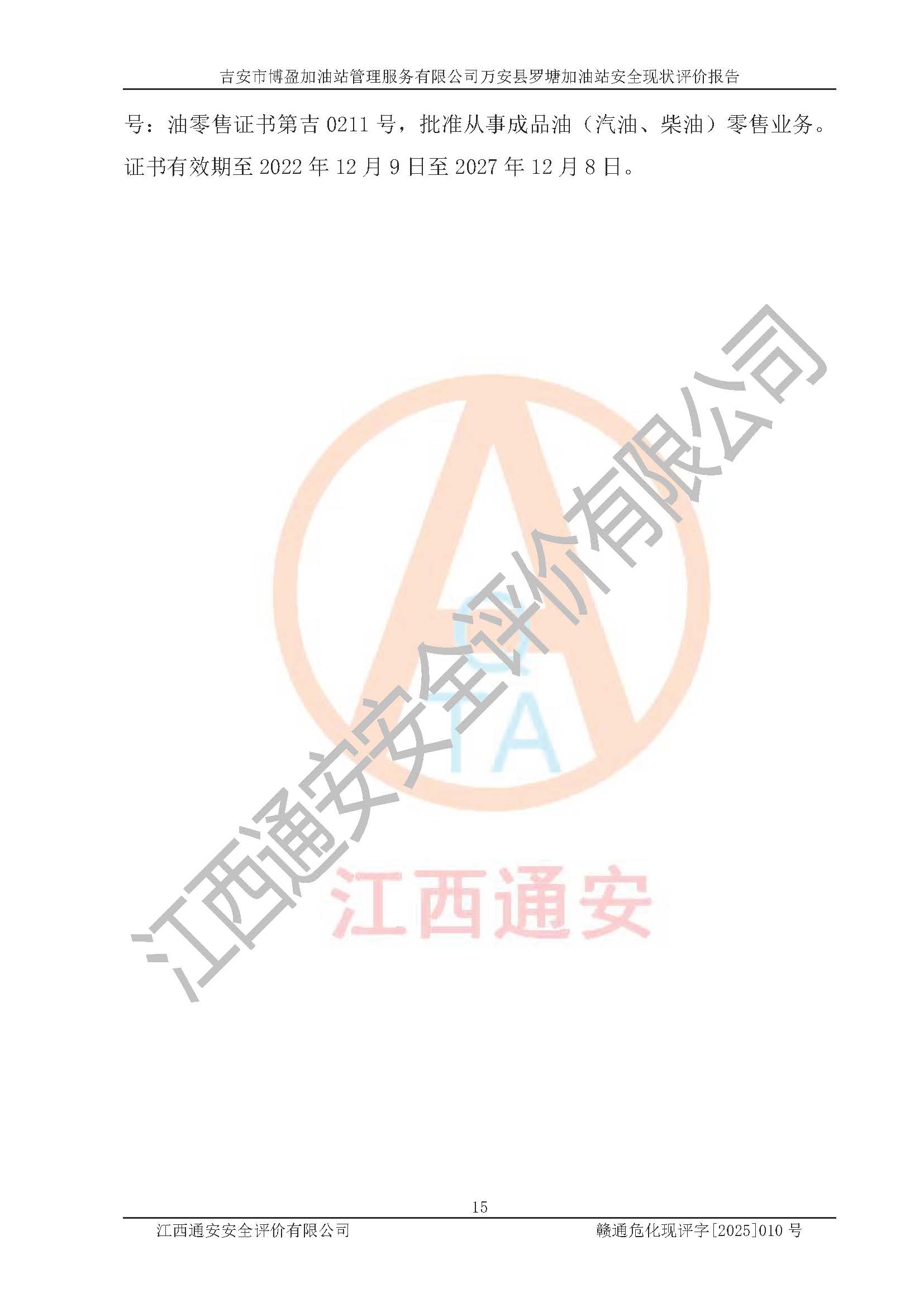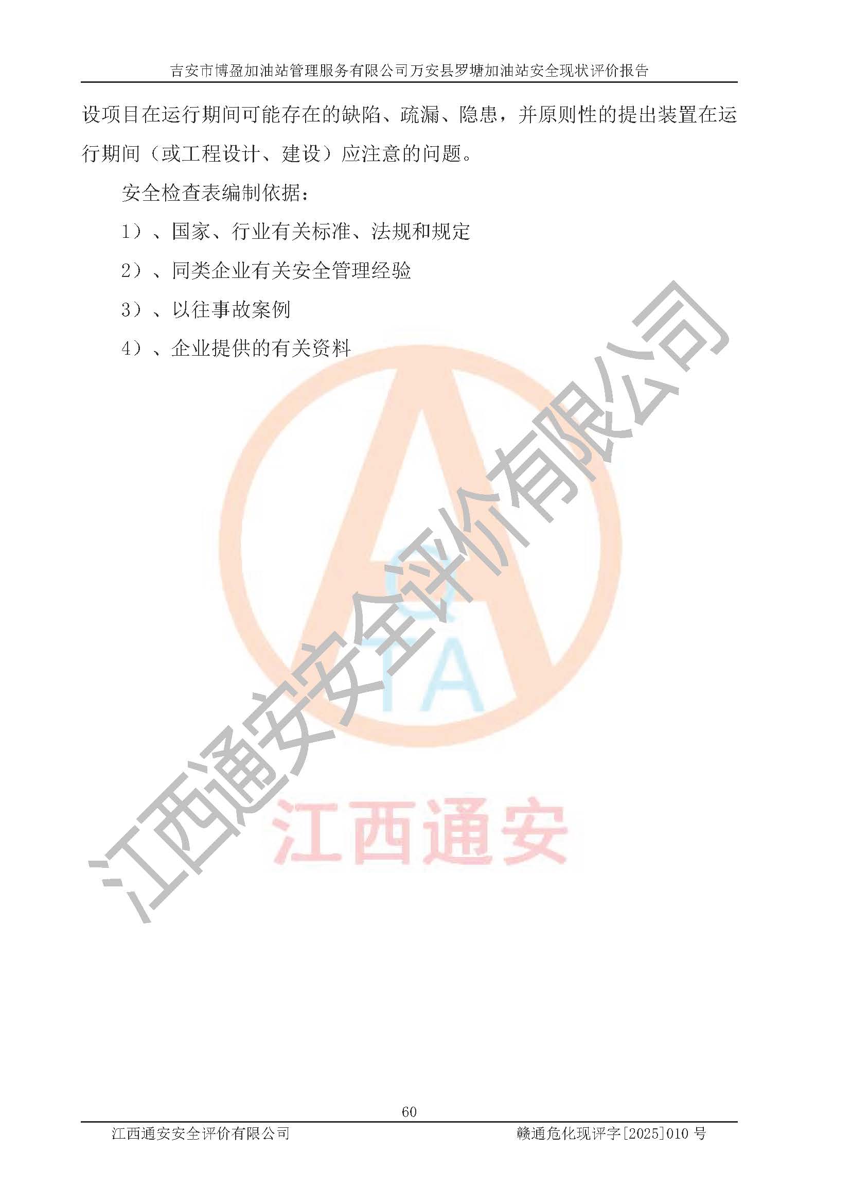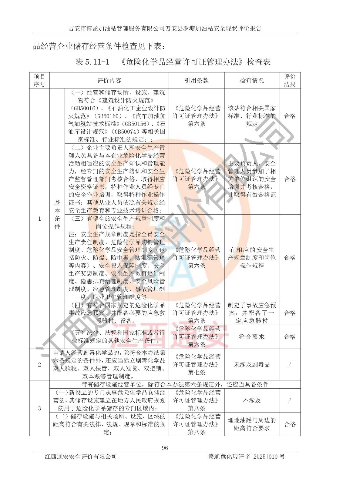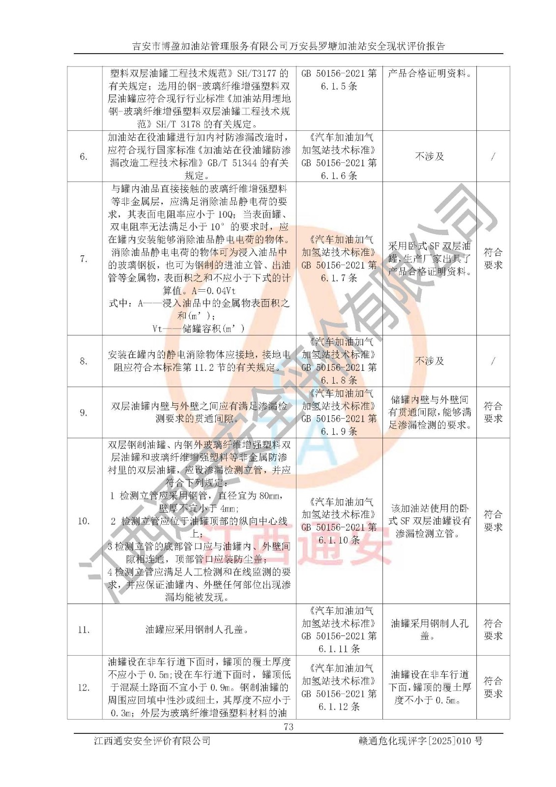 項目名稱 | 吉安市博盈加油站管理服務(wù)有限公司萬安縣羅塘加油站安全現(xiàn)狀評價報告 | ||||