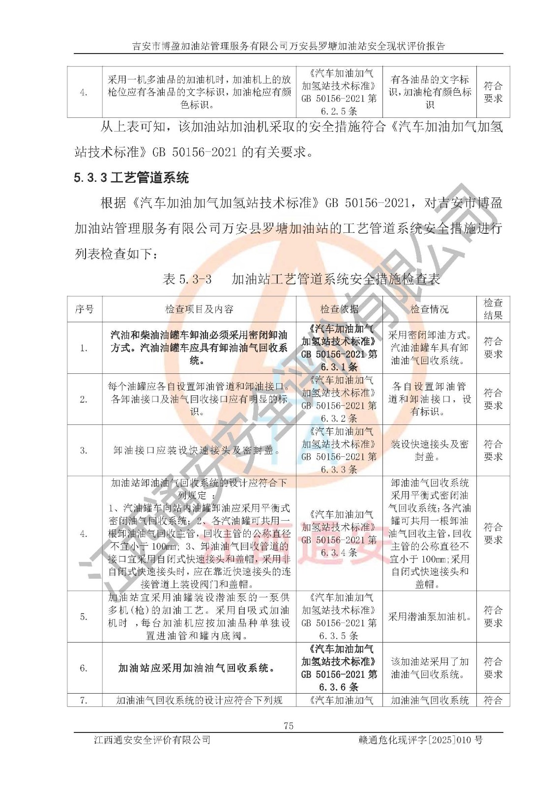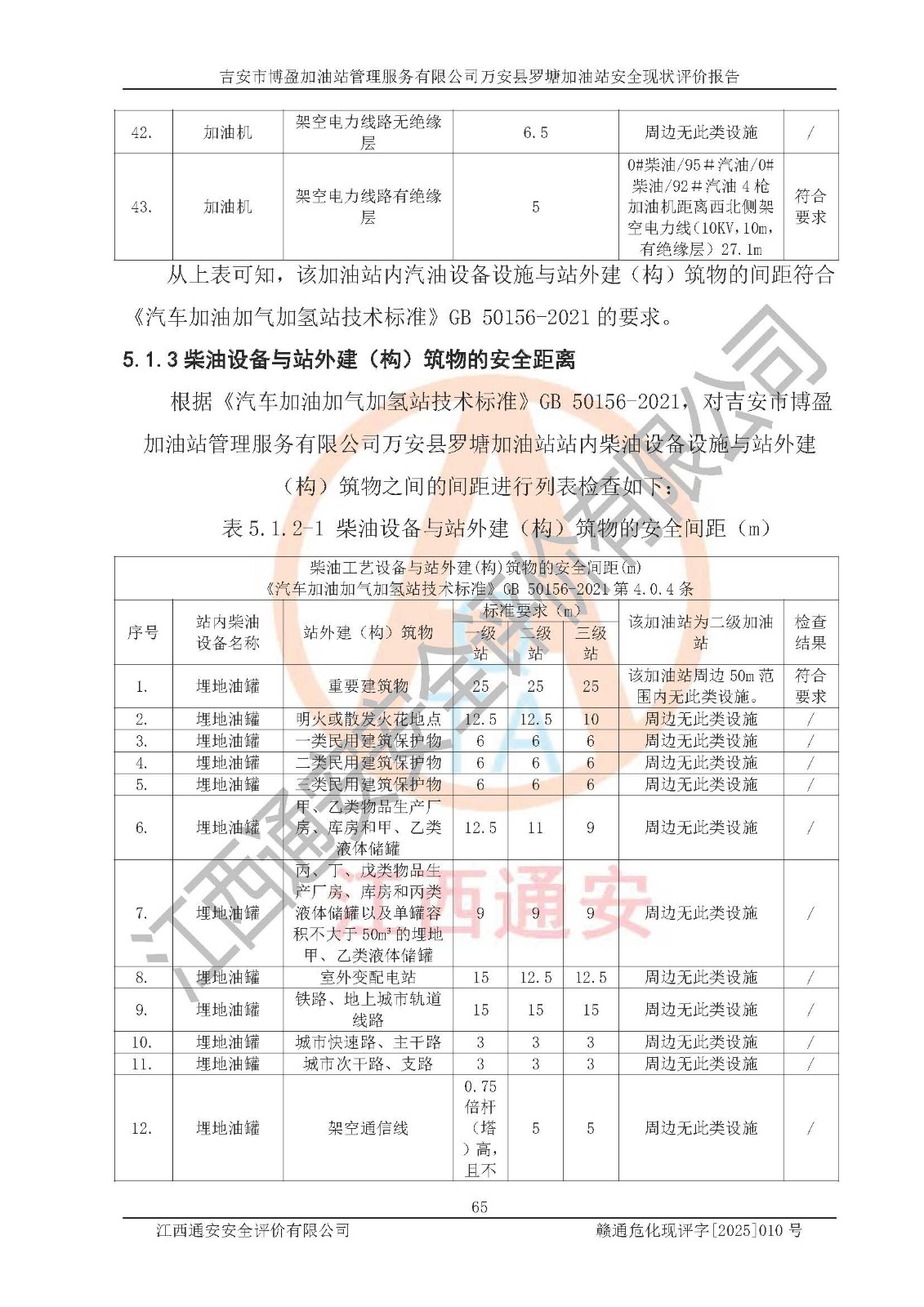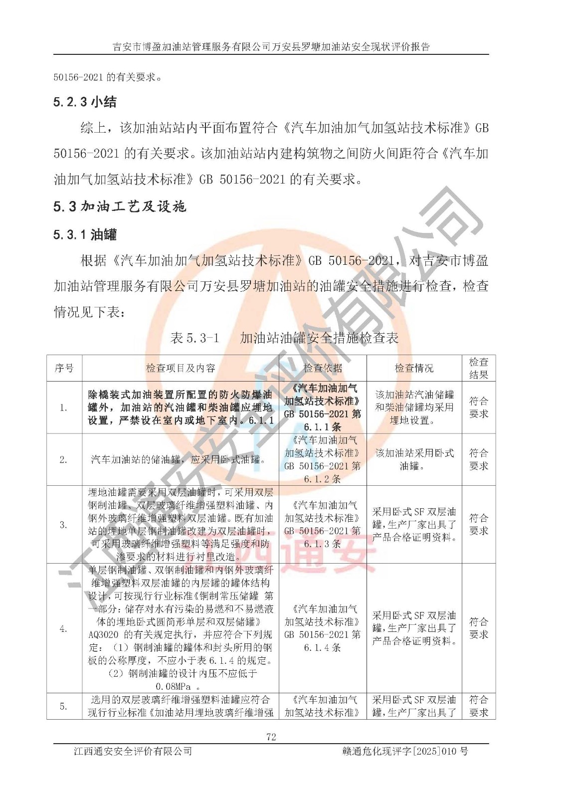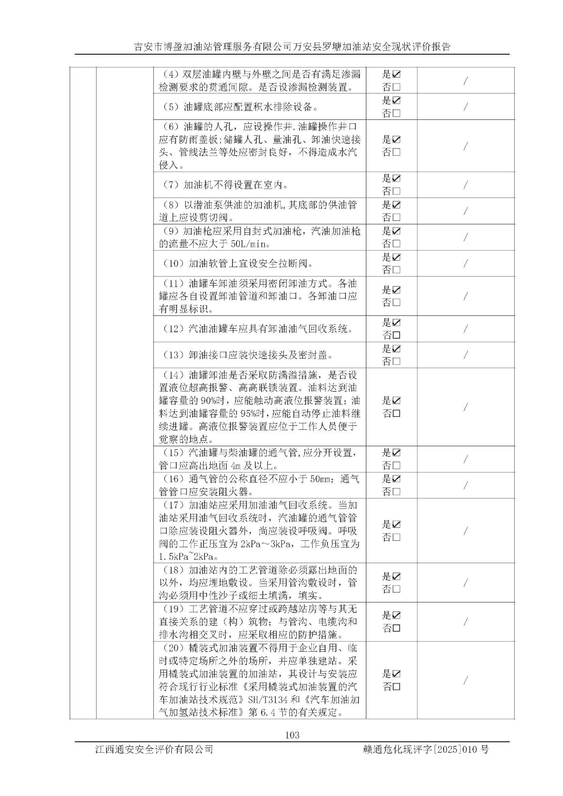項目名稱 | 吉安市博盈加油站管理服務(wù)有限公司萬安縣羅塘加油站安全現(xiàn)狀評價報告 | ||||