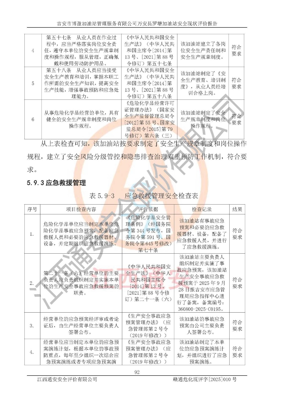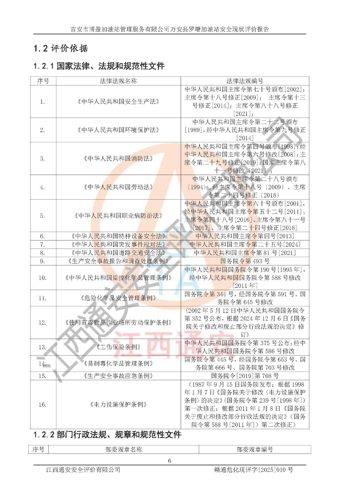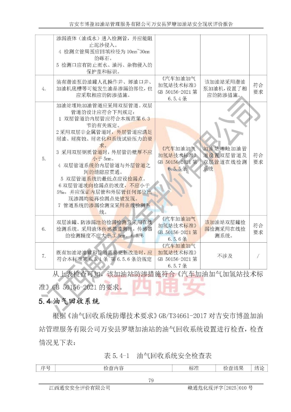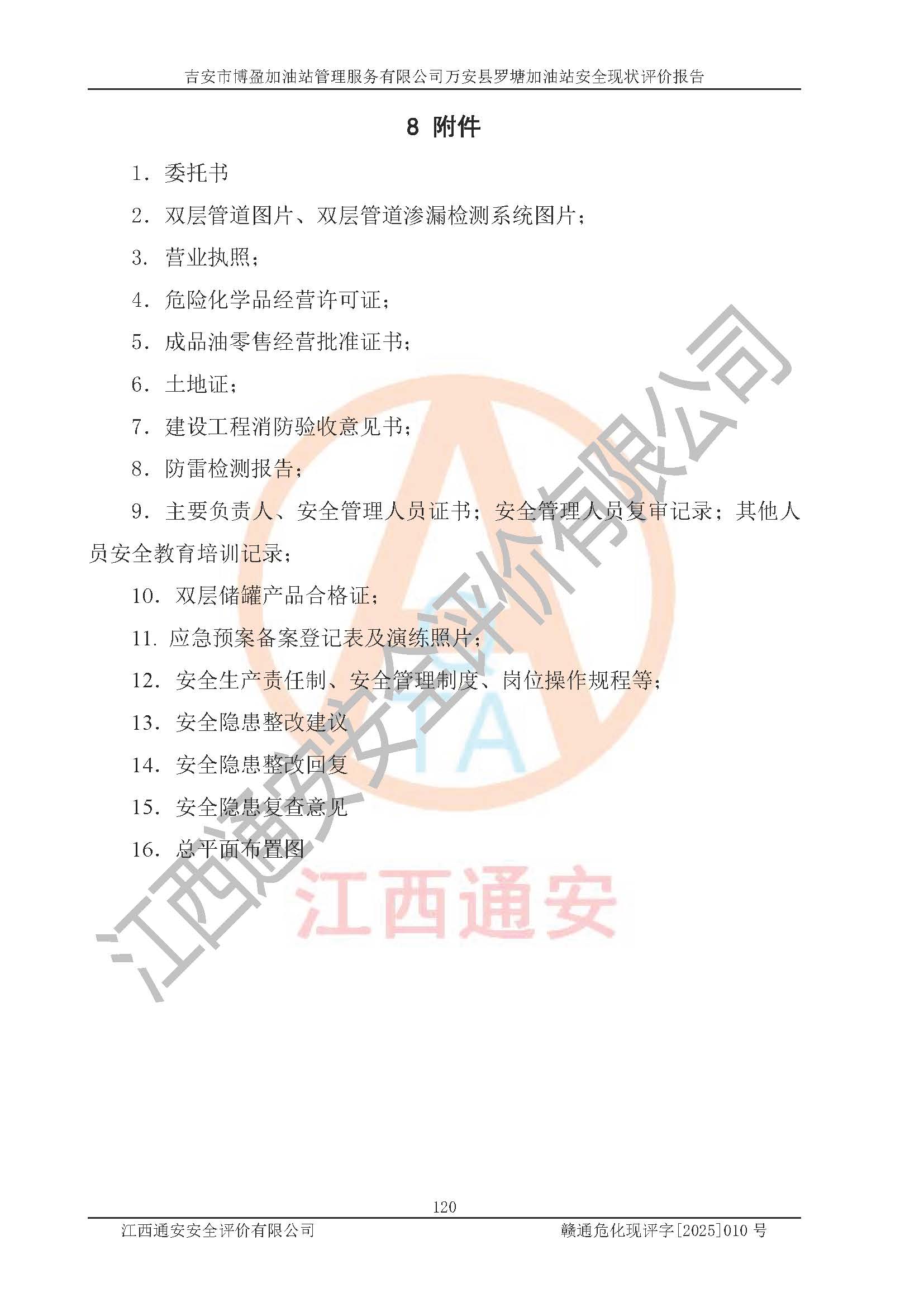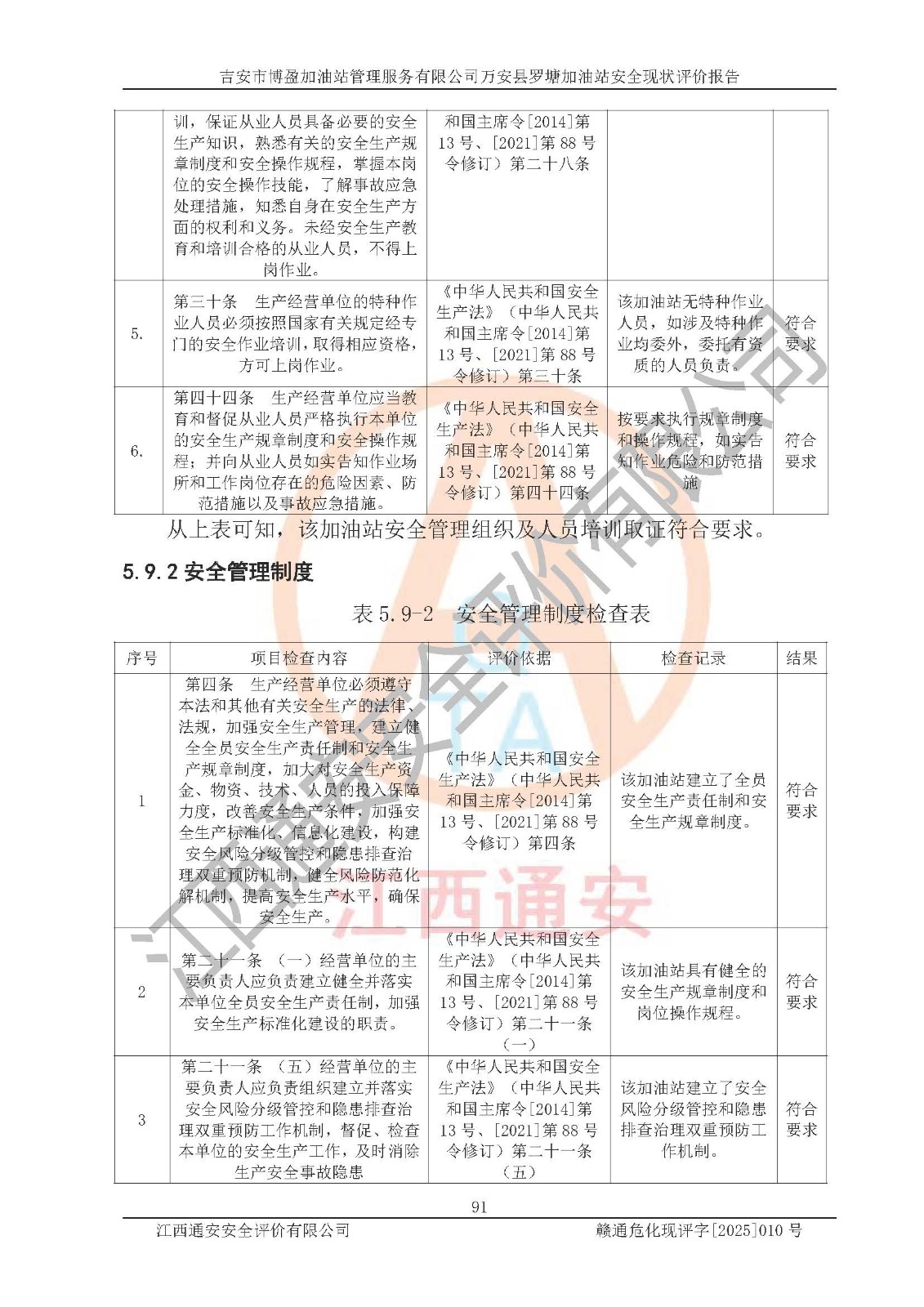 項目名稱 | 吉安市博盈加油站管理服務(wù)有限公司萬安縣羅塘加油站安全現(xiàn)狀評價報告 | ||||