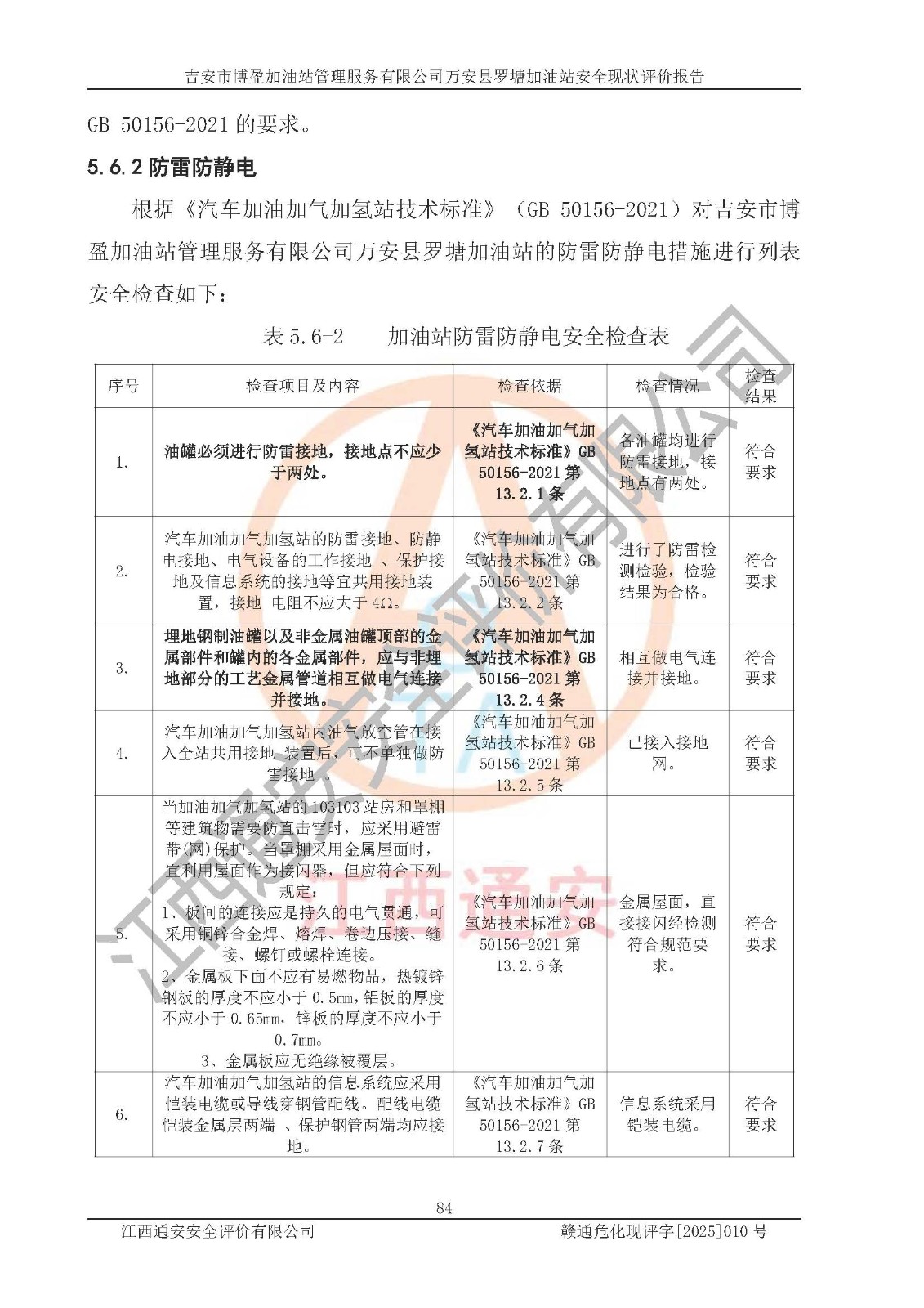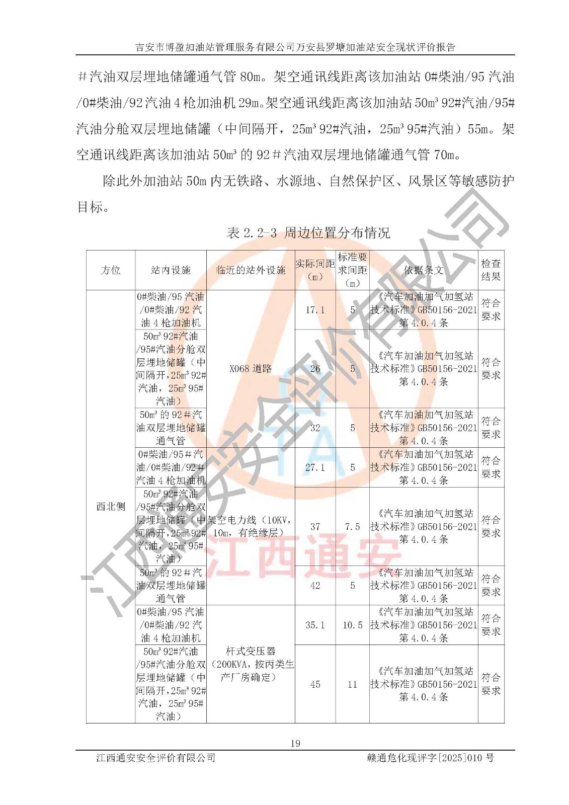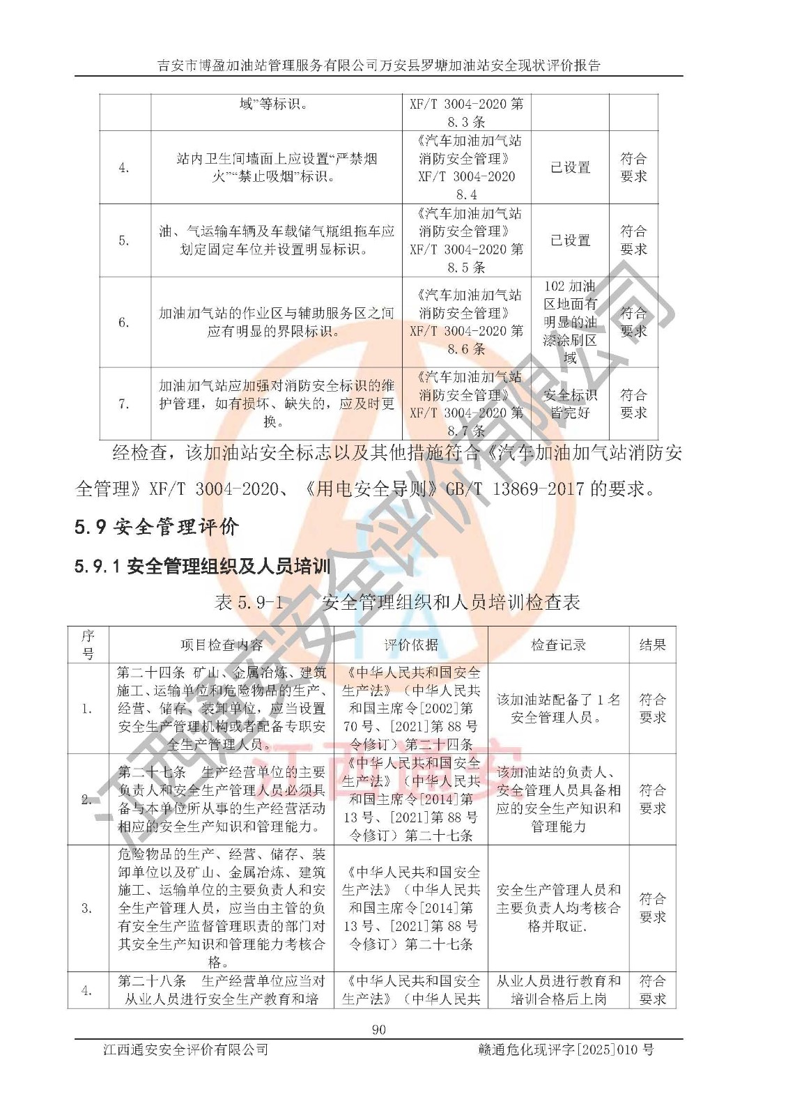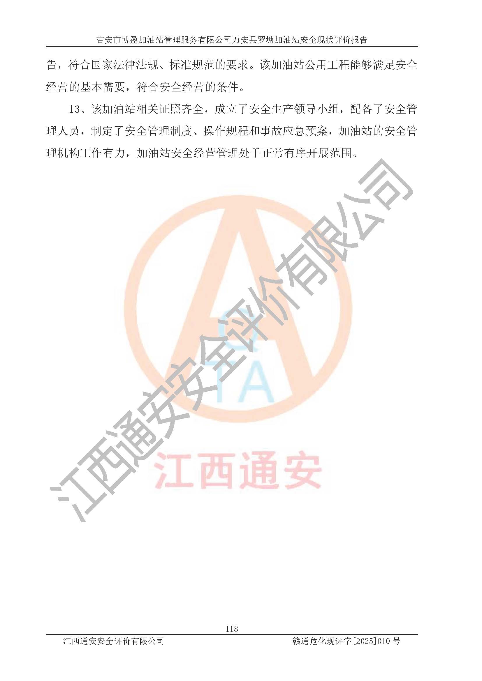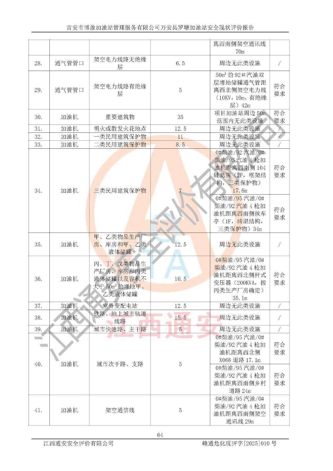 項目名稱 | 吉安市博盈加油站管理服務(wù)有限公司萬安縣羅塘加油站安全現(xiàn)狀評價報告 | ||||