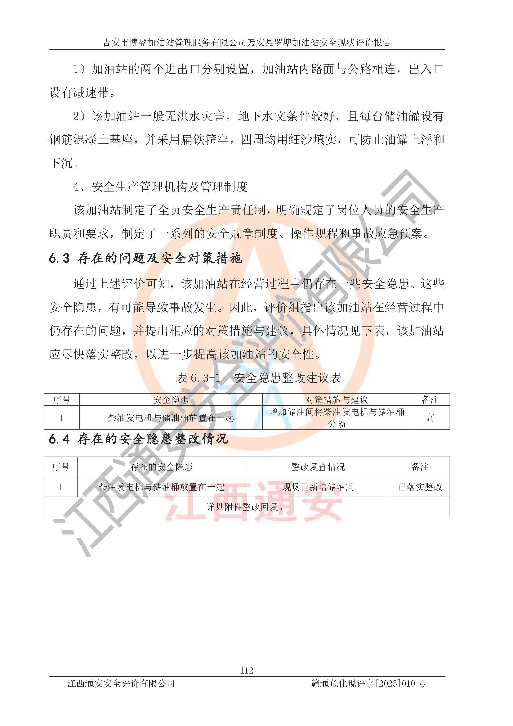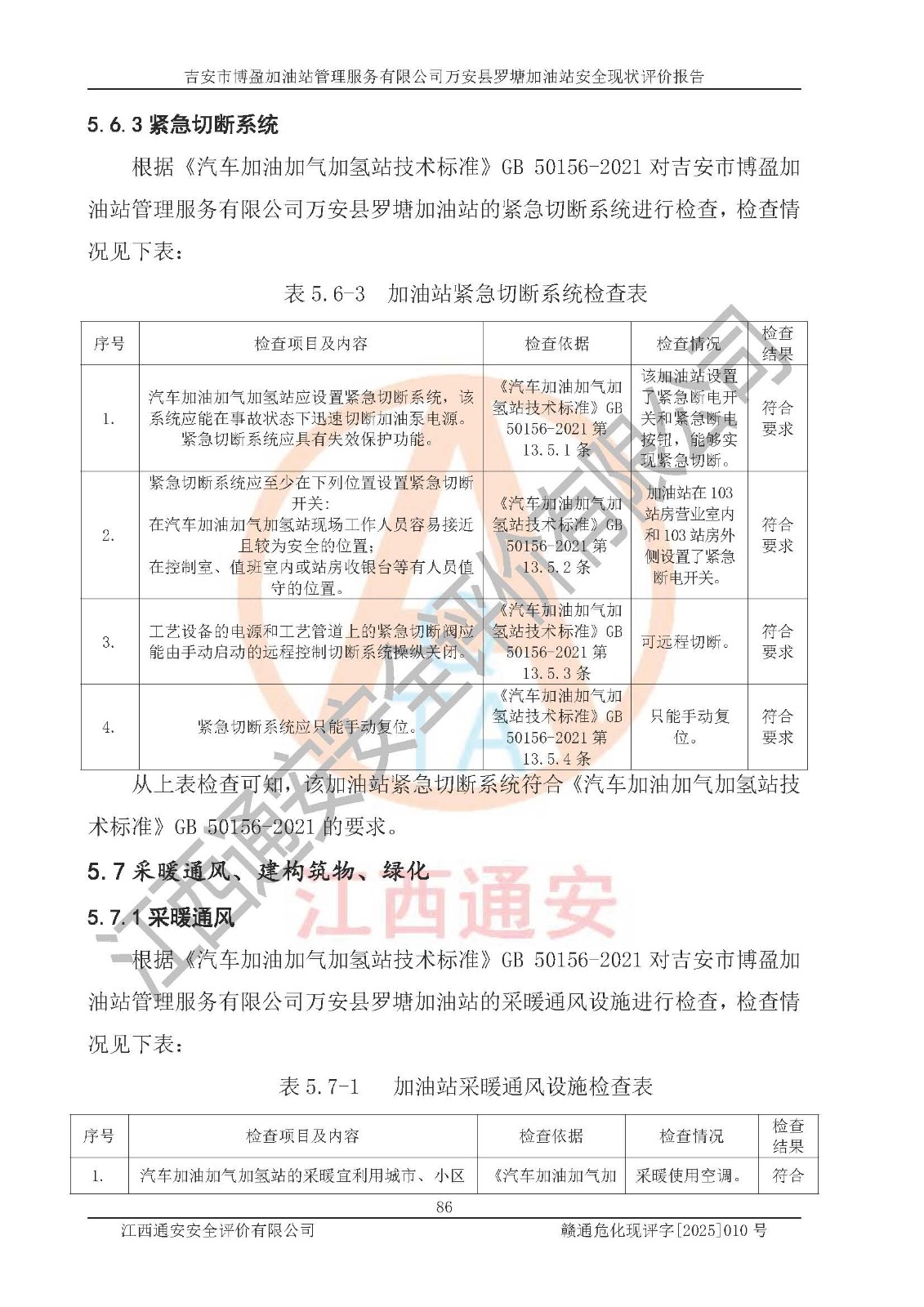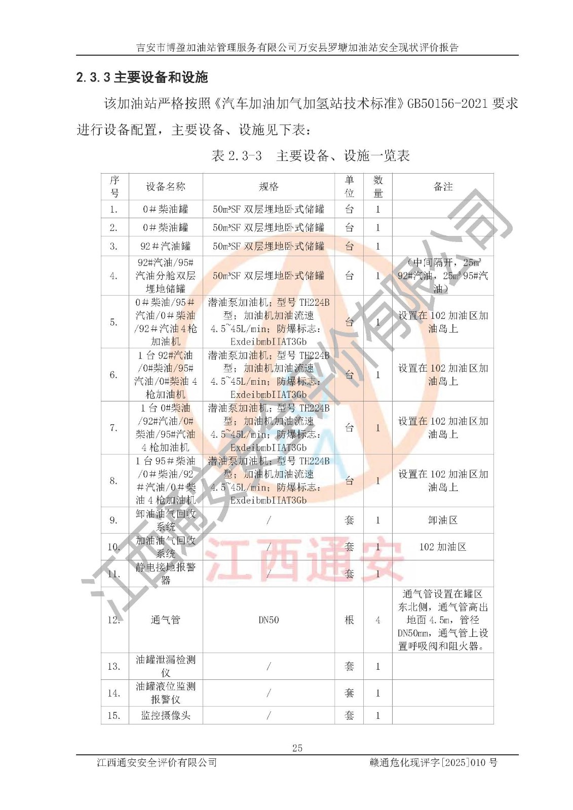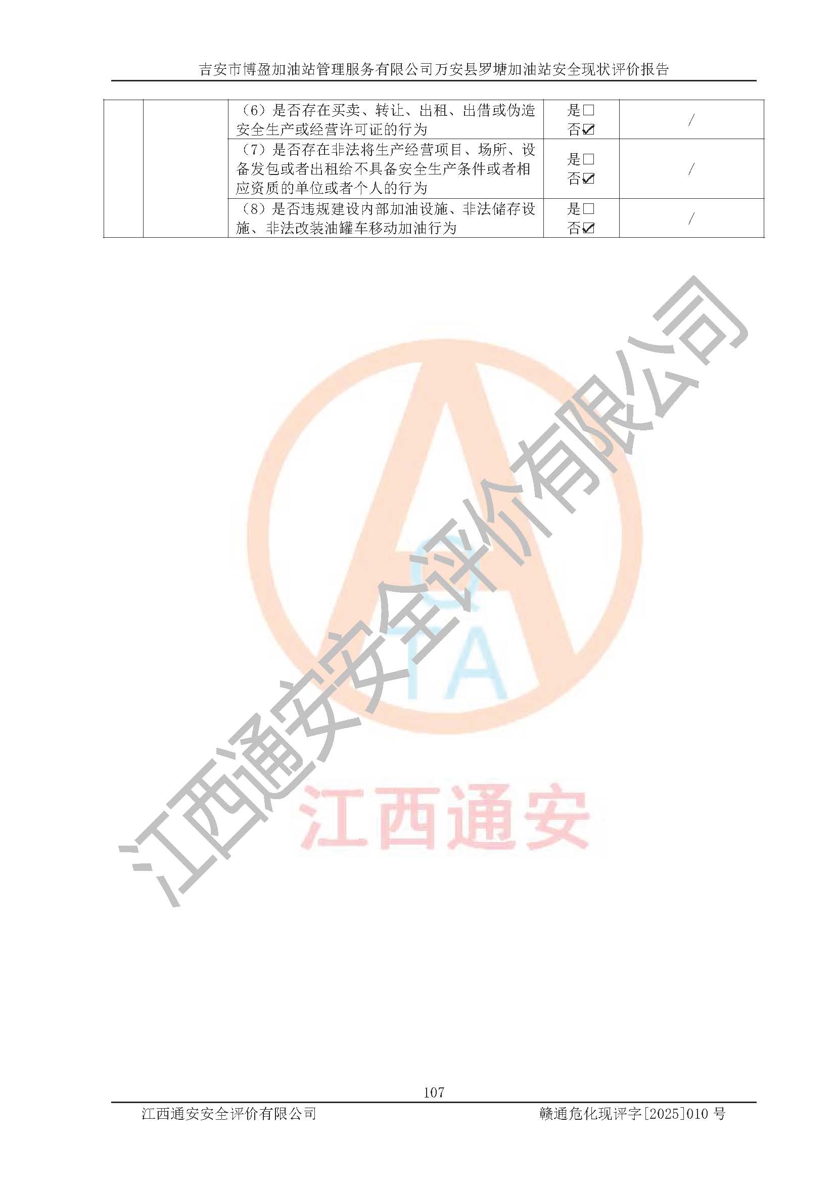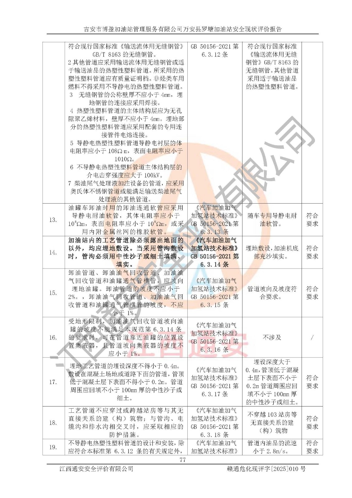 項目名稱 | 吉安市博盈加油站管理服務(wù)有限公司萬安縣羅塘加油站安全現(xiàn)狀評價報告 | ||||