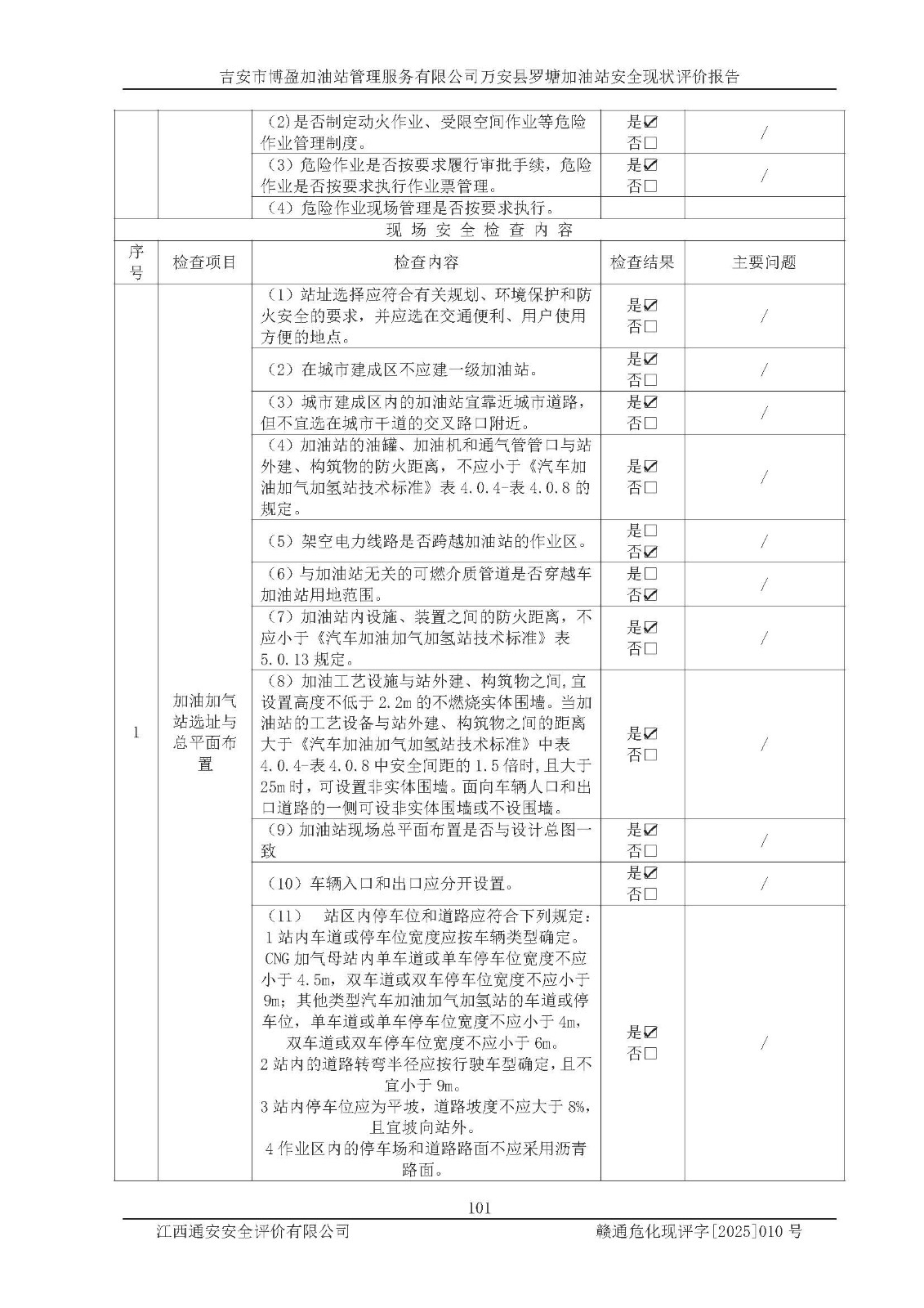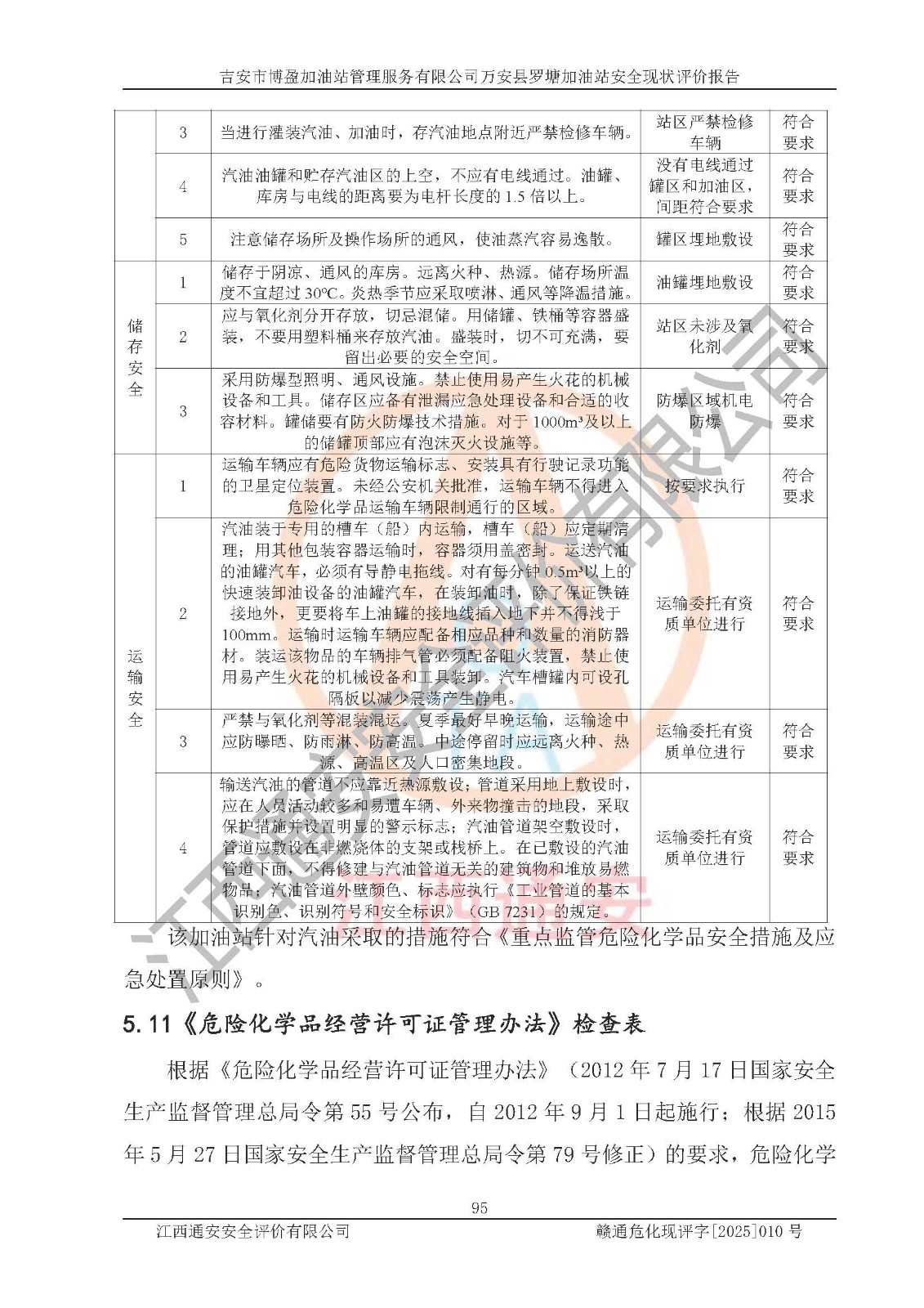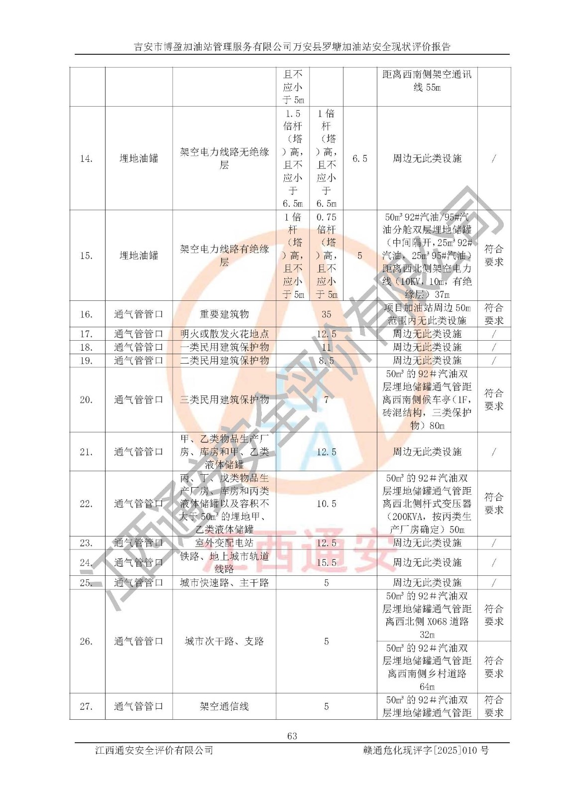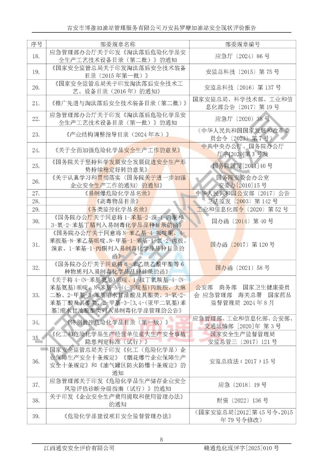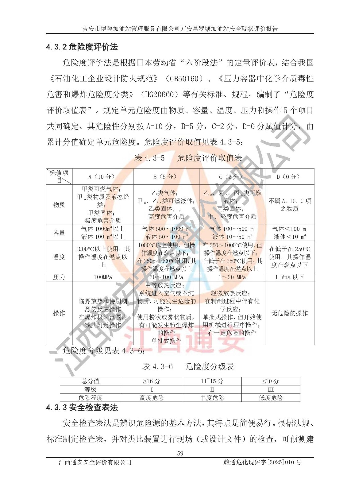 項目名稱 | 吉安市博盈加油站管理服務(wù)有限公司萬安縣羅塘加油站安全現(xiàn)狀評價報告 | ||||