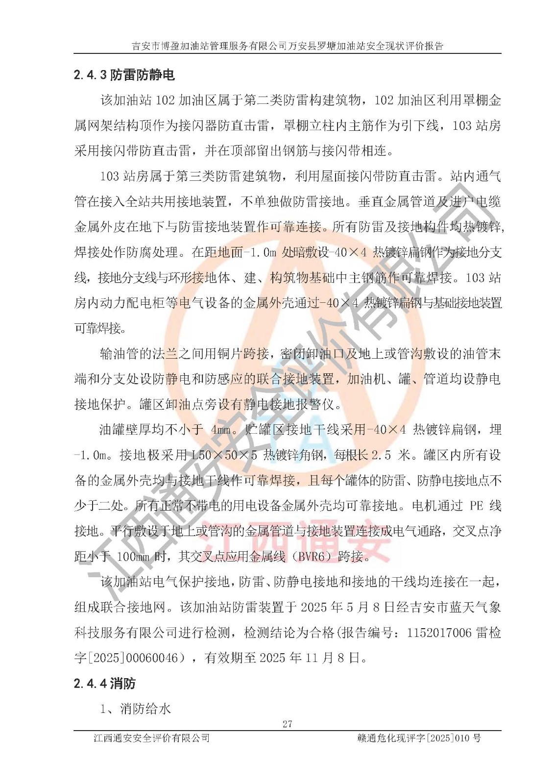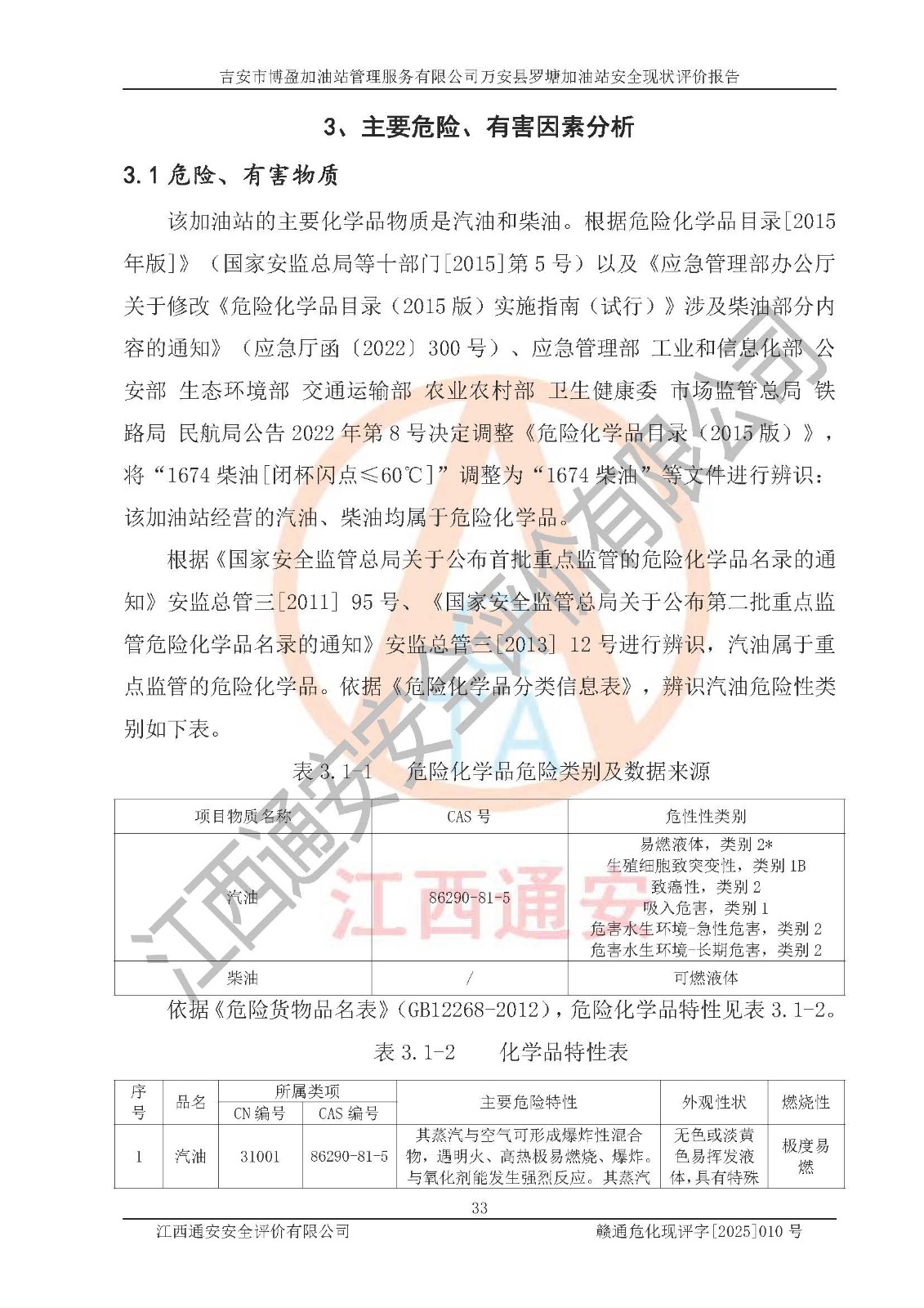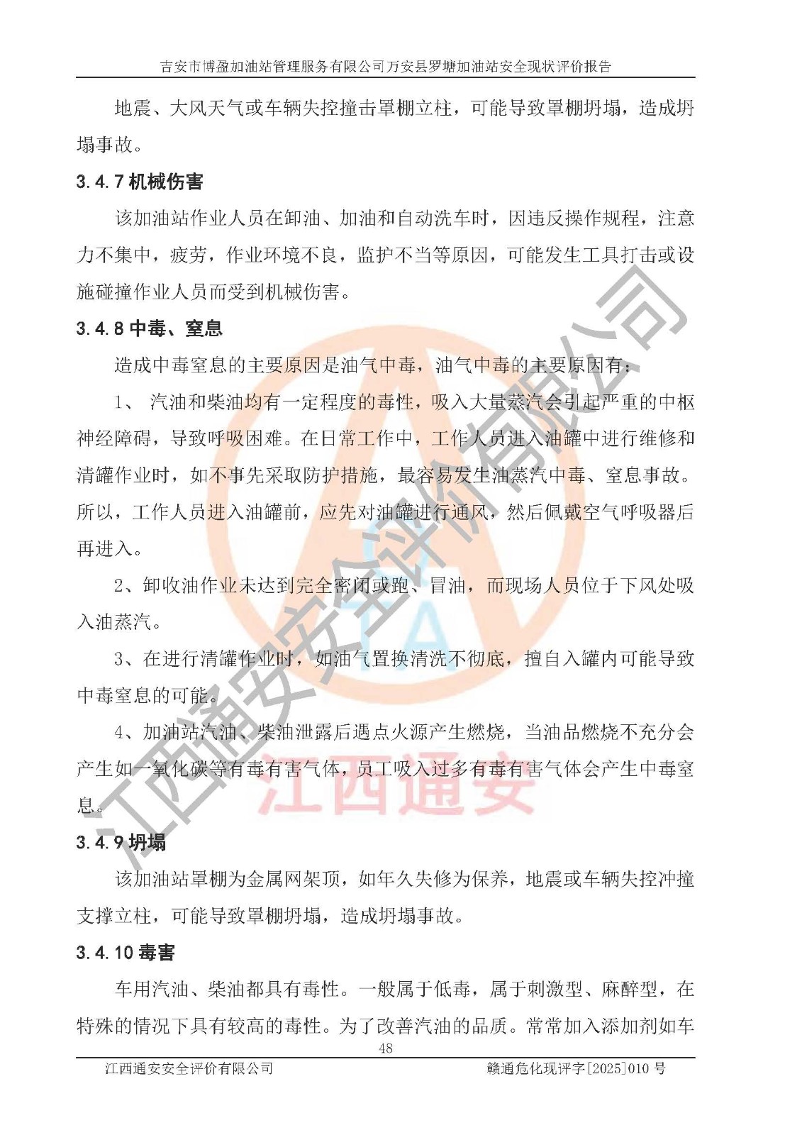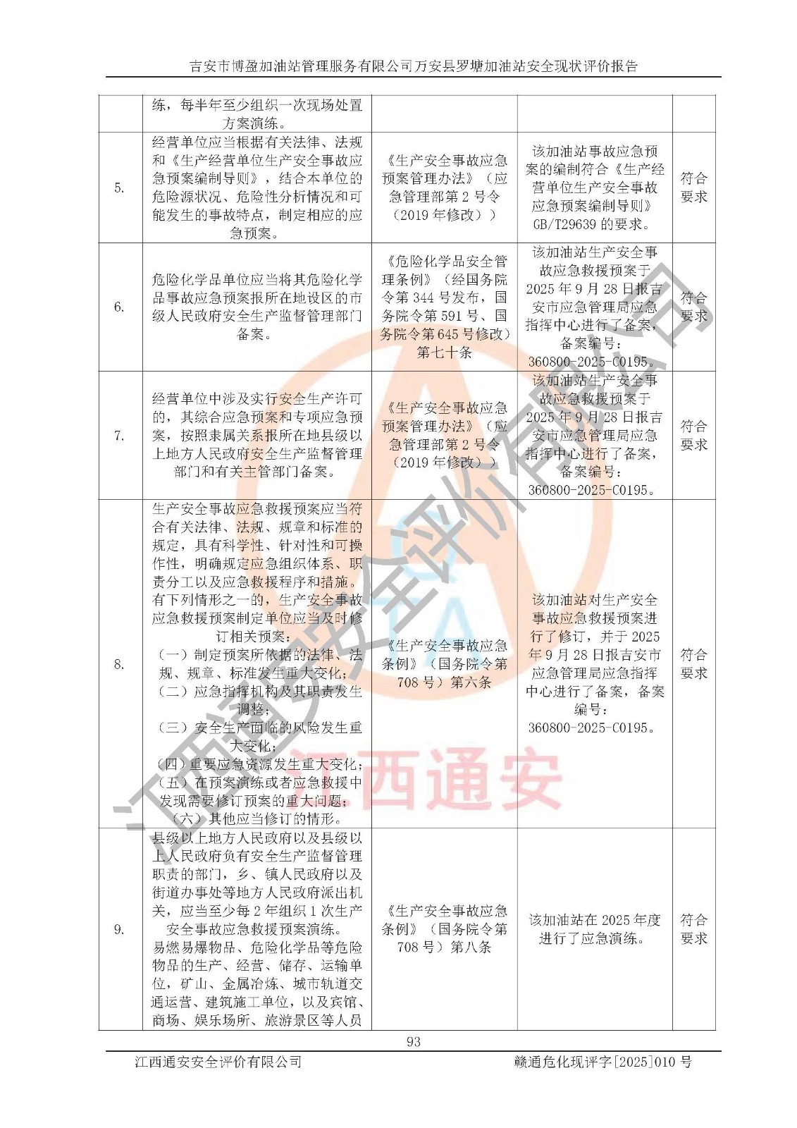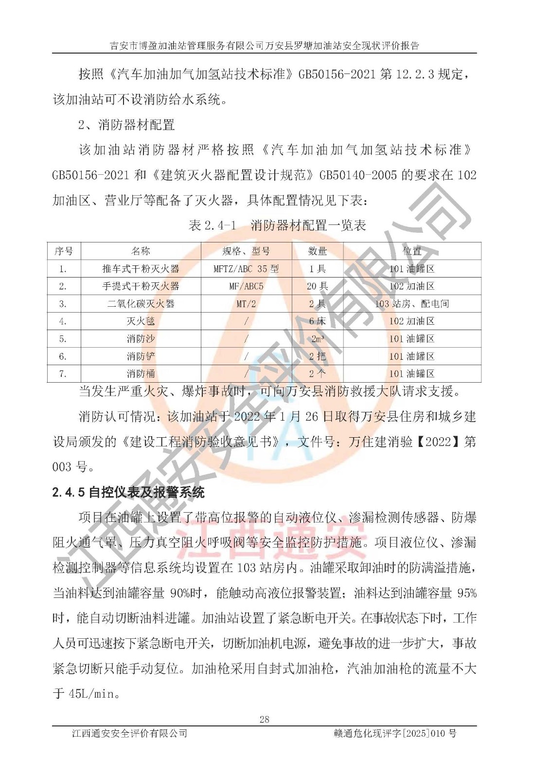 項目名稱 | 吉安市博盈加油站管理服務(wù)有限公司萬安縣羅塘加油站安全現(xiàn)狀評價報告 | ||||