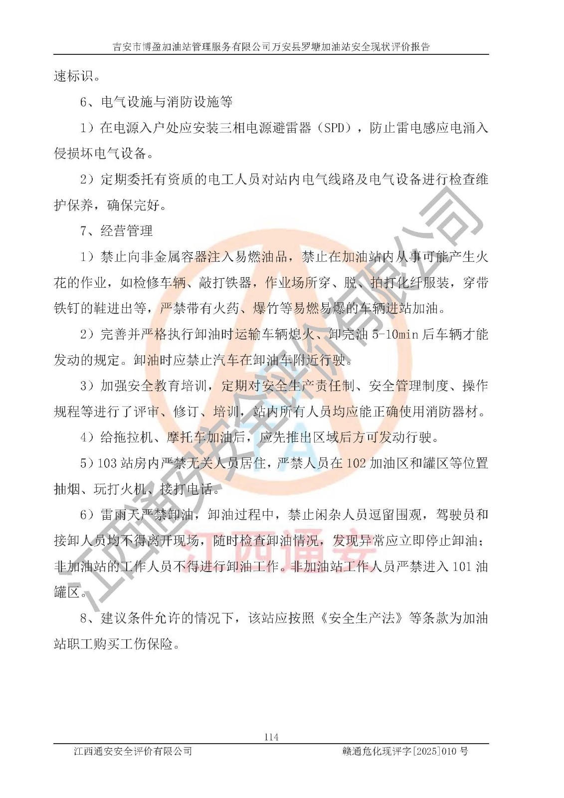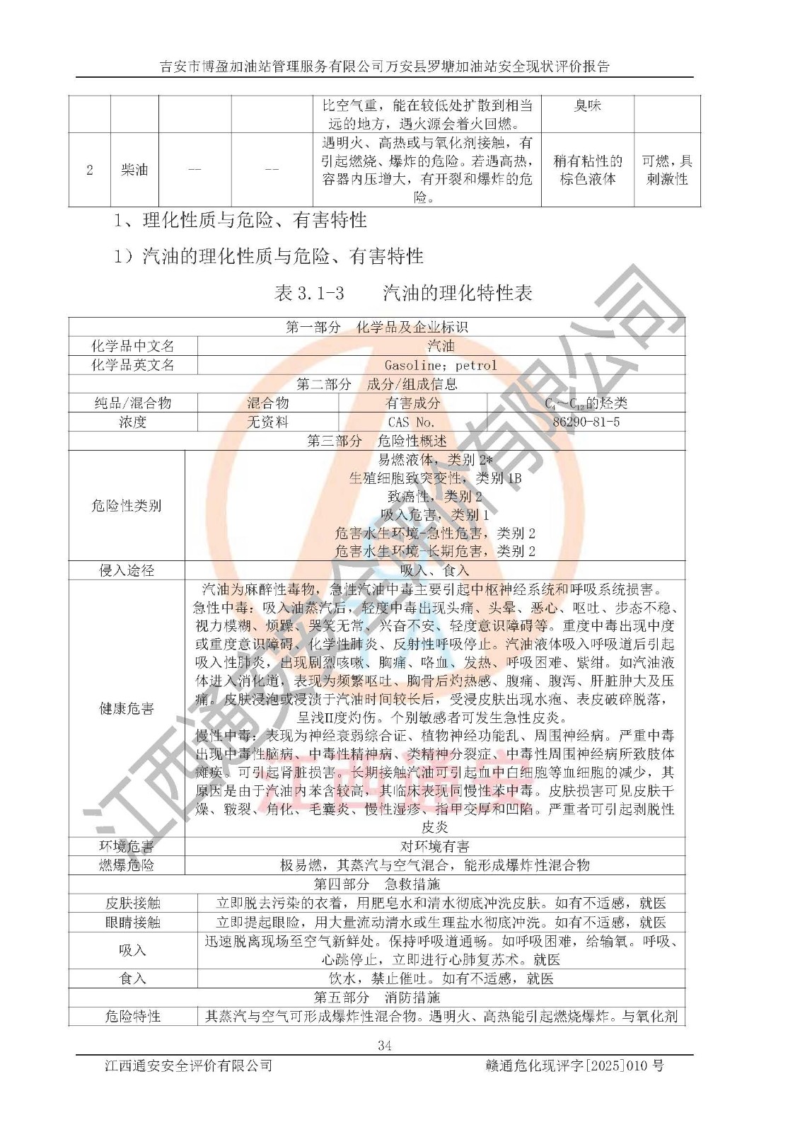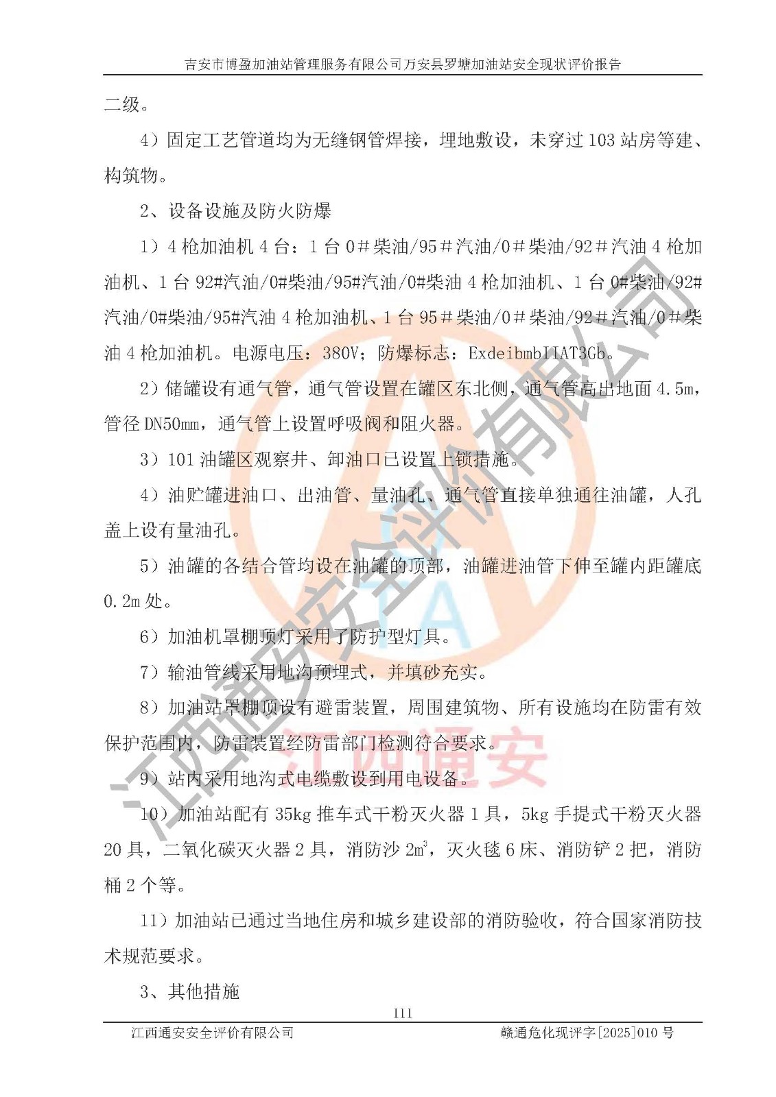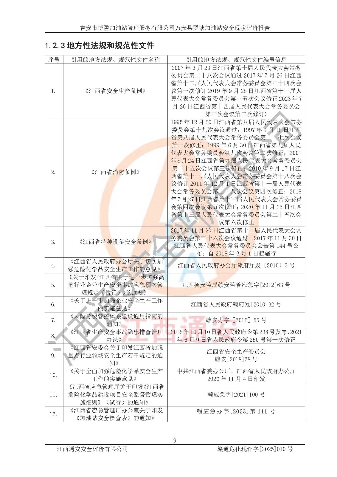 項目名稱 | 吉安市博盈加油站管理服務(wù)有限公司萬安縣羅塘加油站安全現(xiàn)狀評價報告 | ||||