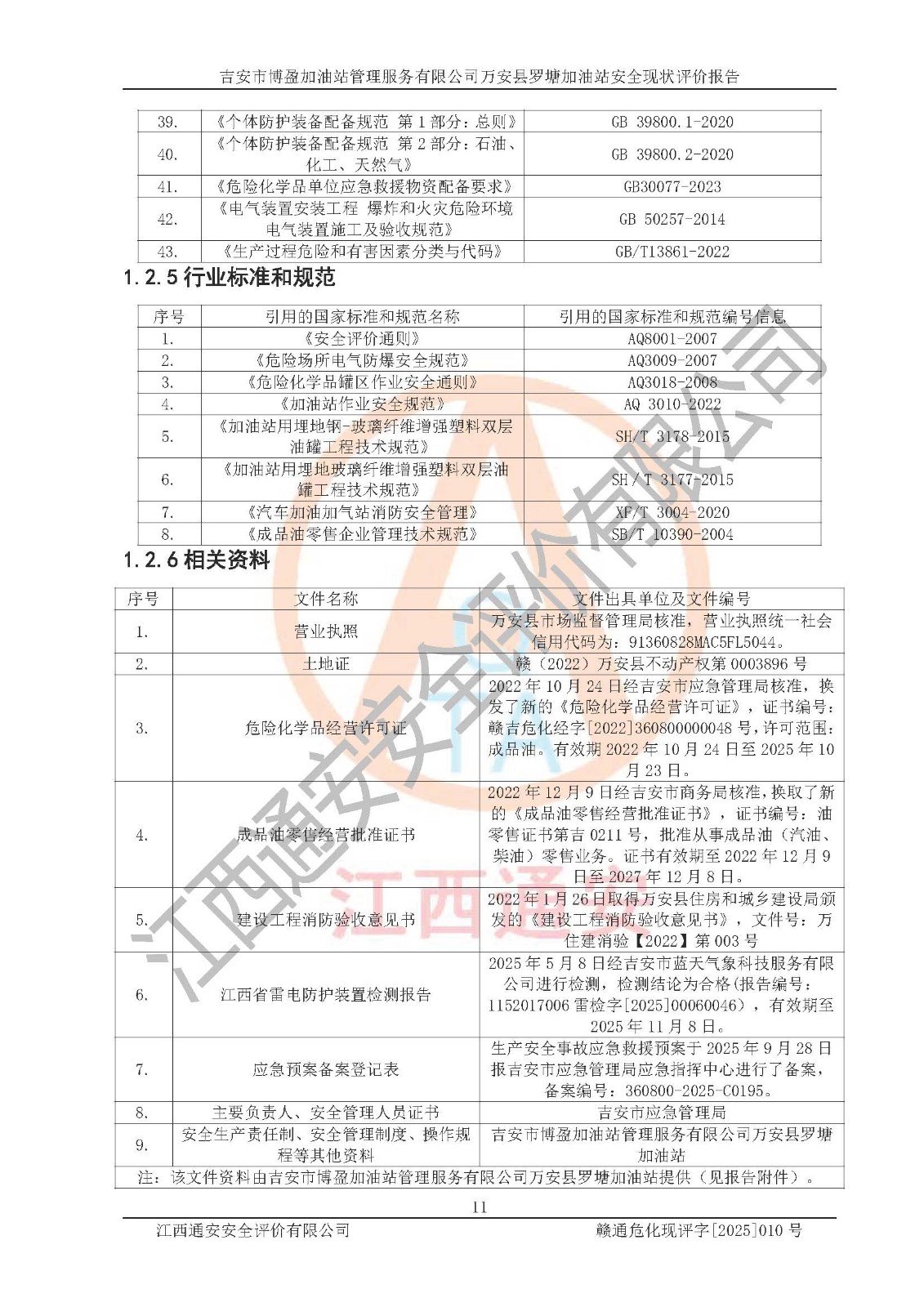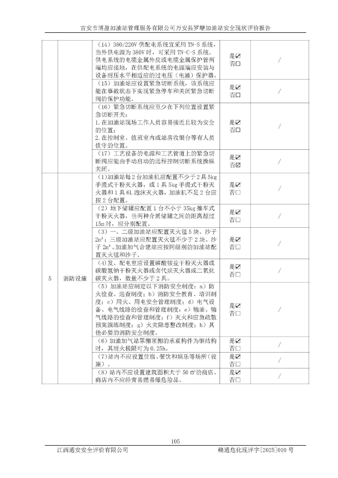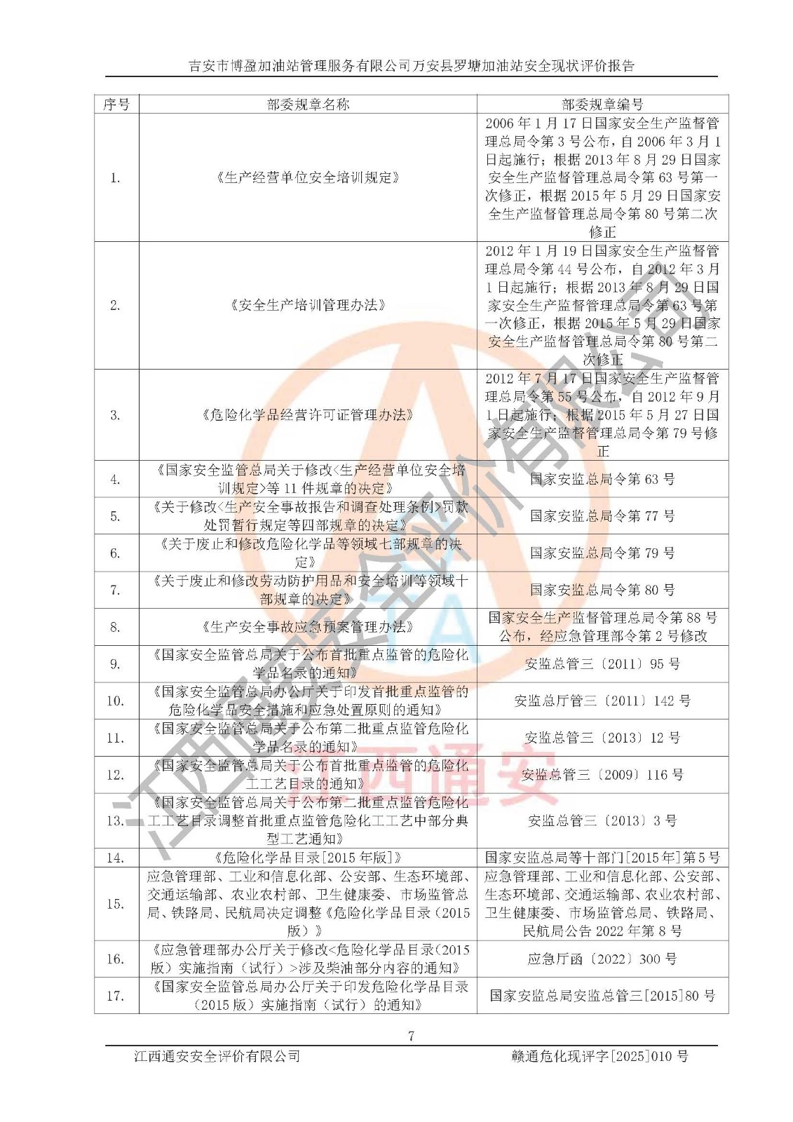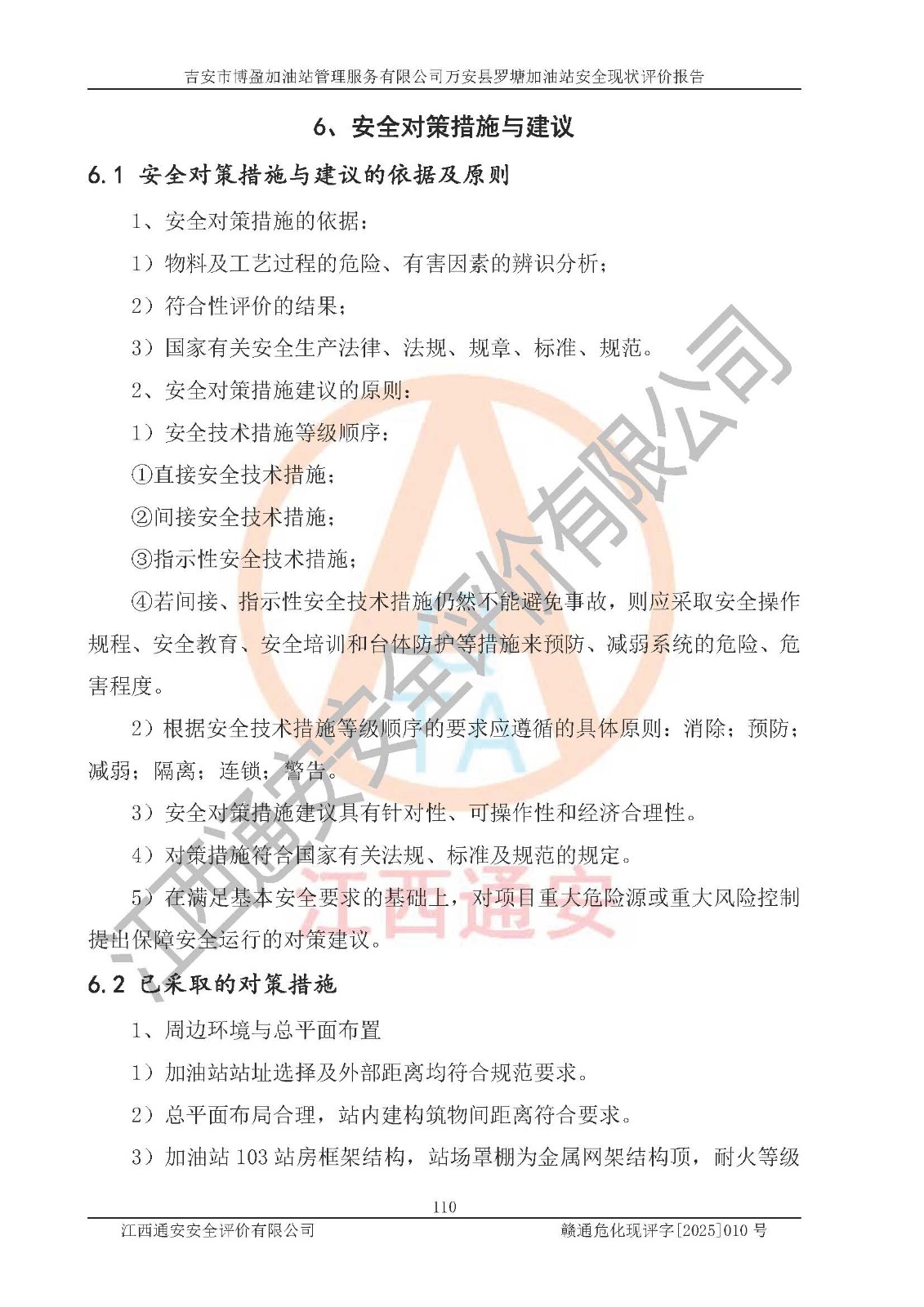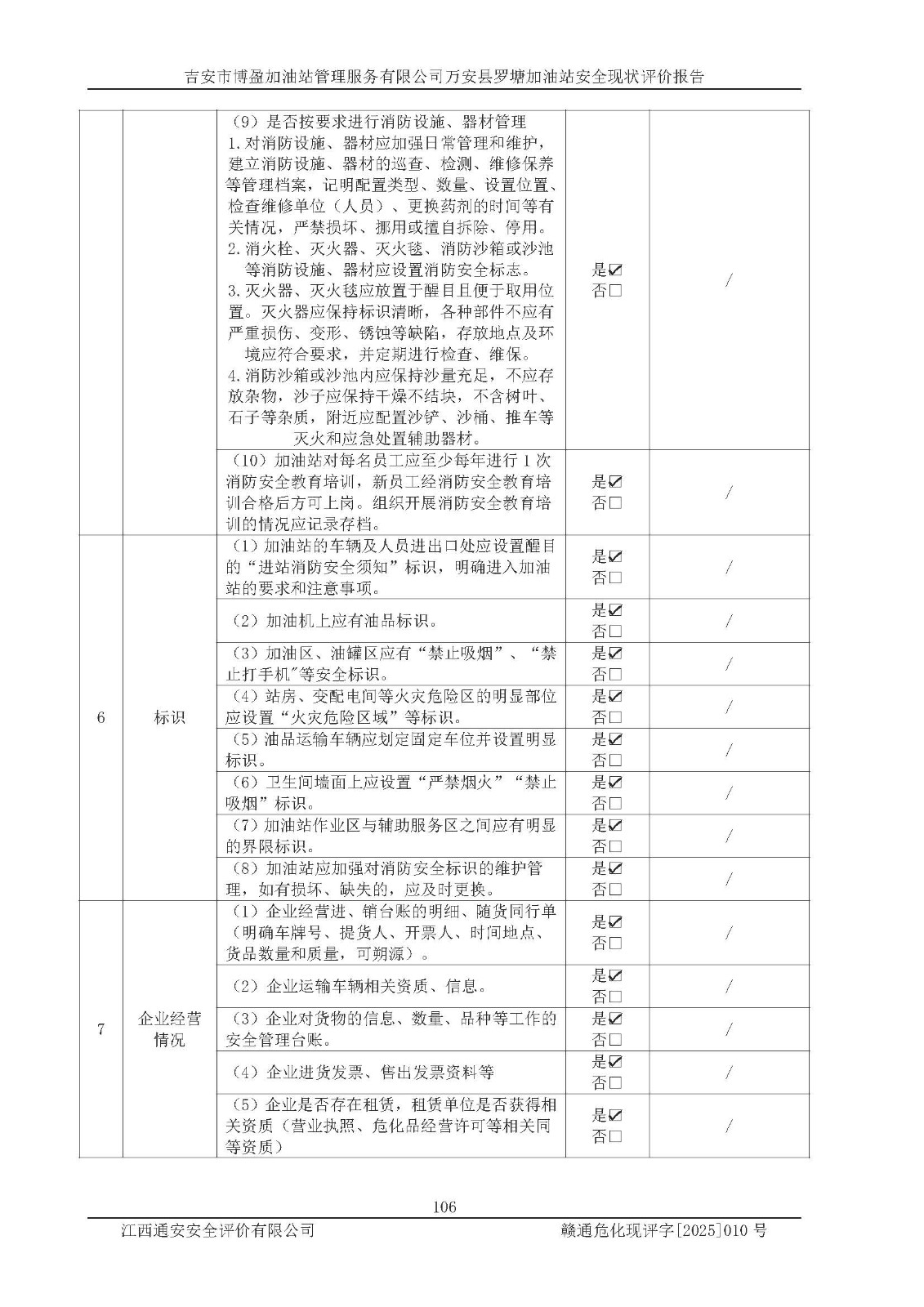 項目名稱 | 吉安市博盈加油站管理服務(wù)有限公司萬安縣羅塘加油站安全現(xiàn)狀評價報告 | ||||