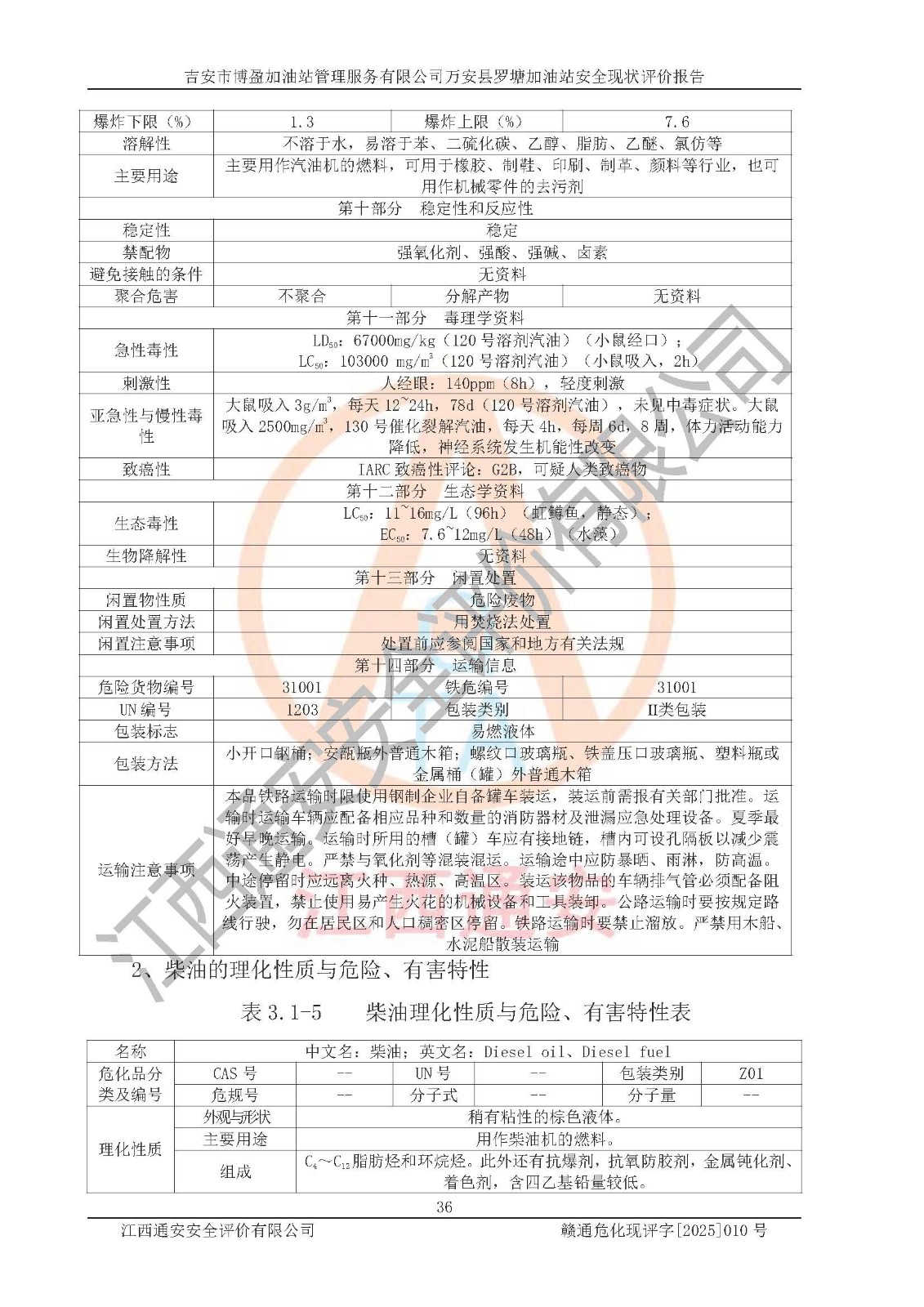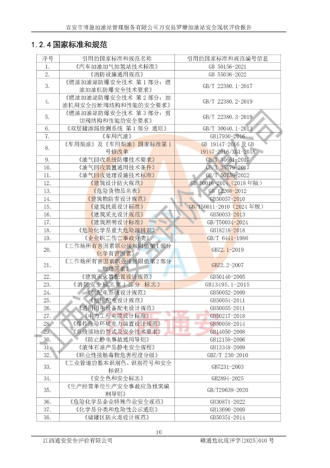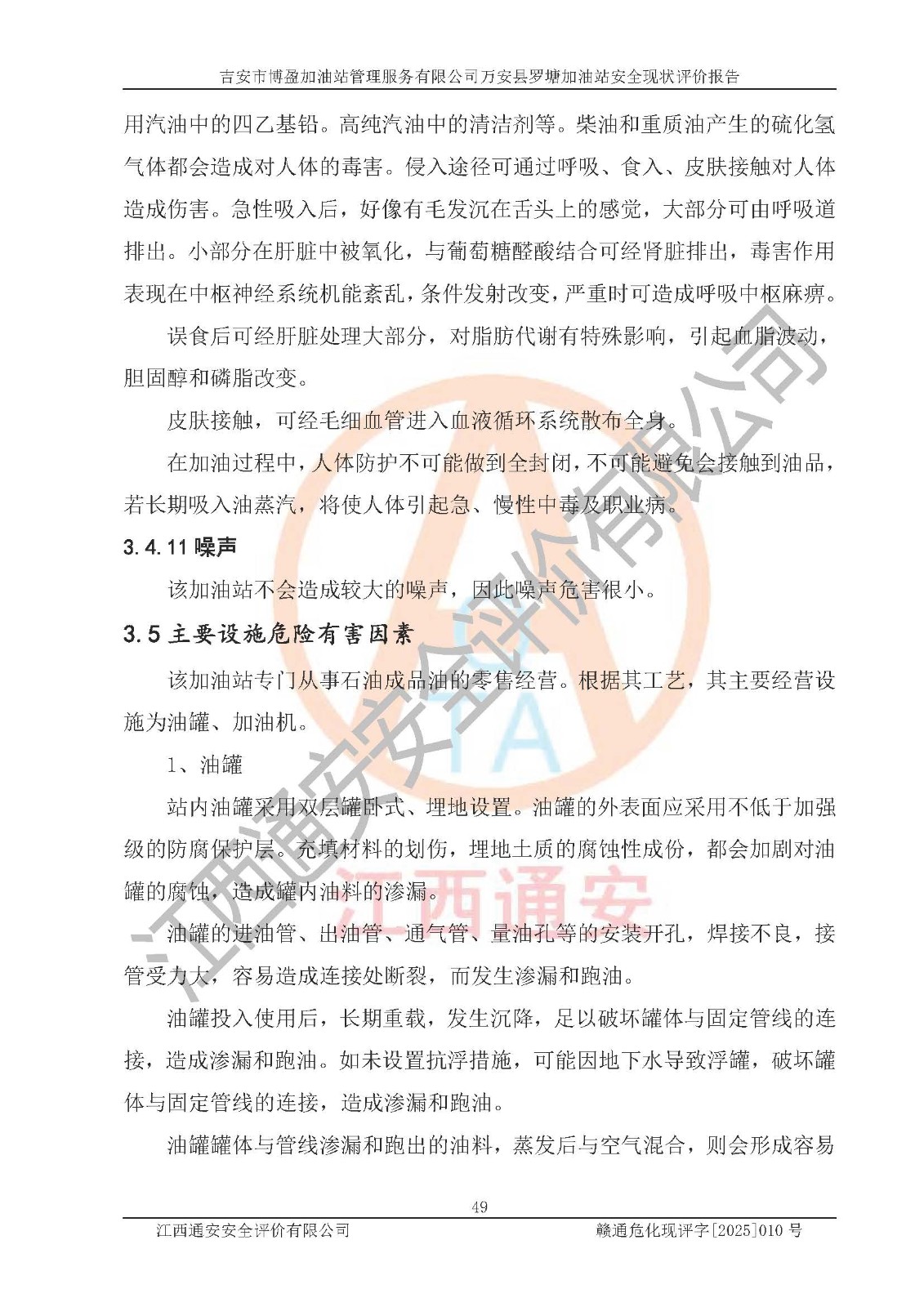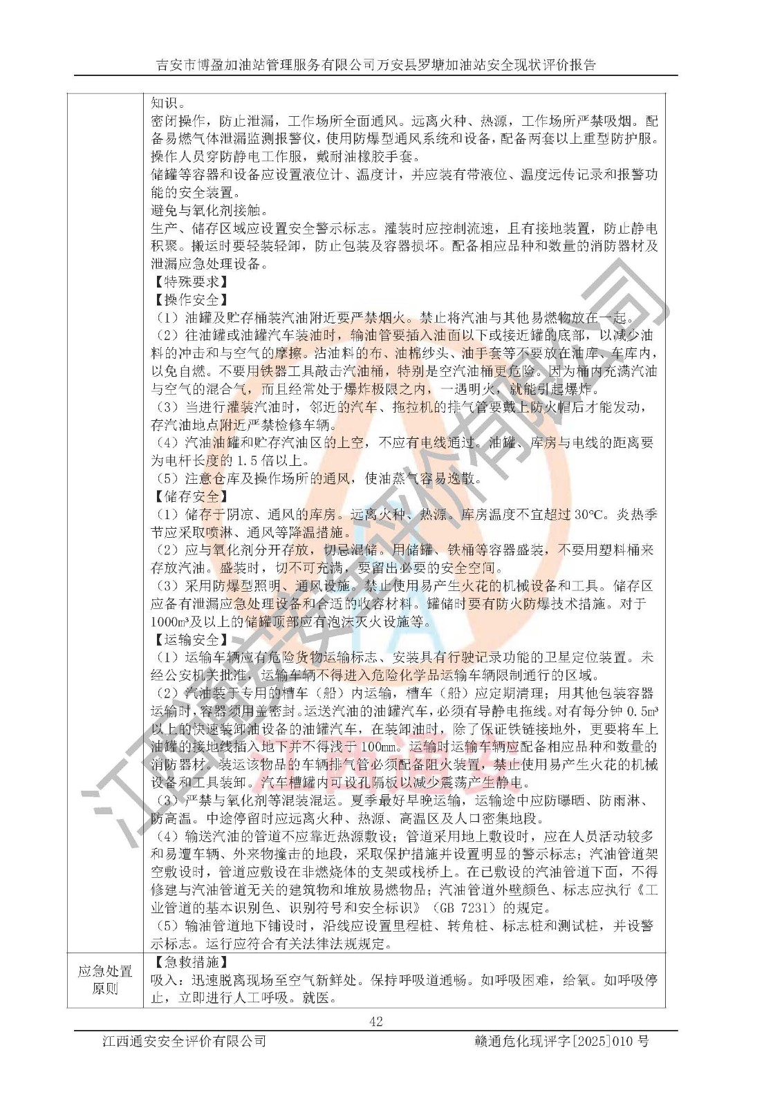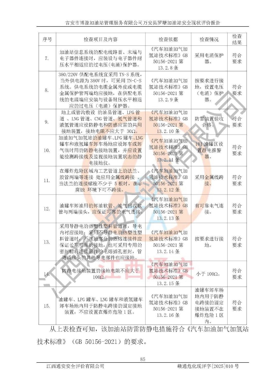 項目名稱 | 吉安市博盈加油站管理服務(wù)有限公司萬安縣羅塘加油站安全現(xiàn)狀評價報告 | ||||