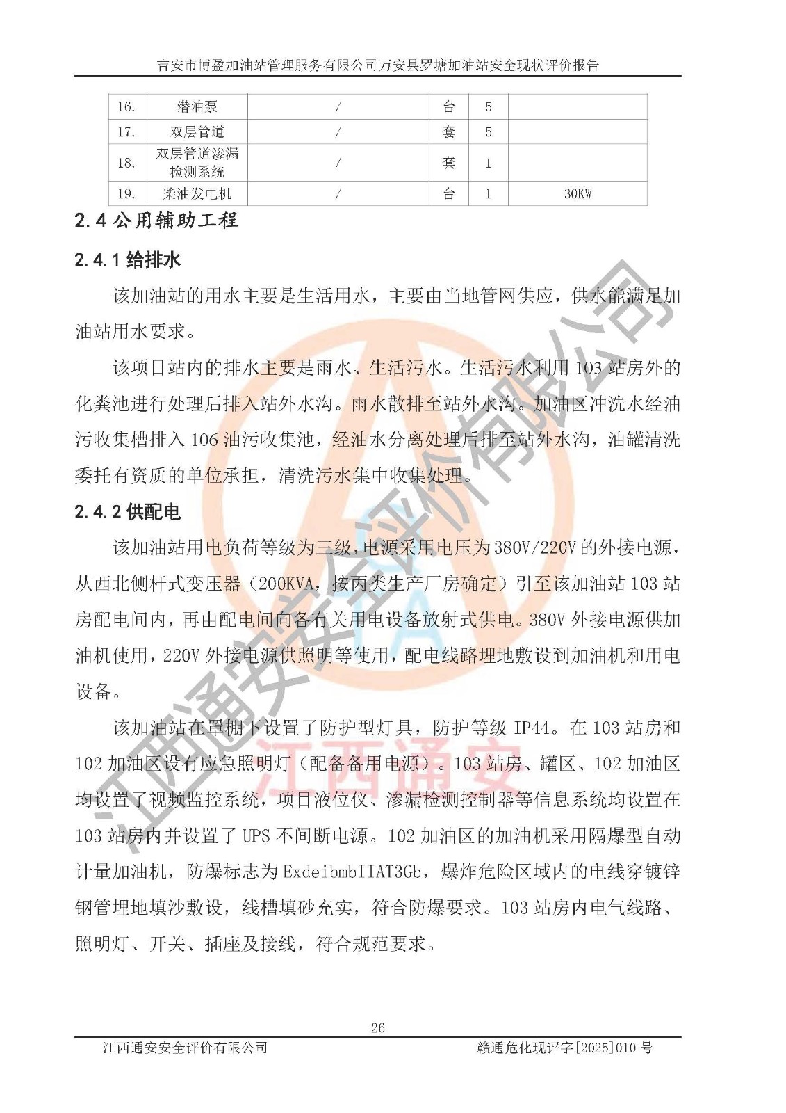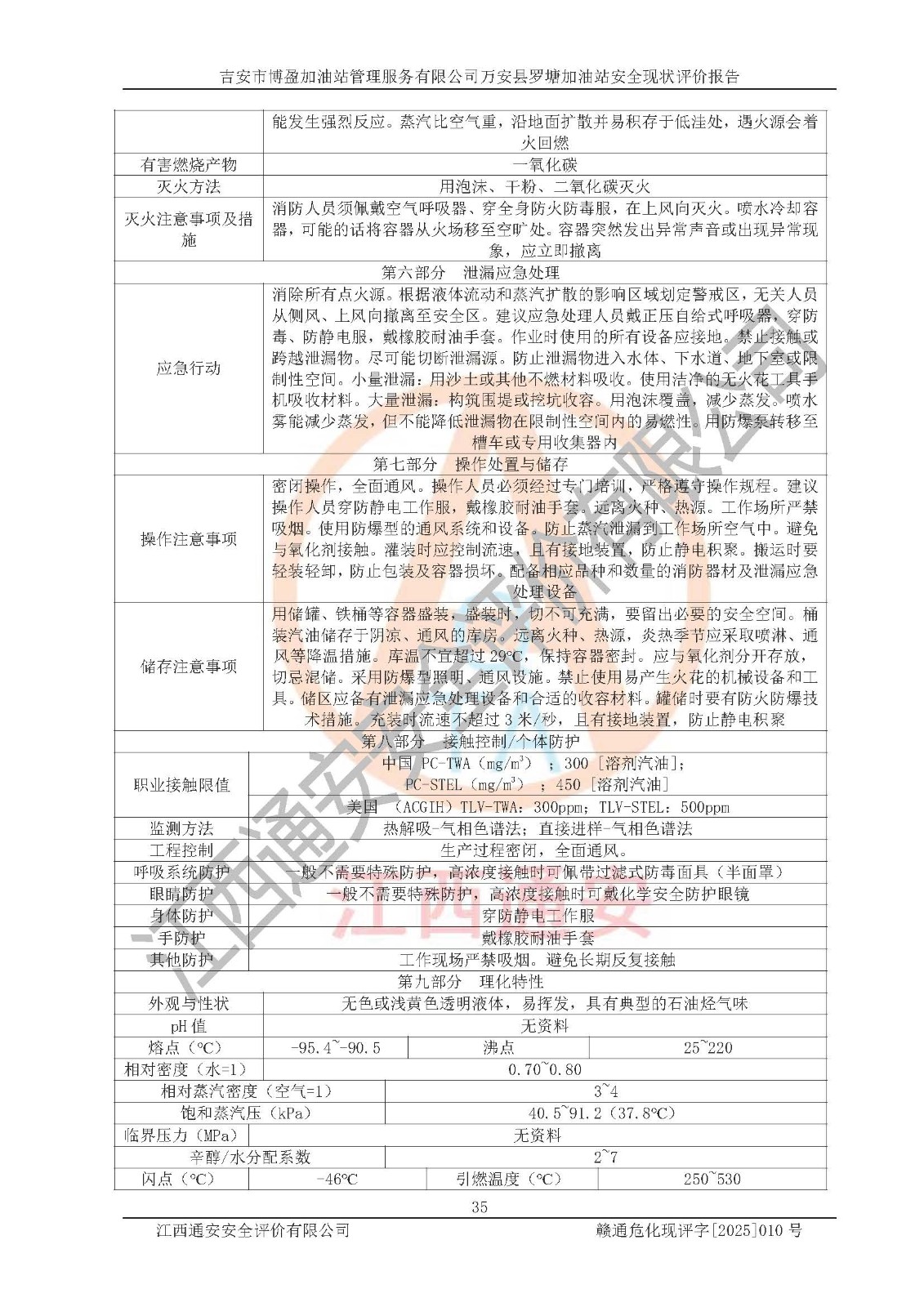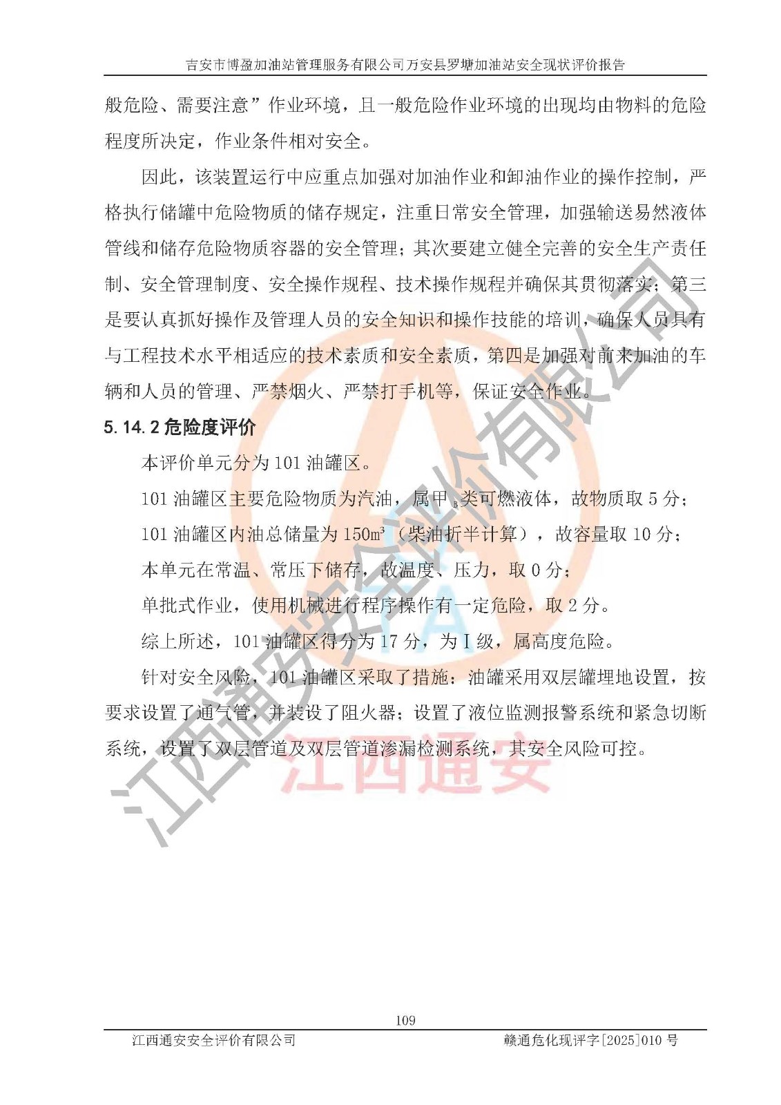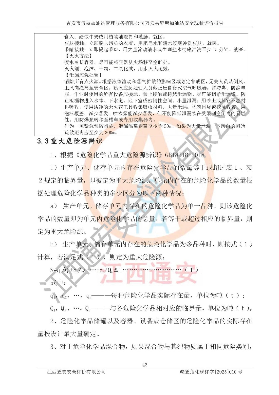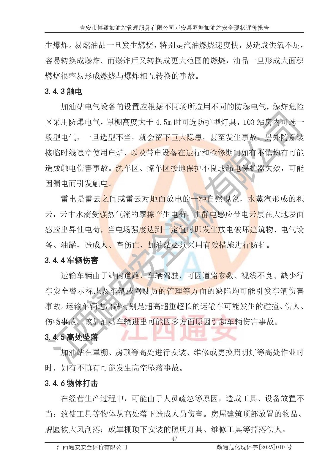 項目名稱 | 吉安市博盈加油站管理服務(wù)有限公司萬安縣羅塘加油站安全現(xiàn)狀評價報告 | ||||