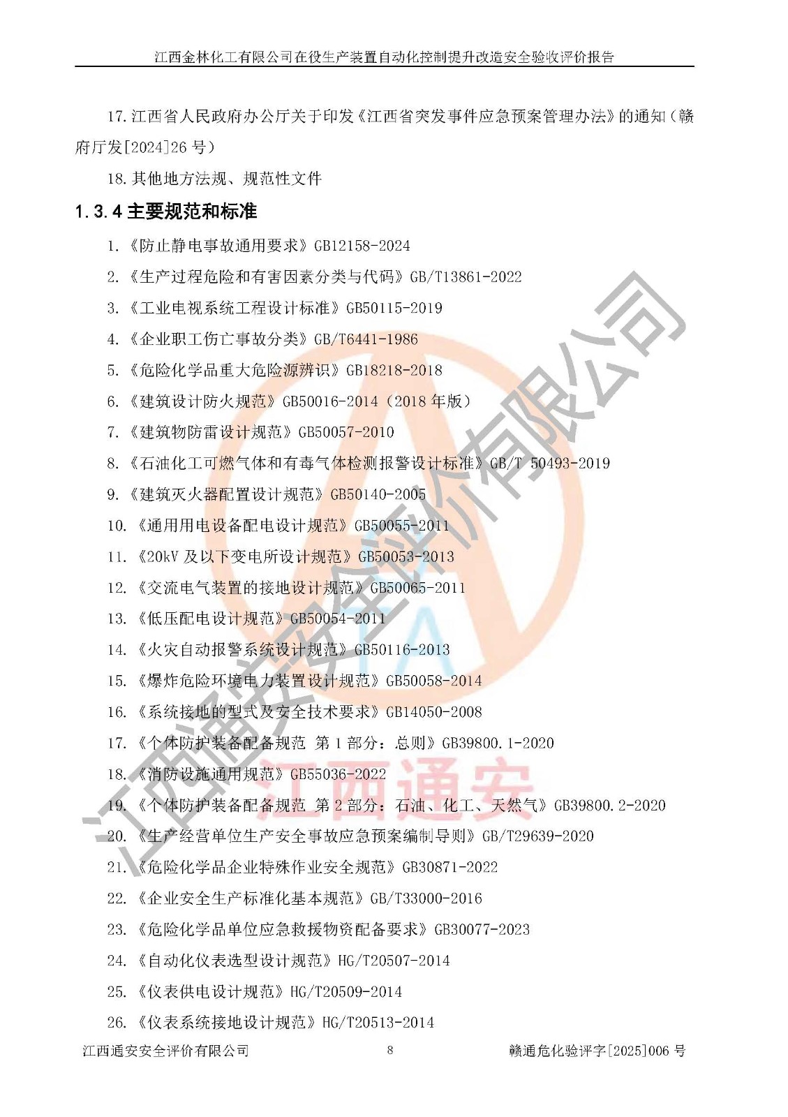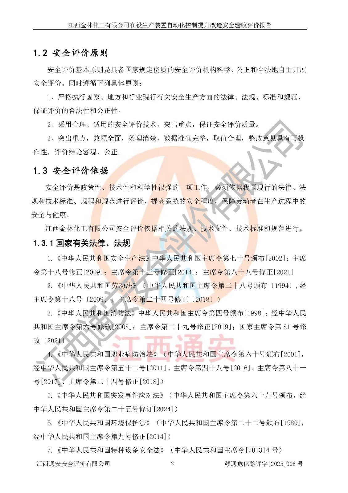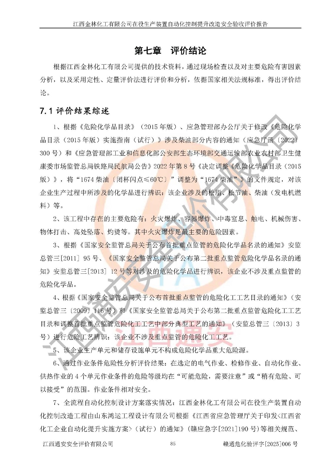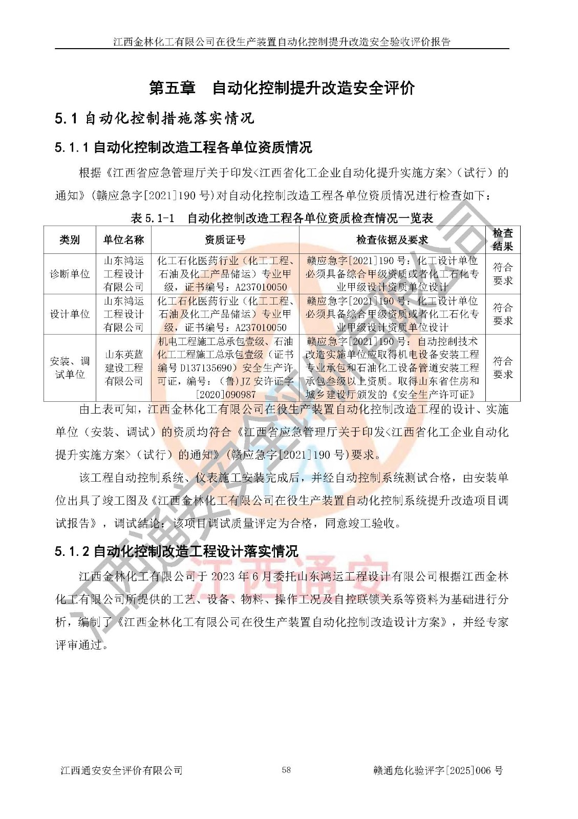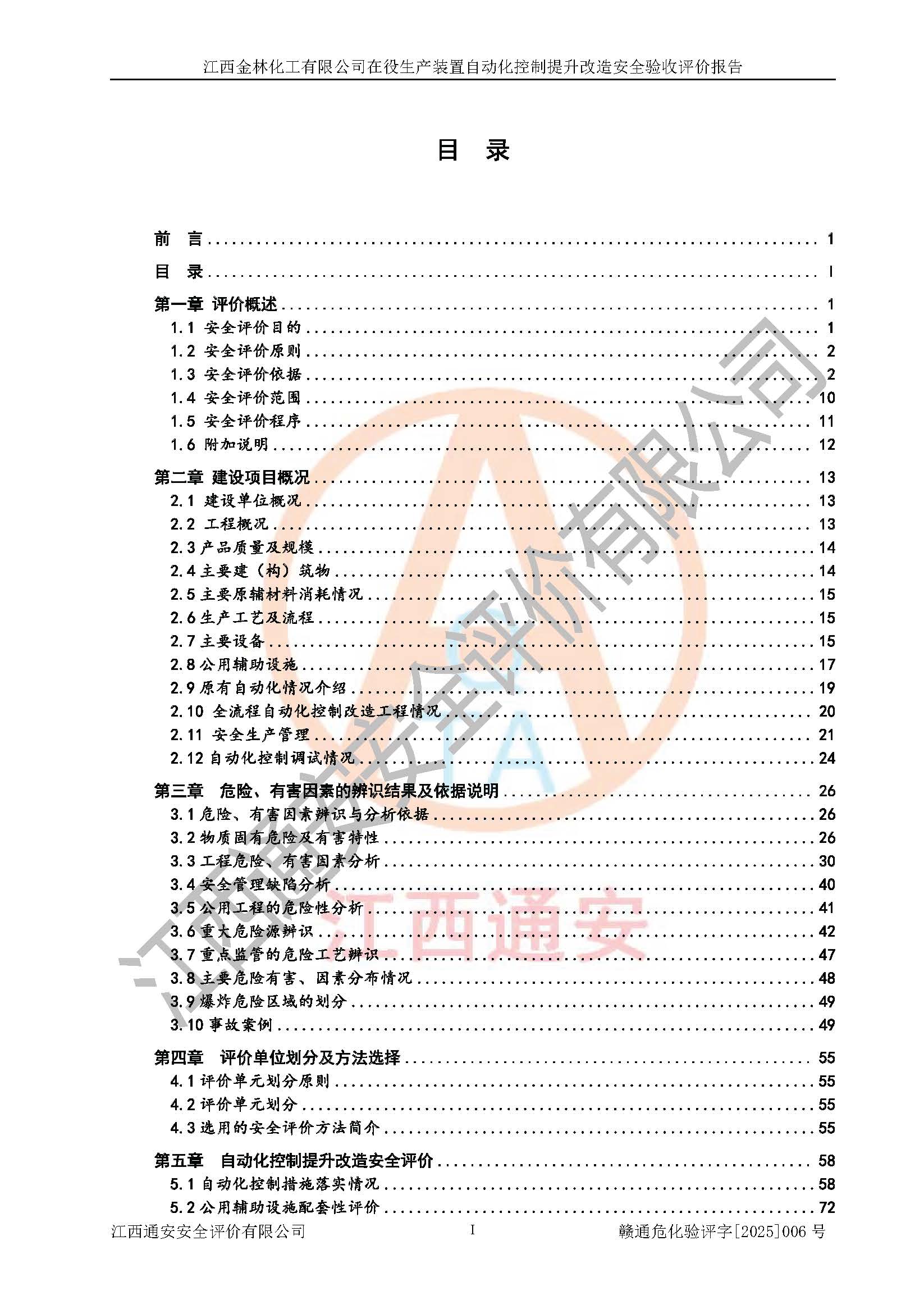 評(píng)價(jià)報(bào)告名稱 | 江西金林化工有限公司在役生產(chǎn)裝置自動(dòng)化控制提升改造安全驗(yàn)收評(píng)價(jià)報(bào)告 | |||