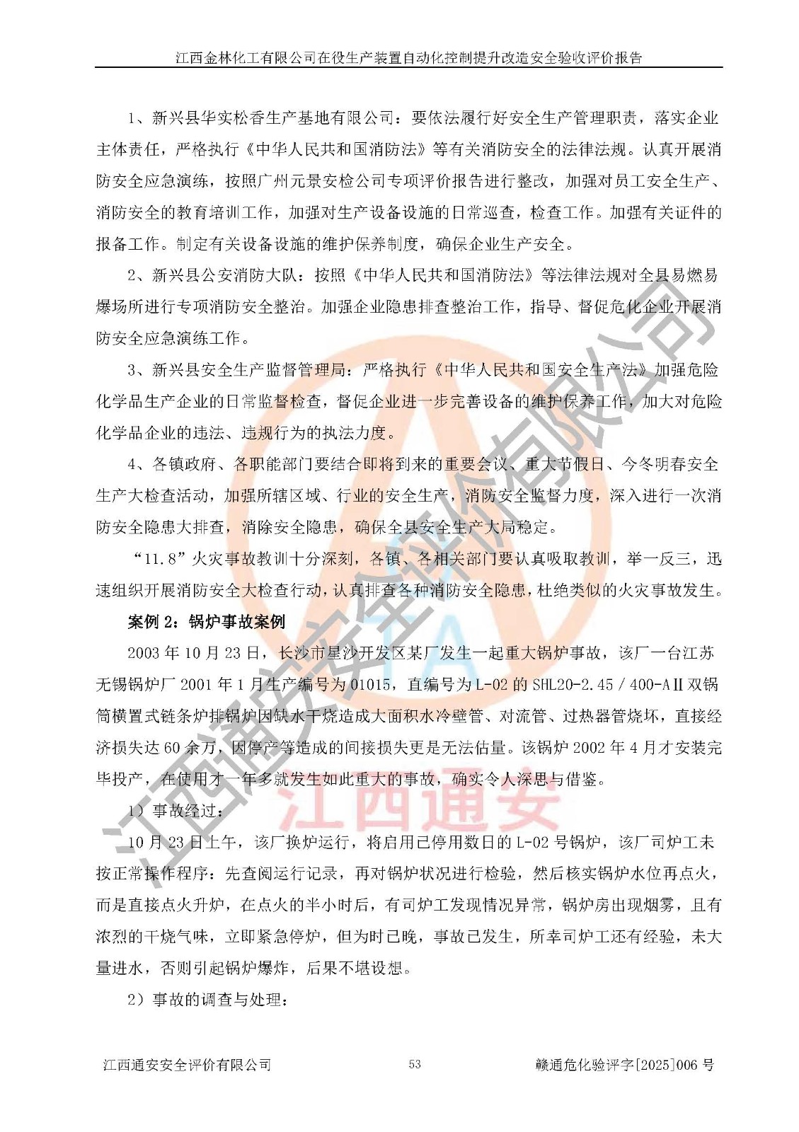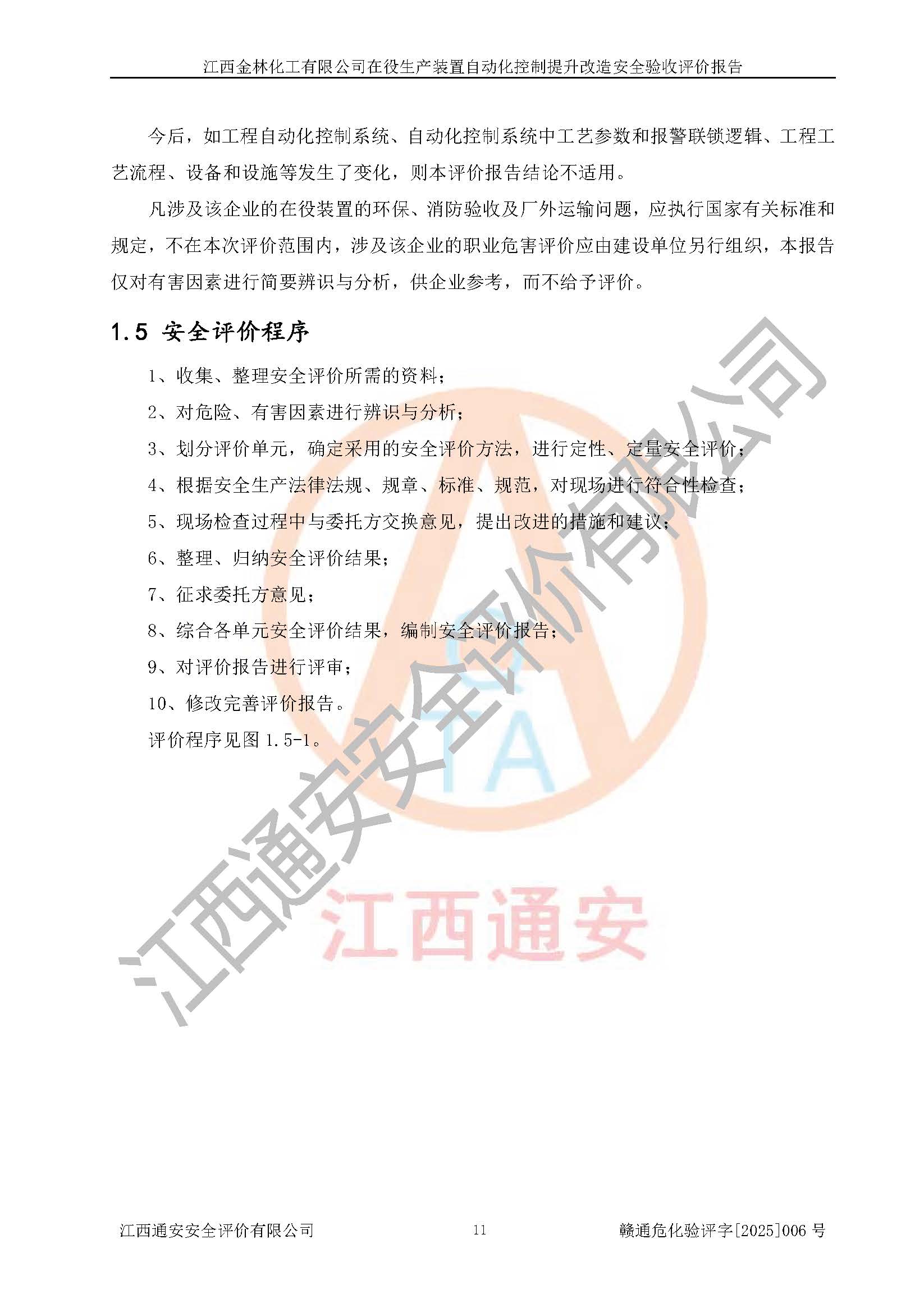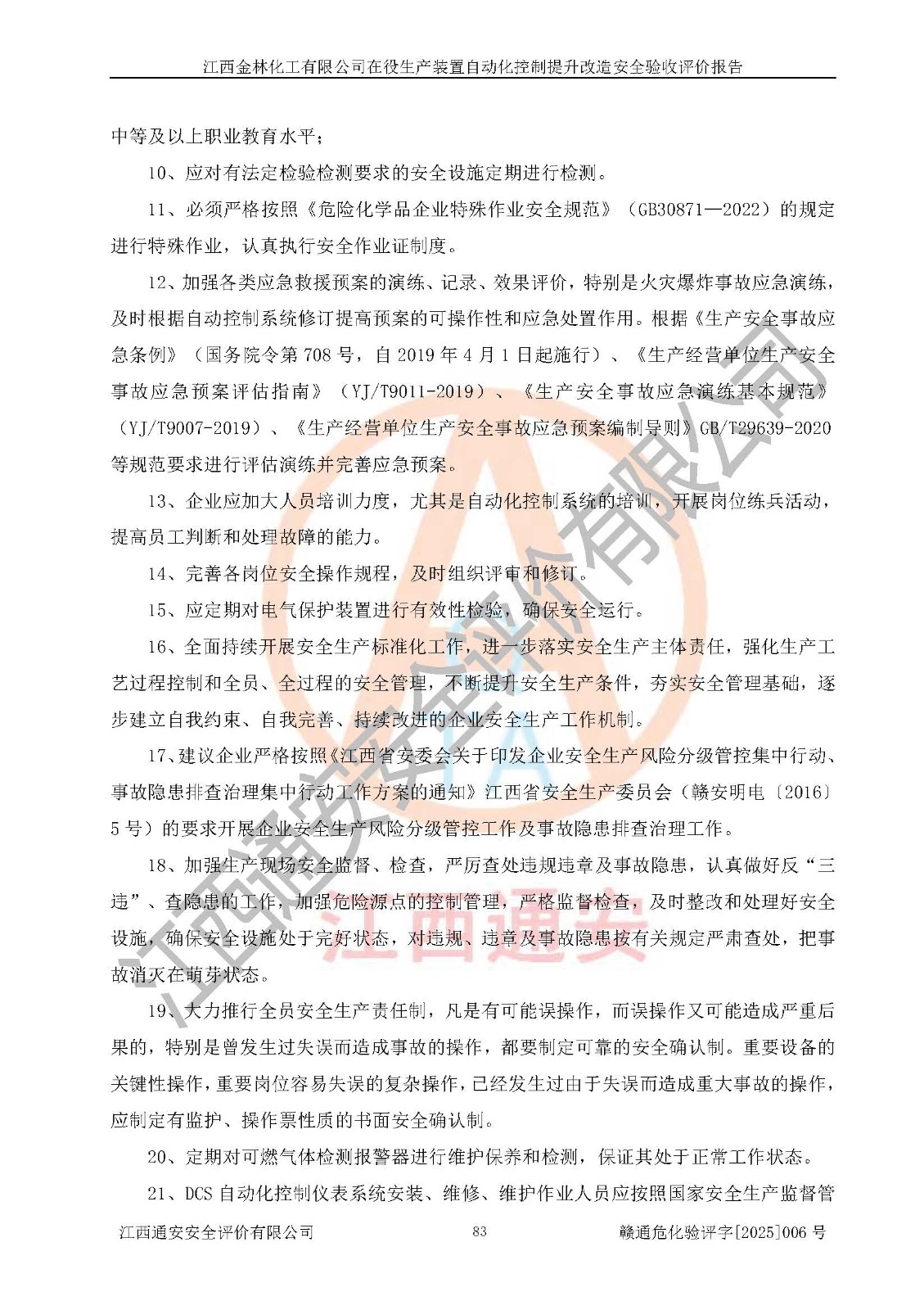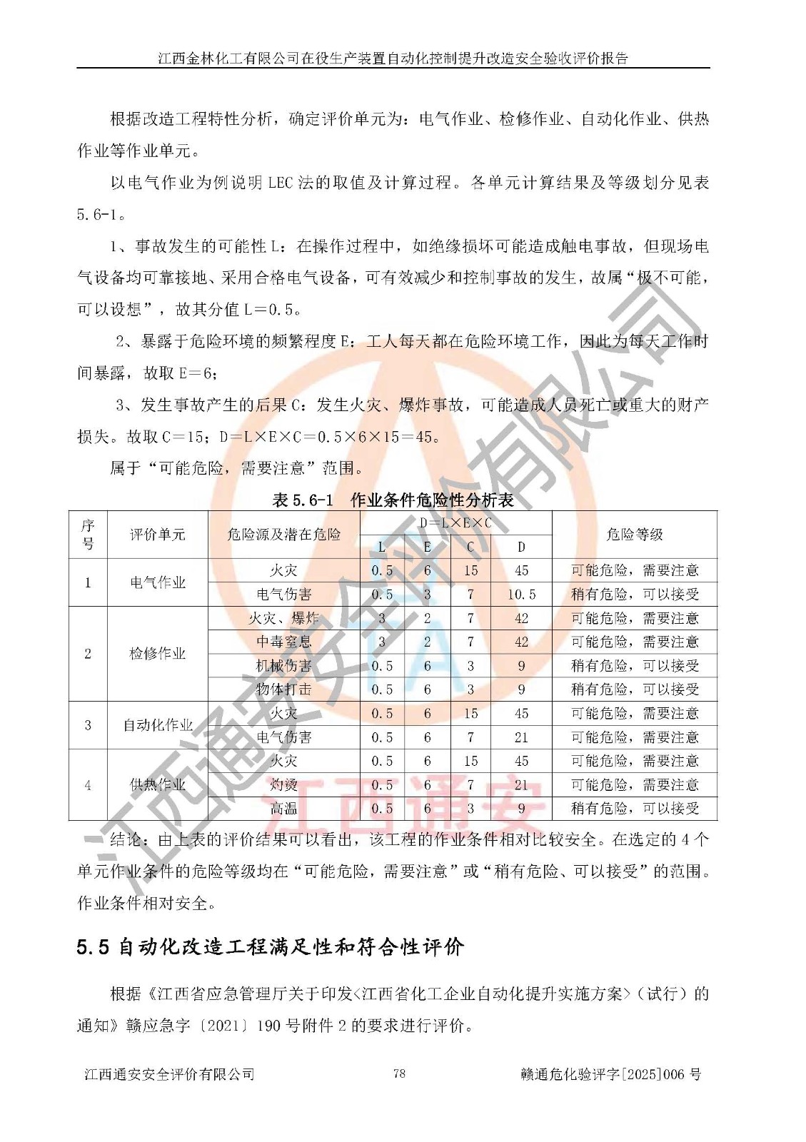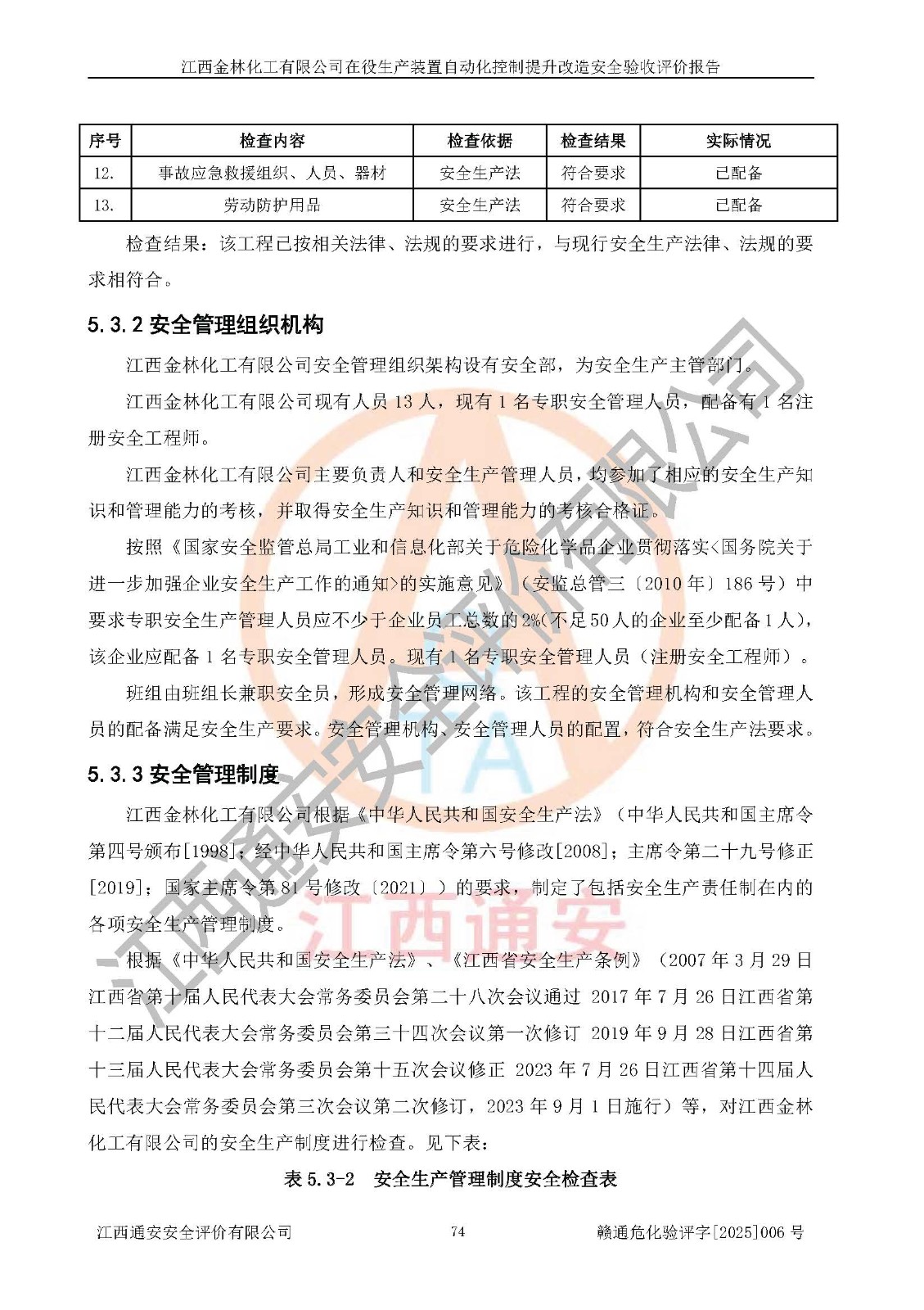 評(píng)價(jià)報(bào)告名稱 | 江西金林化工有限公司在役生產(chǎn)裝置自動(dòng)化控制提升改造安全驗(yàn)收評(píng)價(jià)報(bào)告 | |||