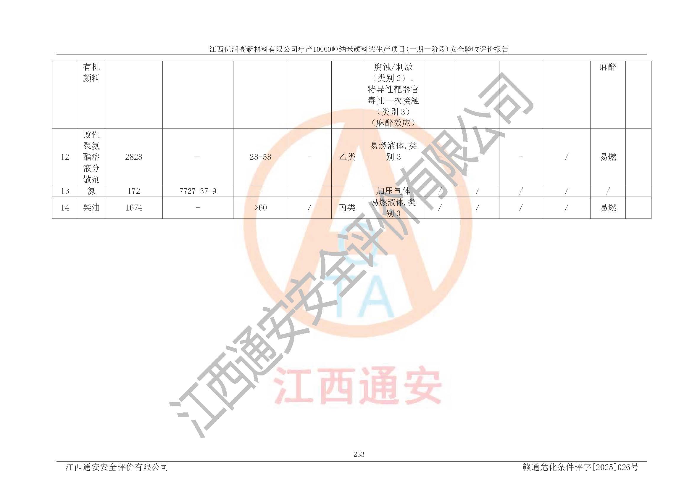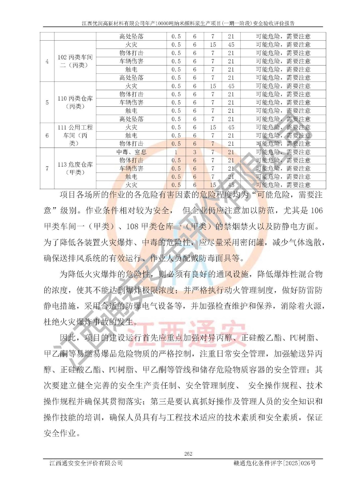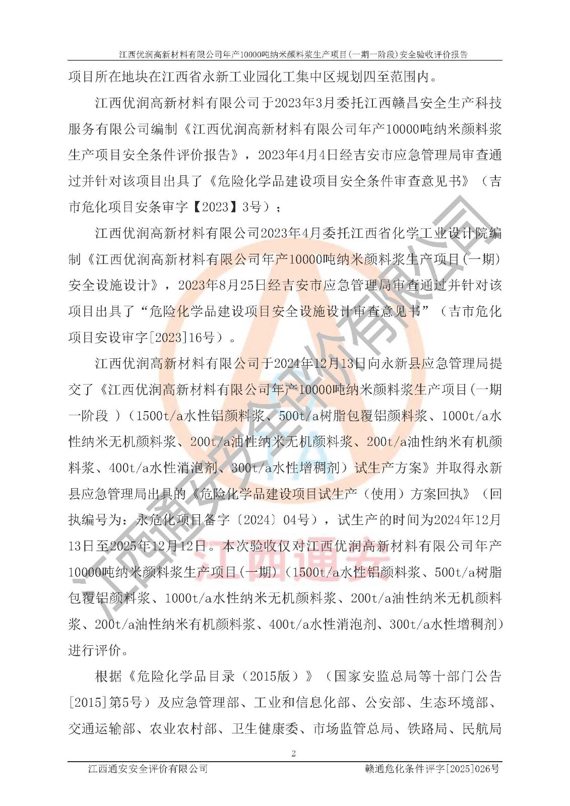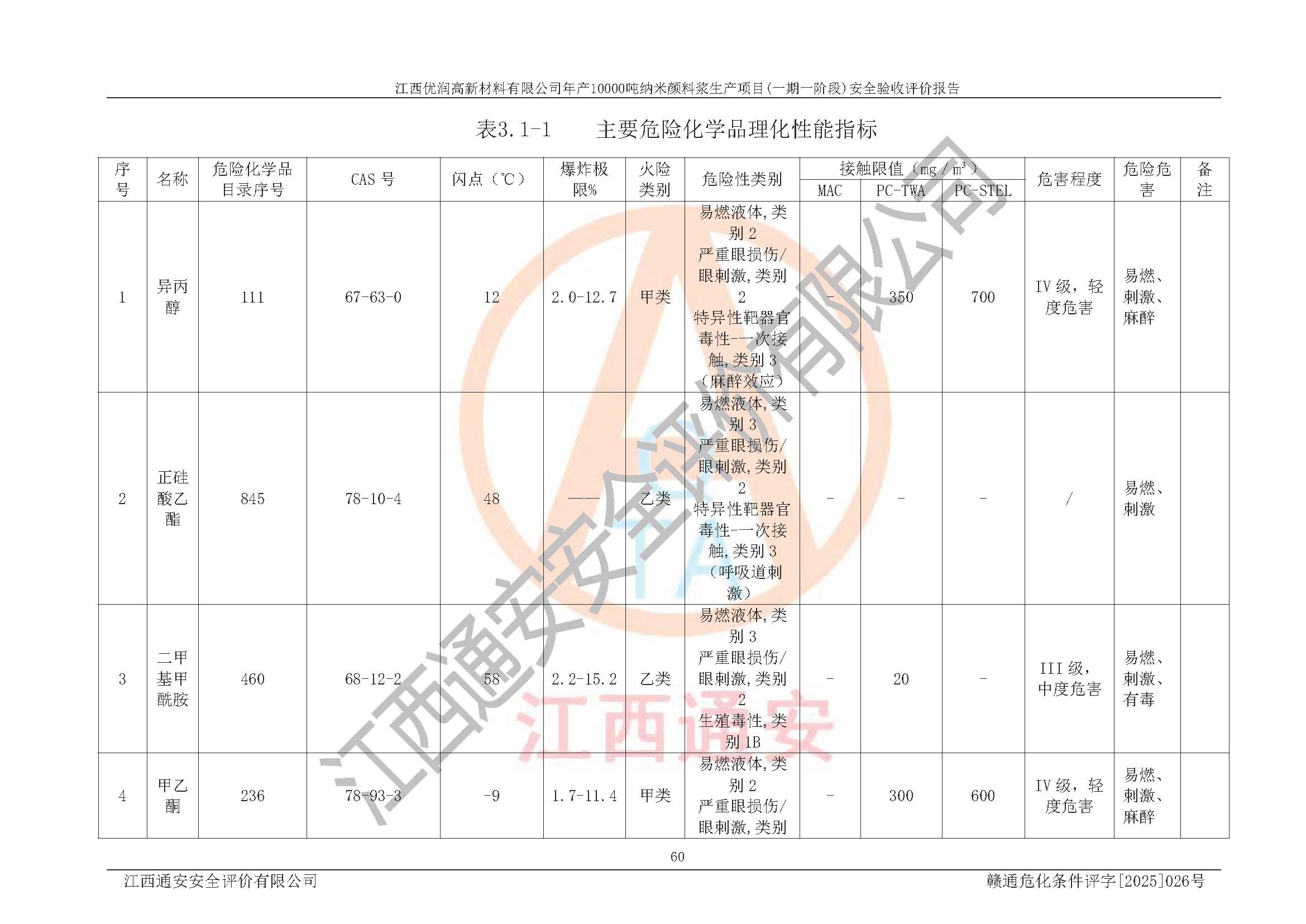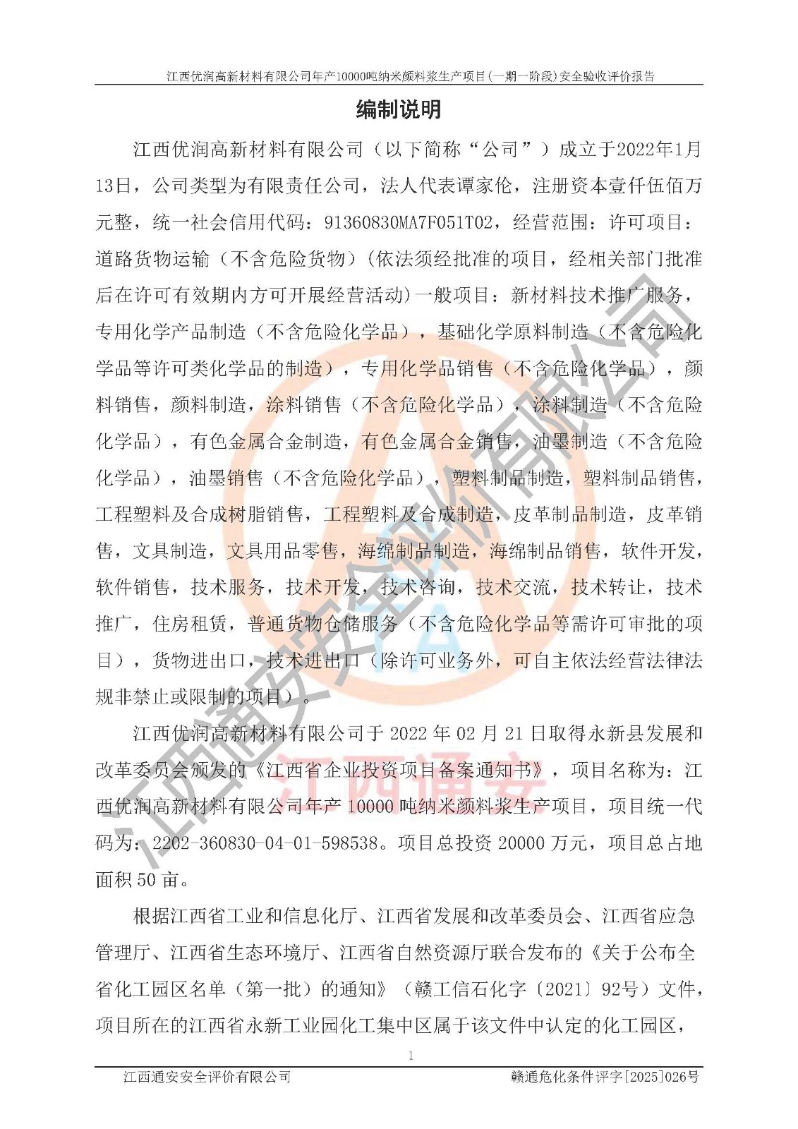 評(píng)價(jià)報(bào)告名稱(chēng) | 江西優(yōu)潤(rùn)高新材料有限公司年產(chǎn)10000噸納米顏料漿生產(chǎn)項(xiàng)目(一期一階段)安全驗(yàn)收評(píng)價(jià)報(bào)告 | |||