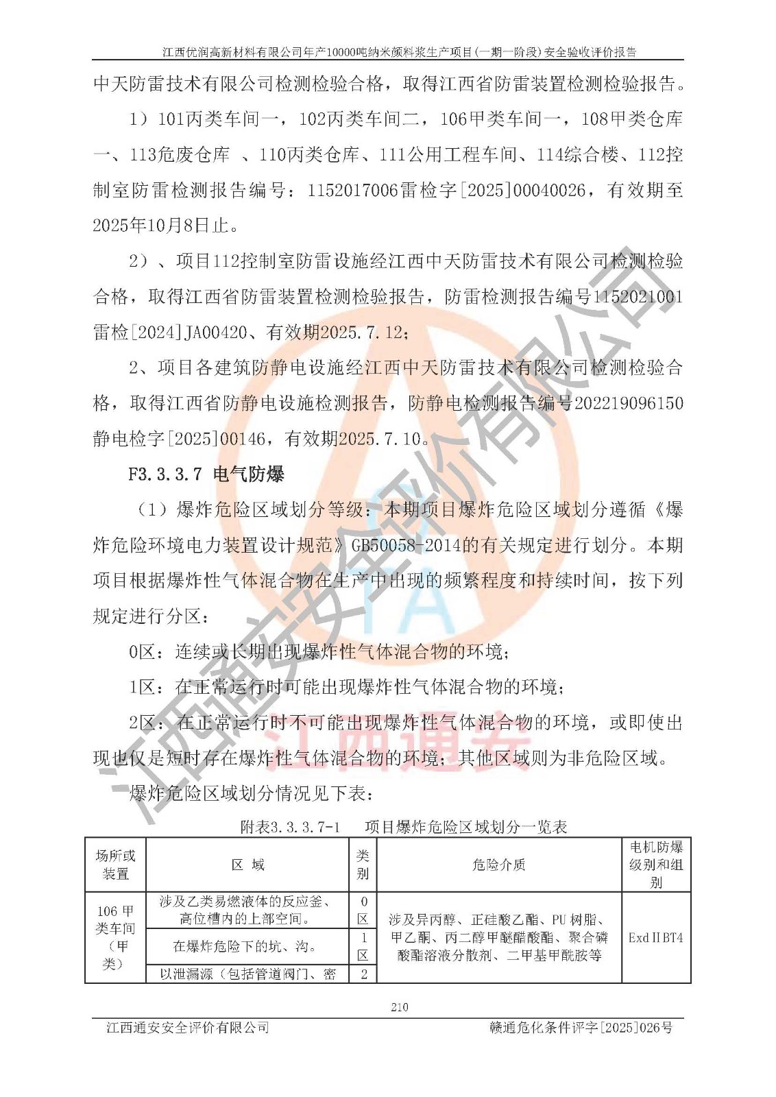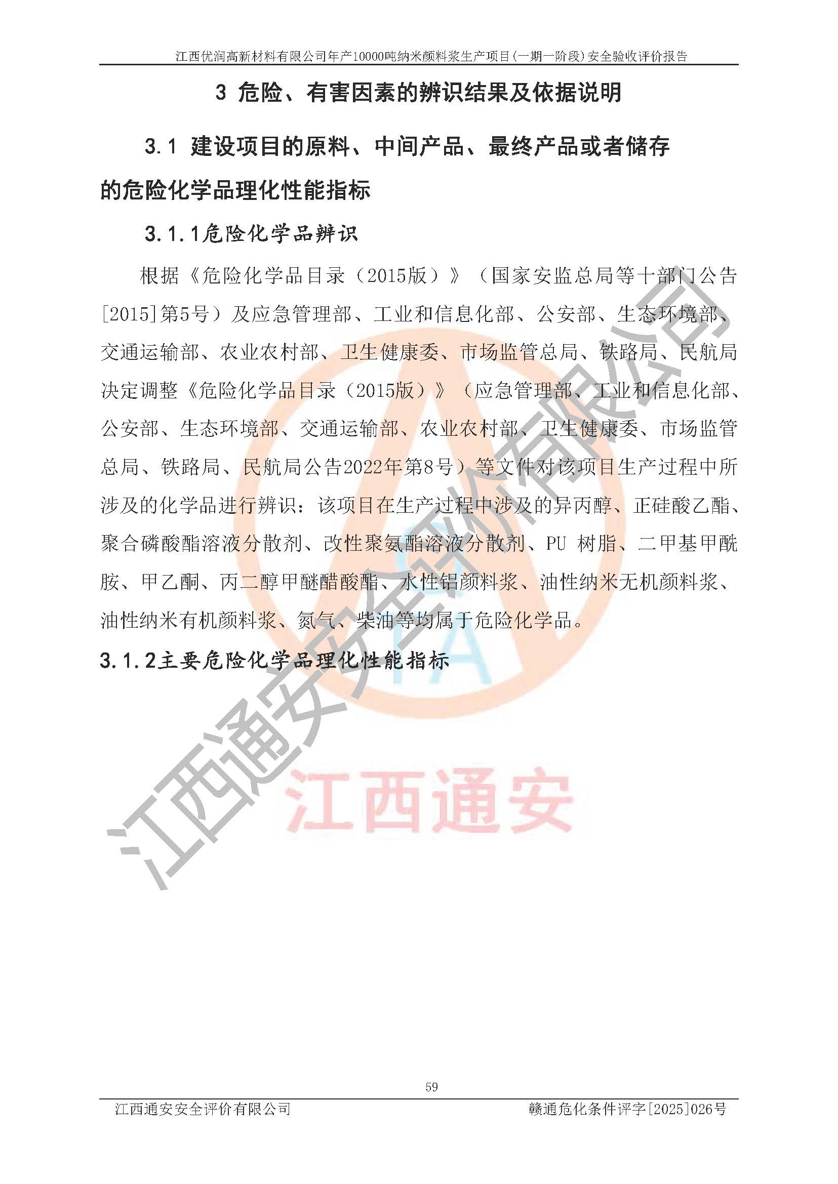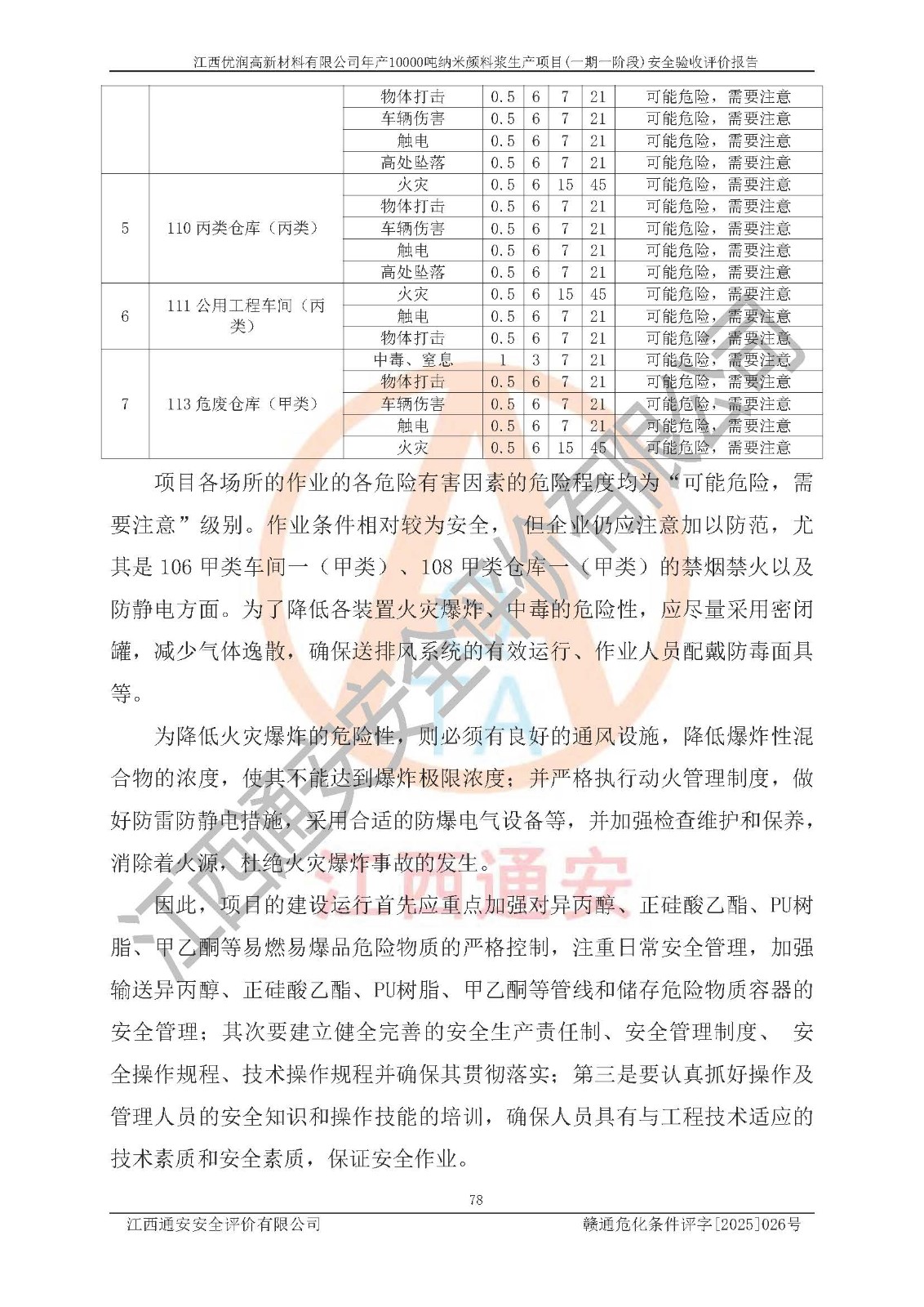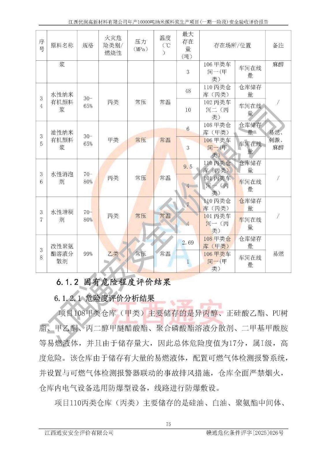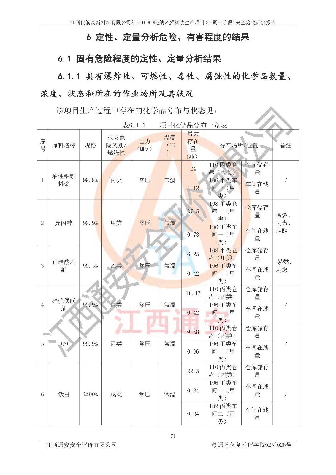 評(píng)價(jià)報(bào)告名稱(chēng) | 江西優(yōu)潤(rùn)高新材料有限公司年產(chǎn)10000噸納米顏料漿生產(chǎn)項(xiàng)目(一期一階段)安全驗(yàn)收評(píng)價(jià)報(bào)告 | |||