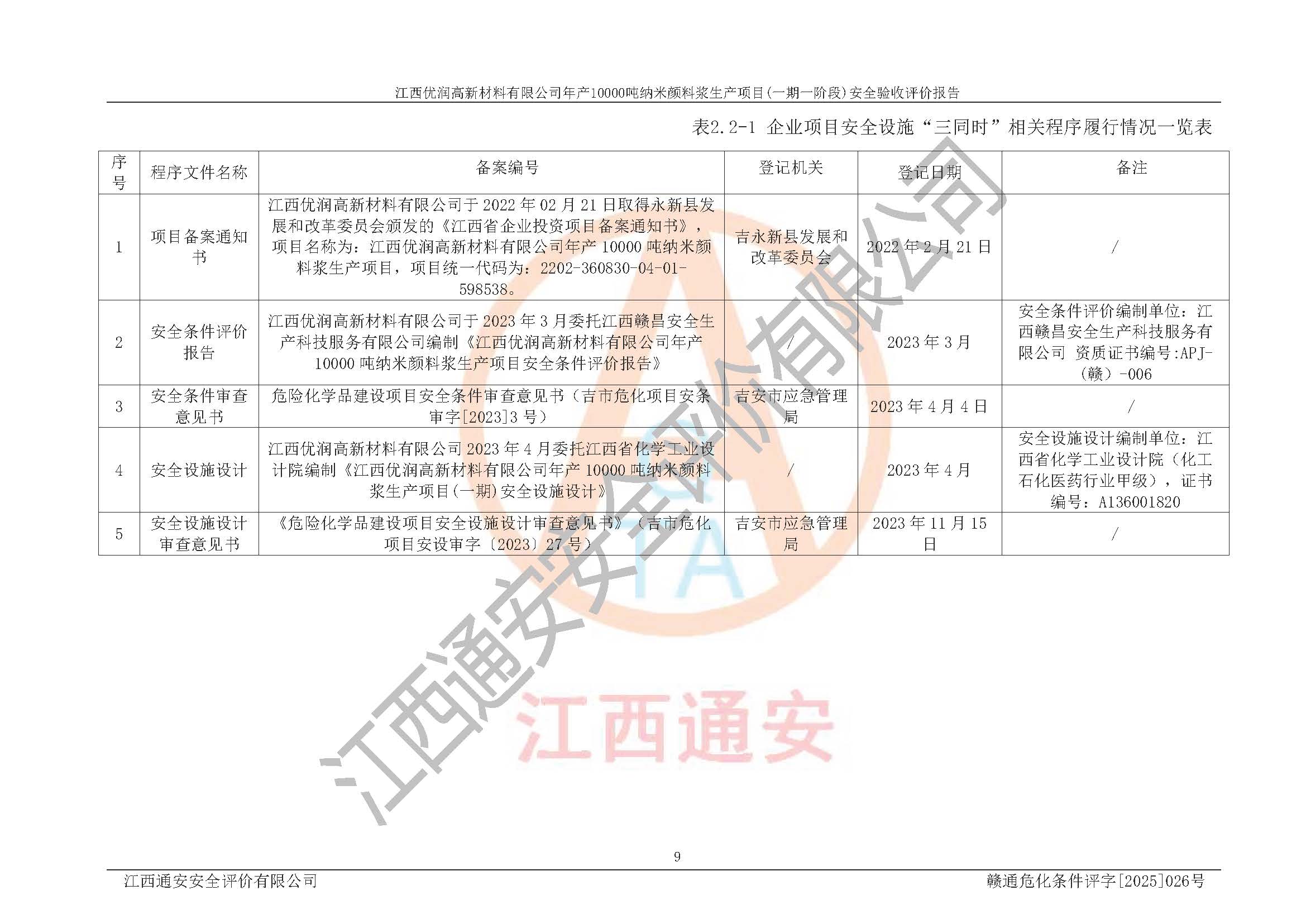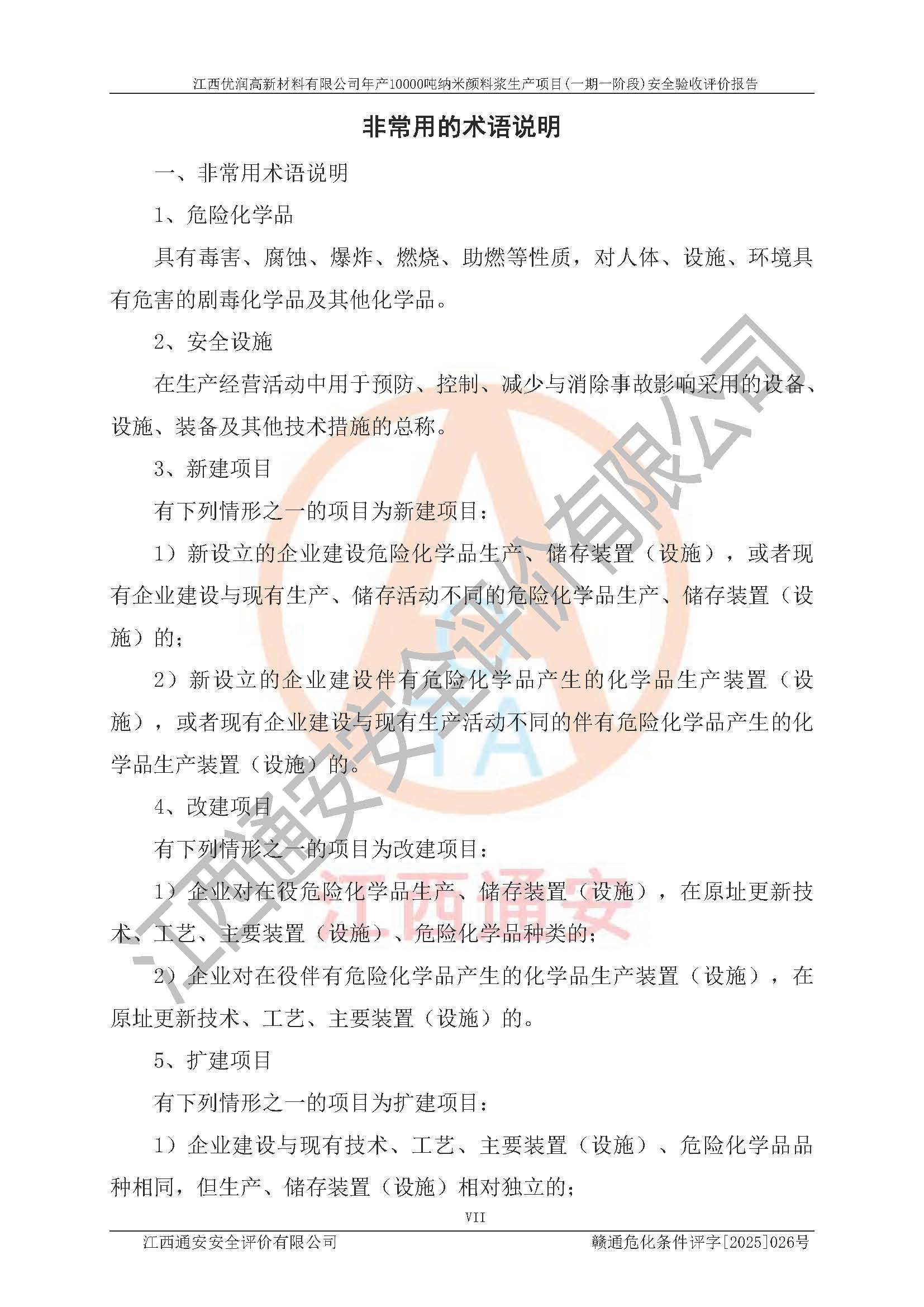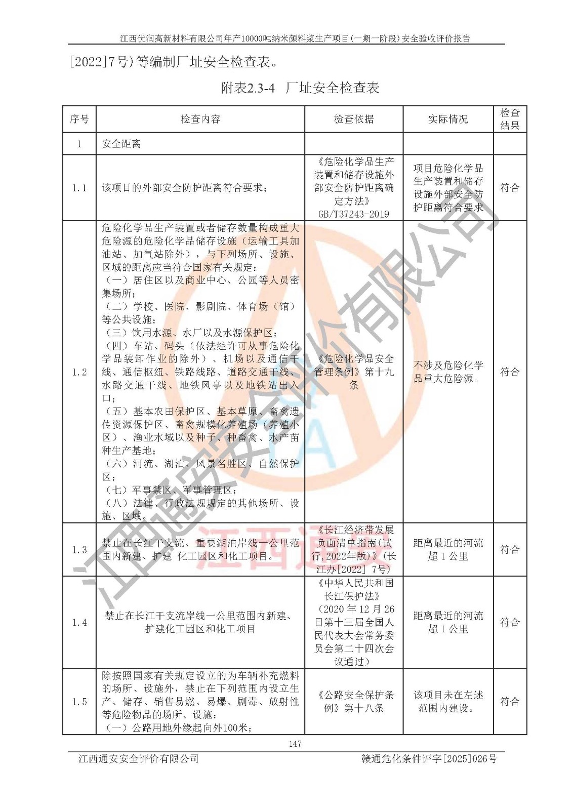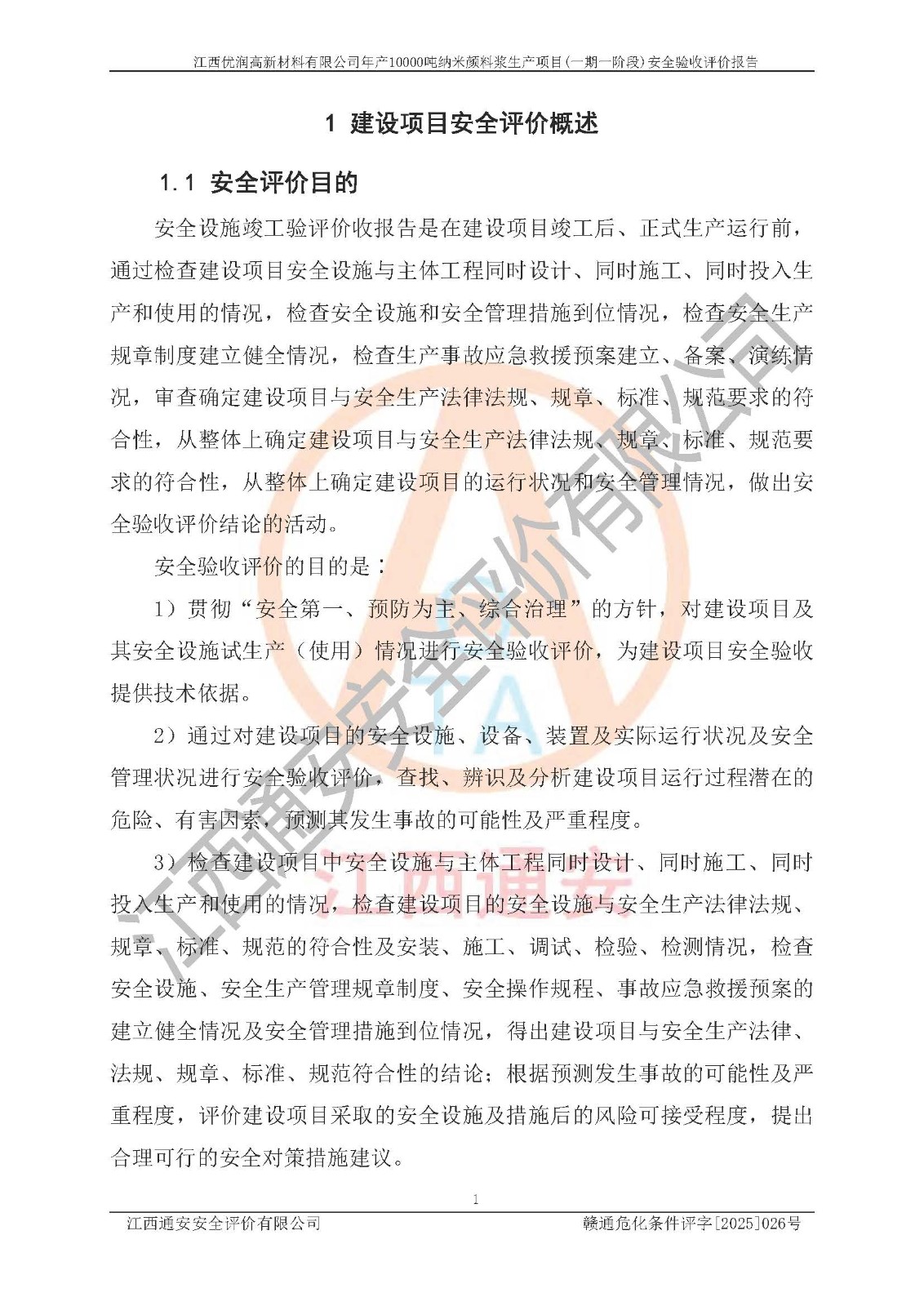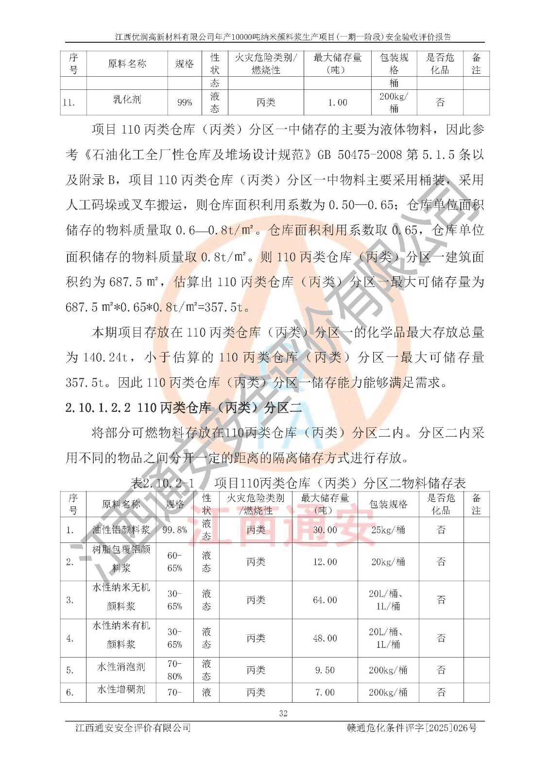評(píng)價(jià)報(bào)告名稱(chēng) | 江西優(yōu)潤(rùn)高新材料有限公司年產(chǎn)10000噸納米顏料漿生產(chǎn)項(xiàng)目(一期一階段)安全驗(yàn)收評(píng)價(jià)報(bào)告 | |||