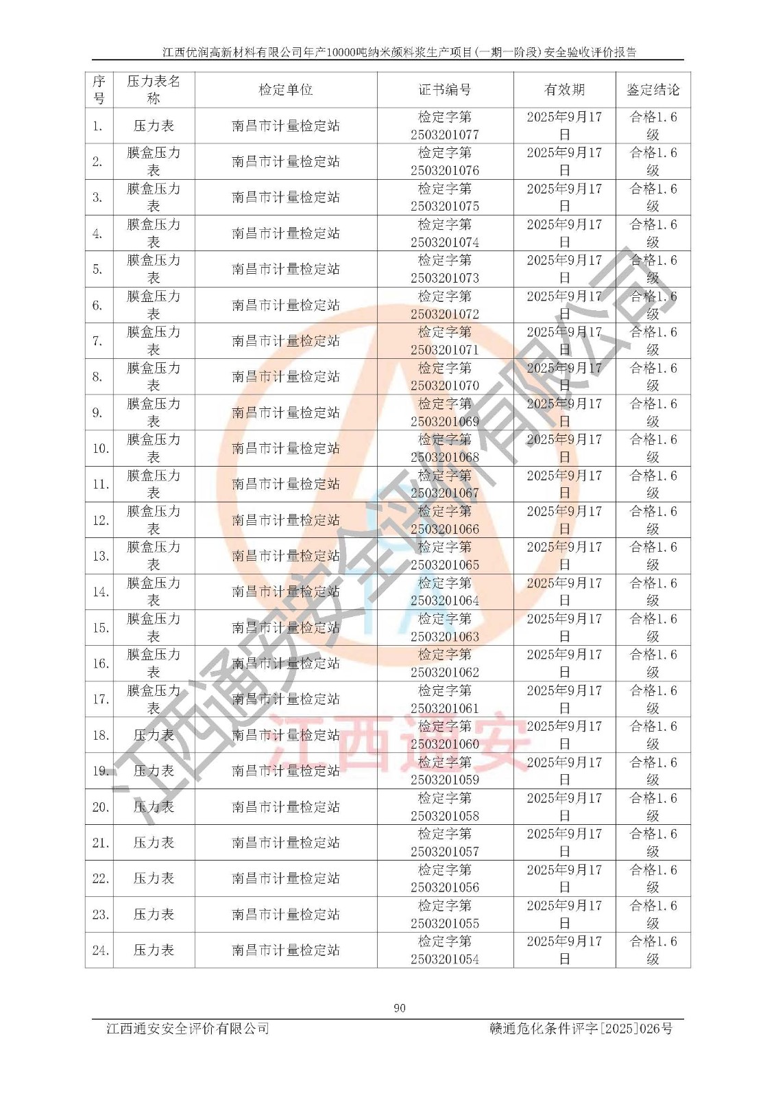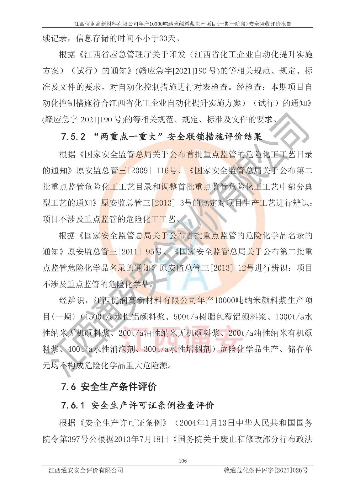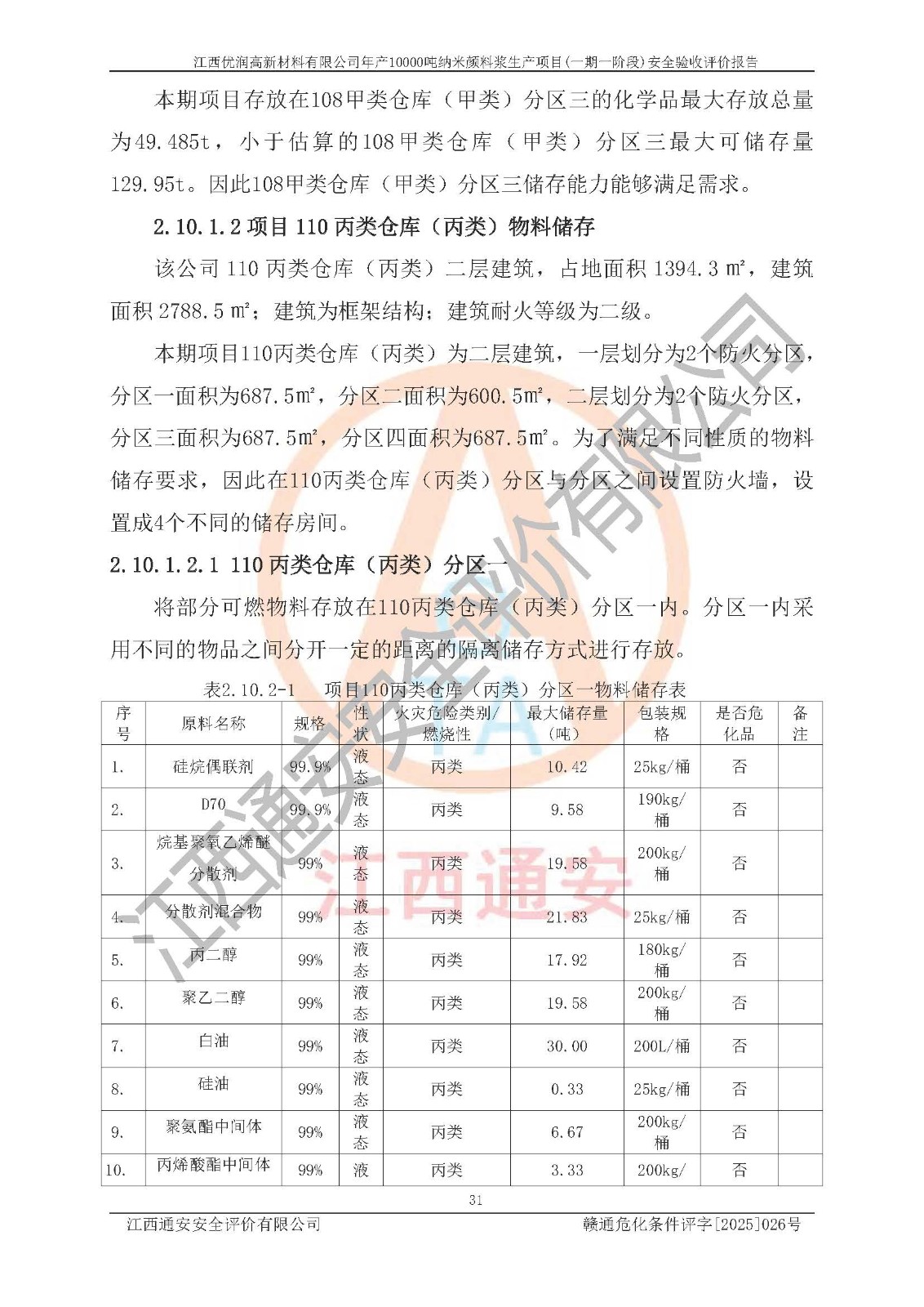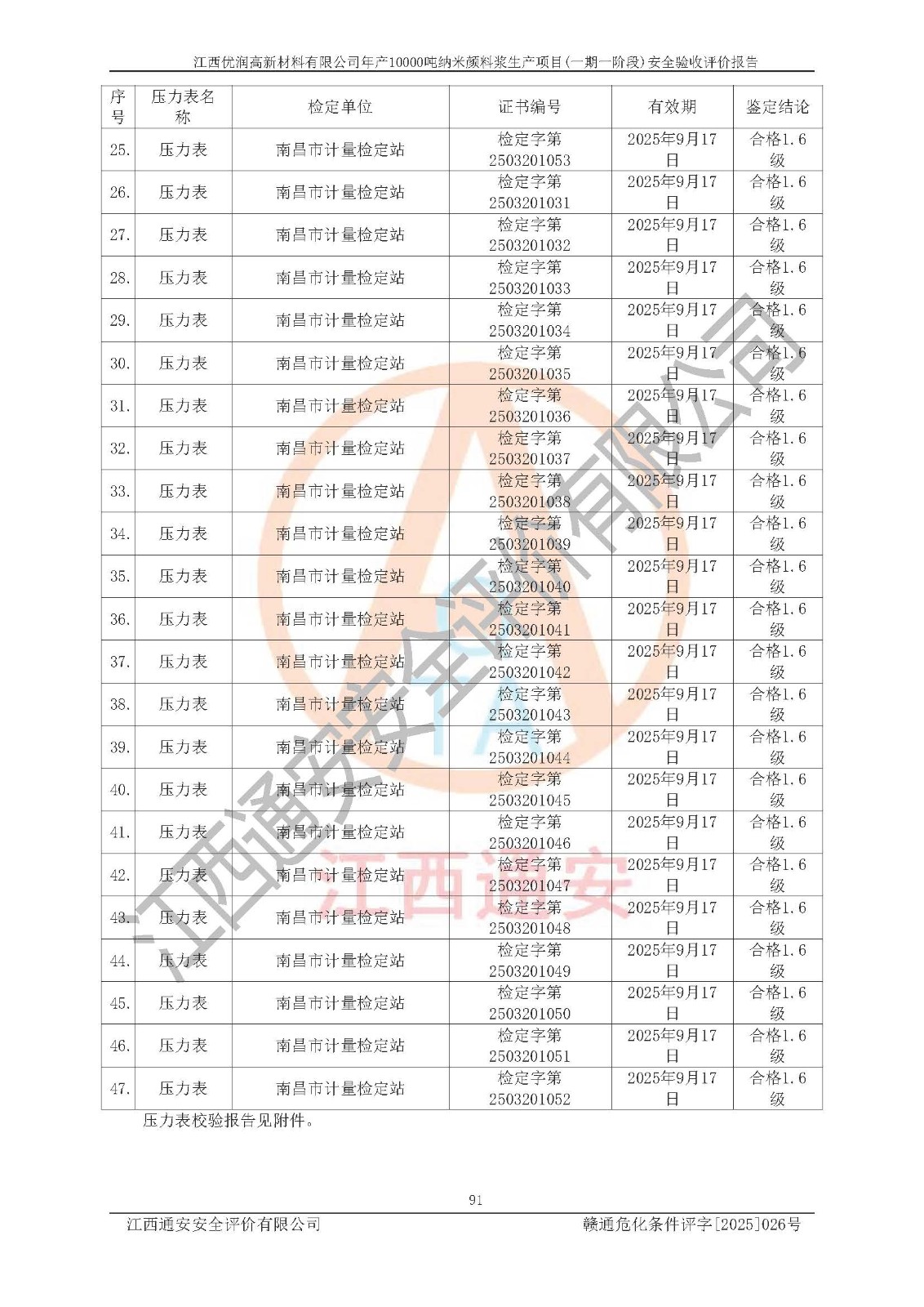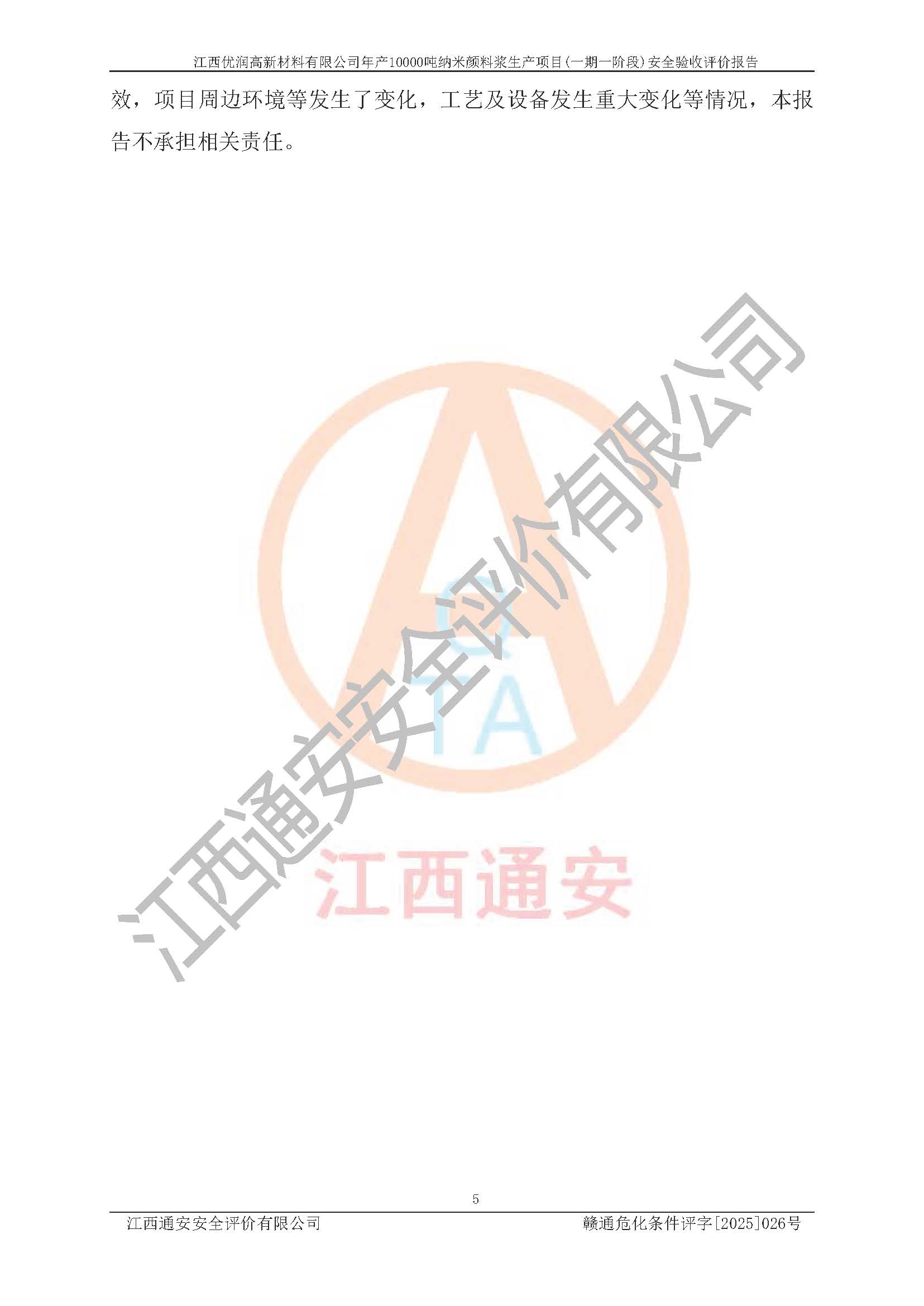 評(píng)價(jià)報(bào)告名稱(chēng) | 江西優(yōu)潤(rùn)高新材料有限公司年產(chǎn)10000噸納米顏料漿生產(chǎn)項(xiàng)目(一期一階段)安全驗(yàn)收評(píng)價(jià)報(bào)告 | |||