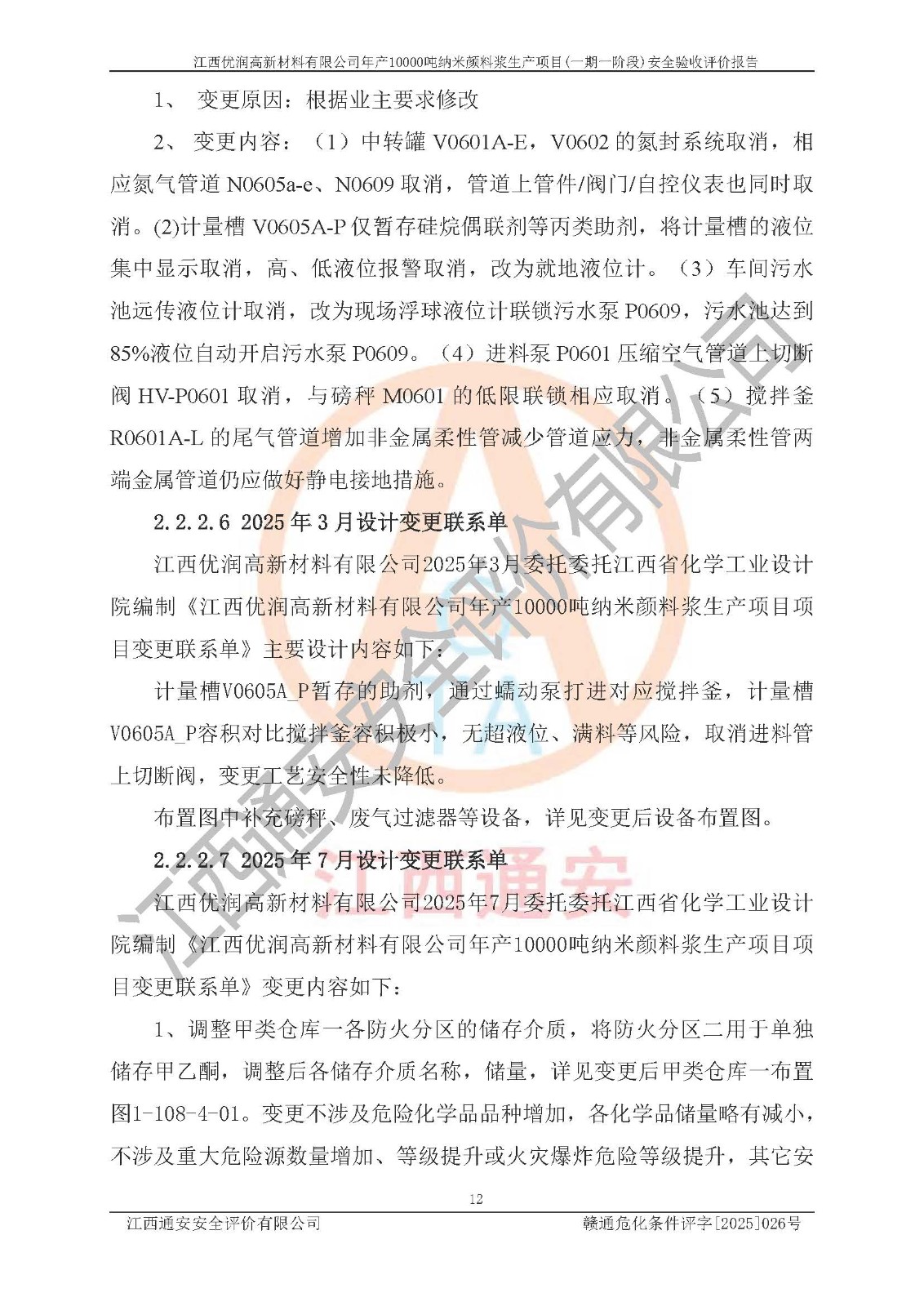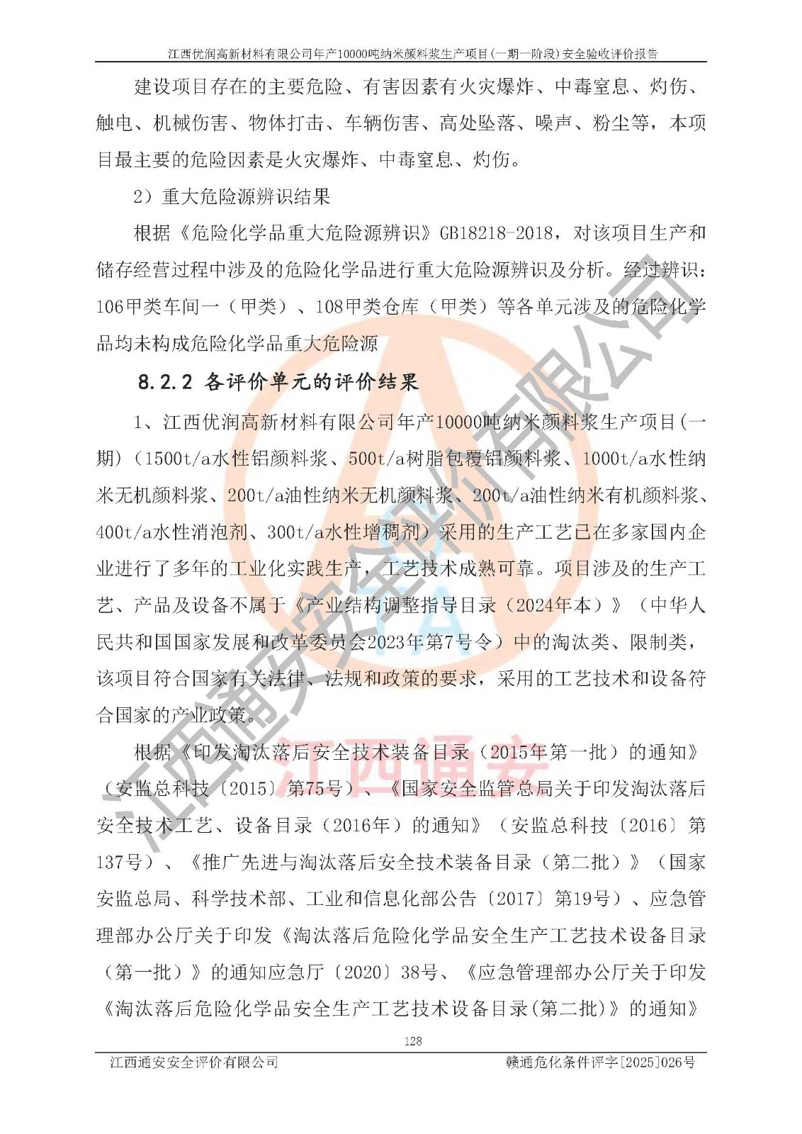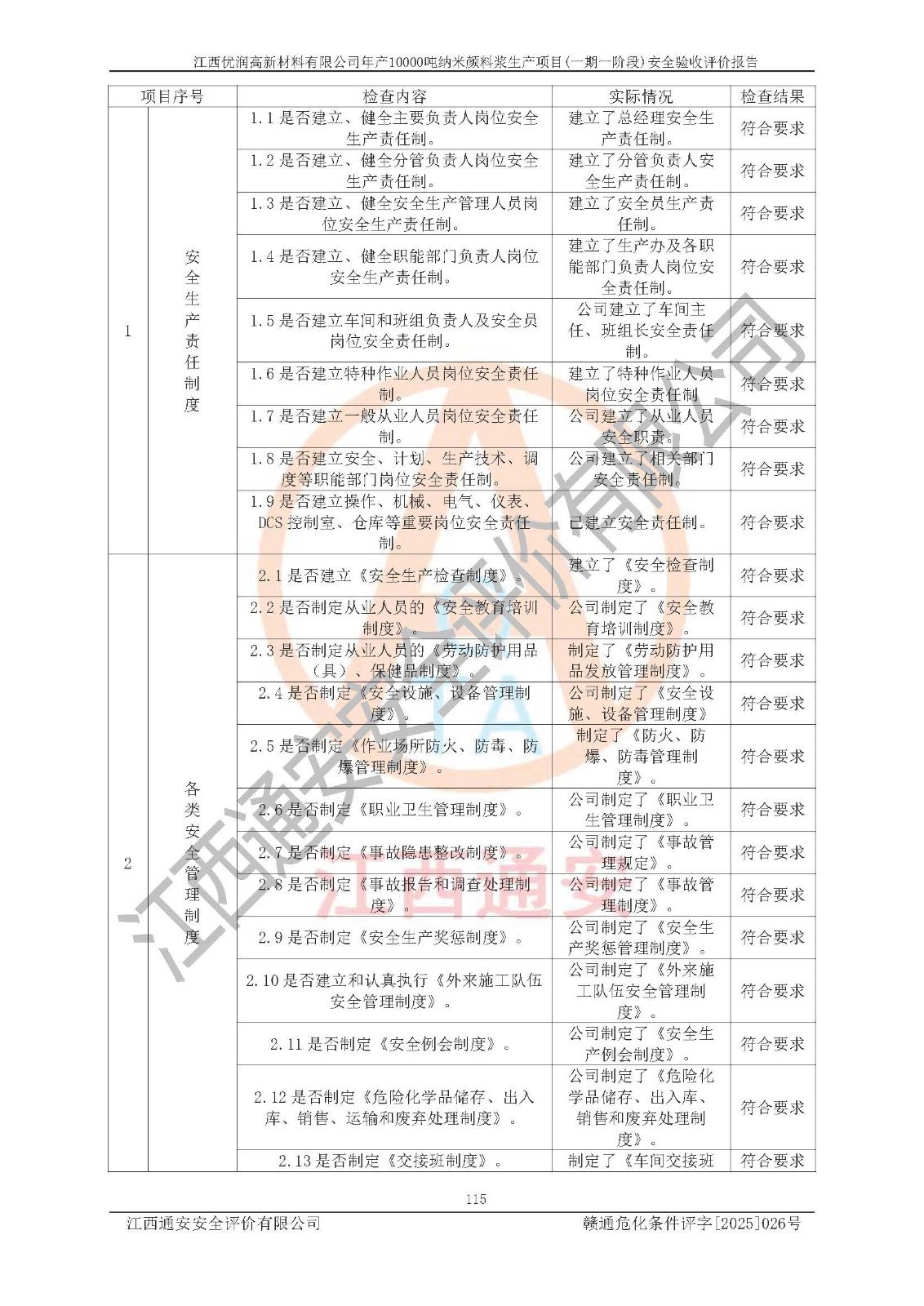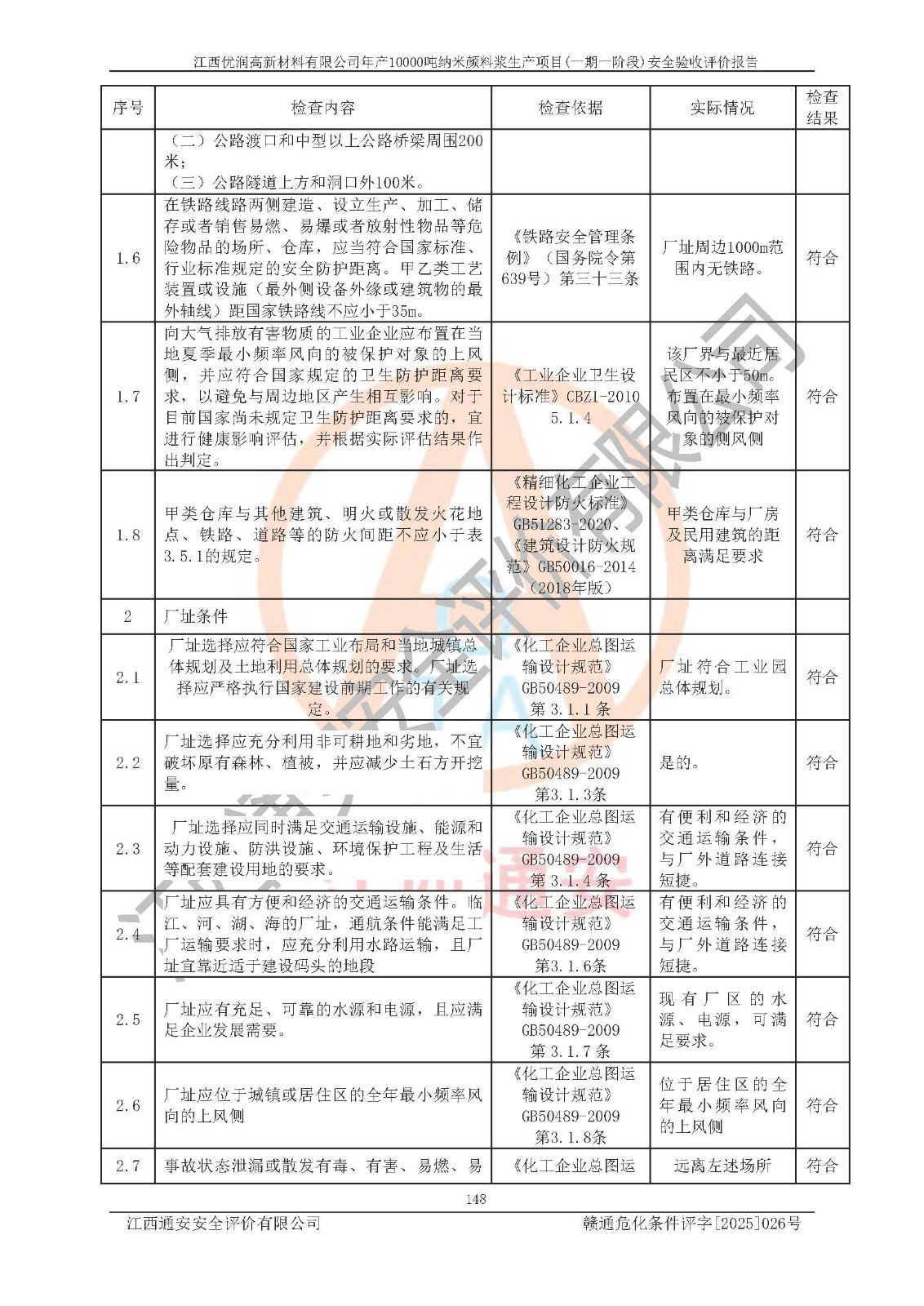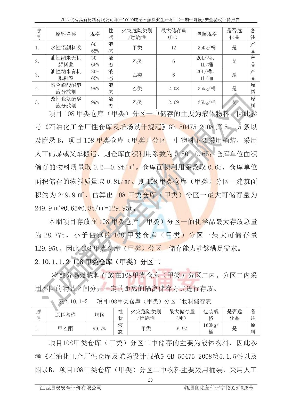 評(píng)價(jià)報(bào)告名稱(chēng) | 江西優(yōu)潤(rùn)高新材料有限公司年產(chǎn)10000噸納米顏料漿生產(chǎn)項(xiàng)目(一期一階段)安全驗(yàn)收評(píng)價(jià)報(bào)告 | |||