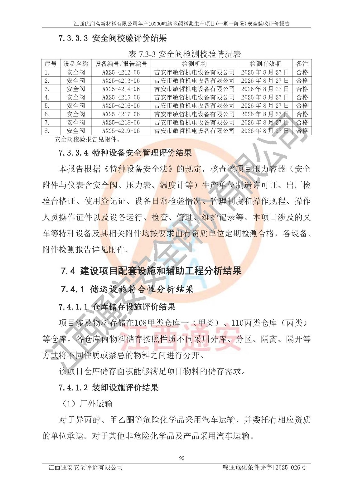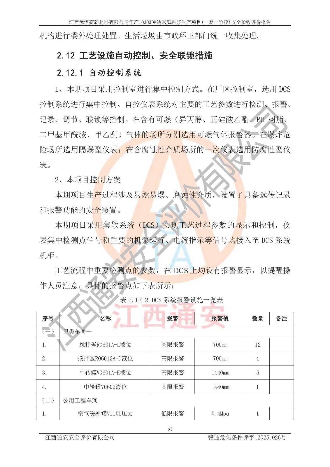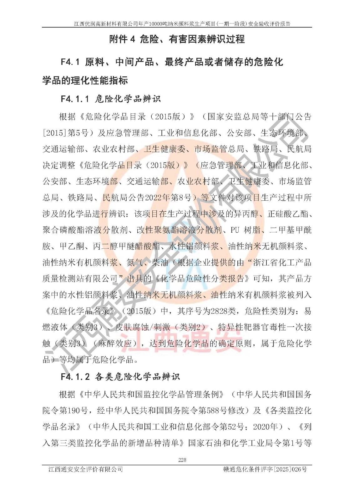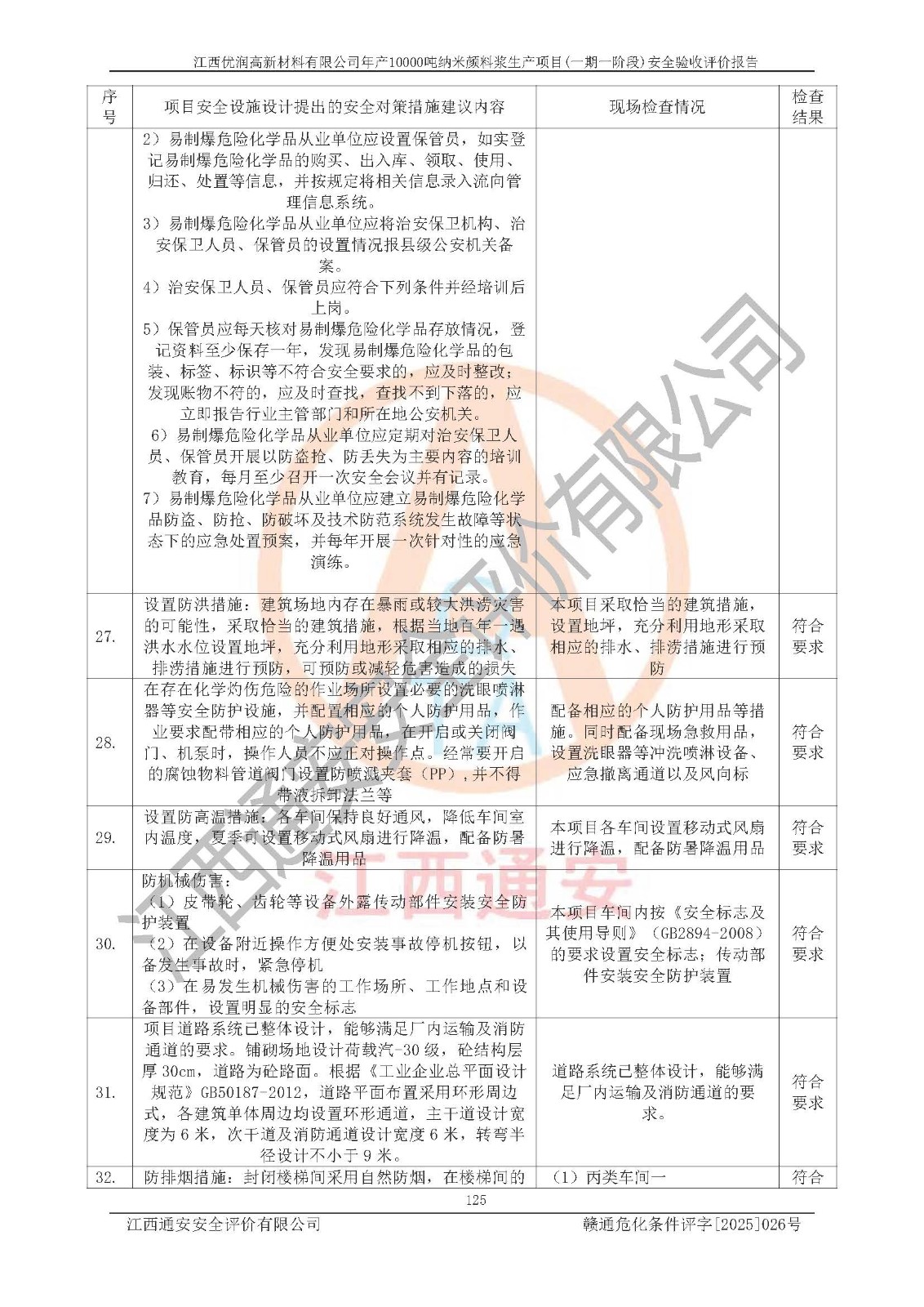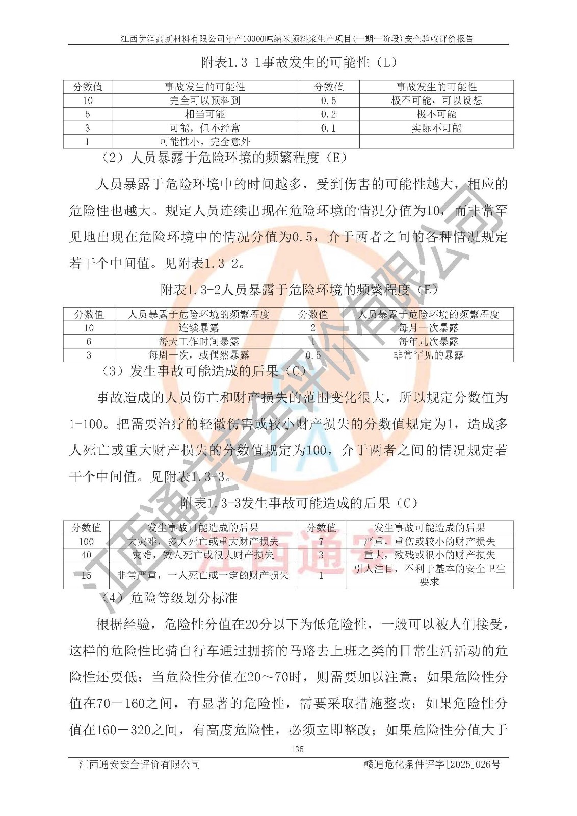 評(píng)價(jià)報(bào)告名稱(chēng) | 江西優(yōu)潤(rùn)高新材料有限公司年產(chǎn)10000噸納米顏料漿生產(chǎn)項(xiàng)目(一期一階段)安全驗(yàn)收評(píng)價(jià)報(bào)告 | |||