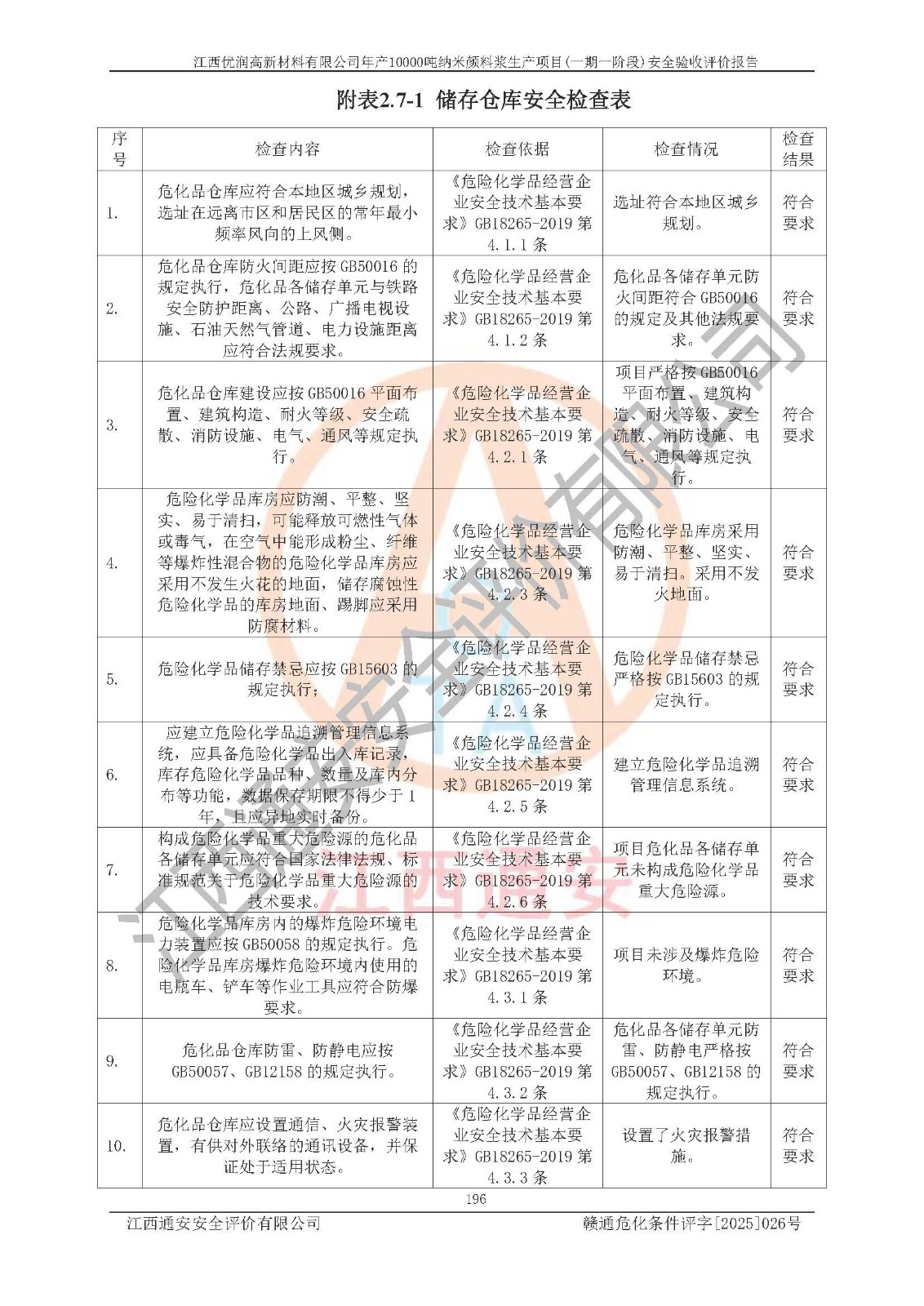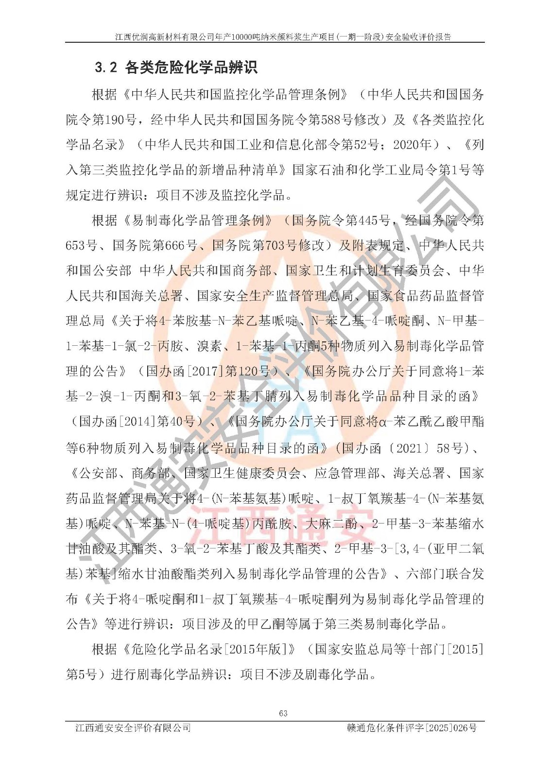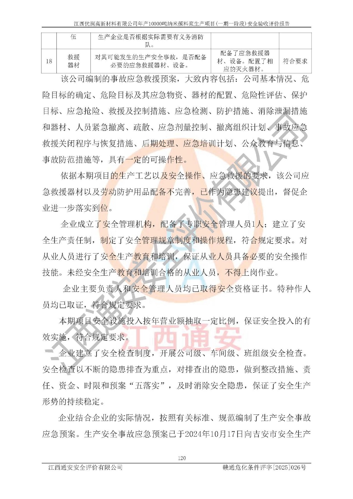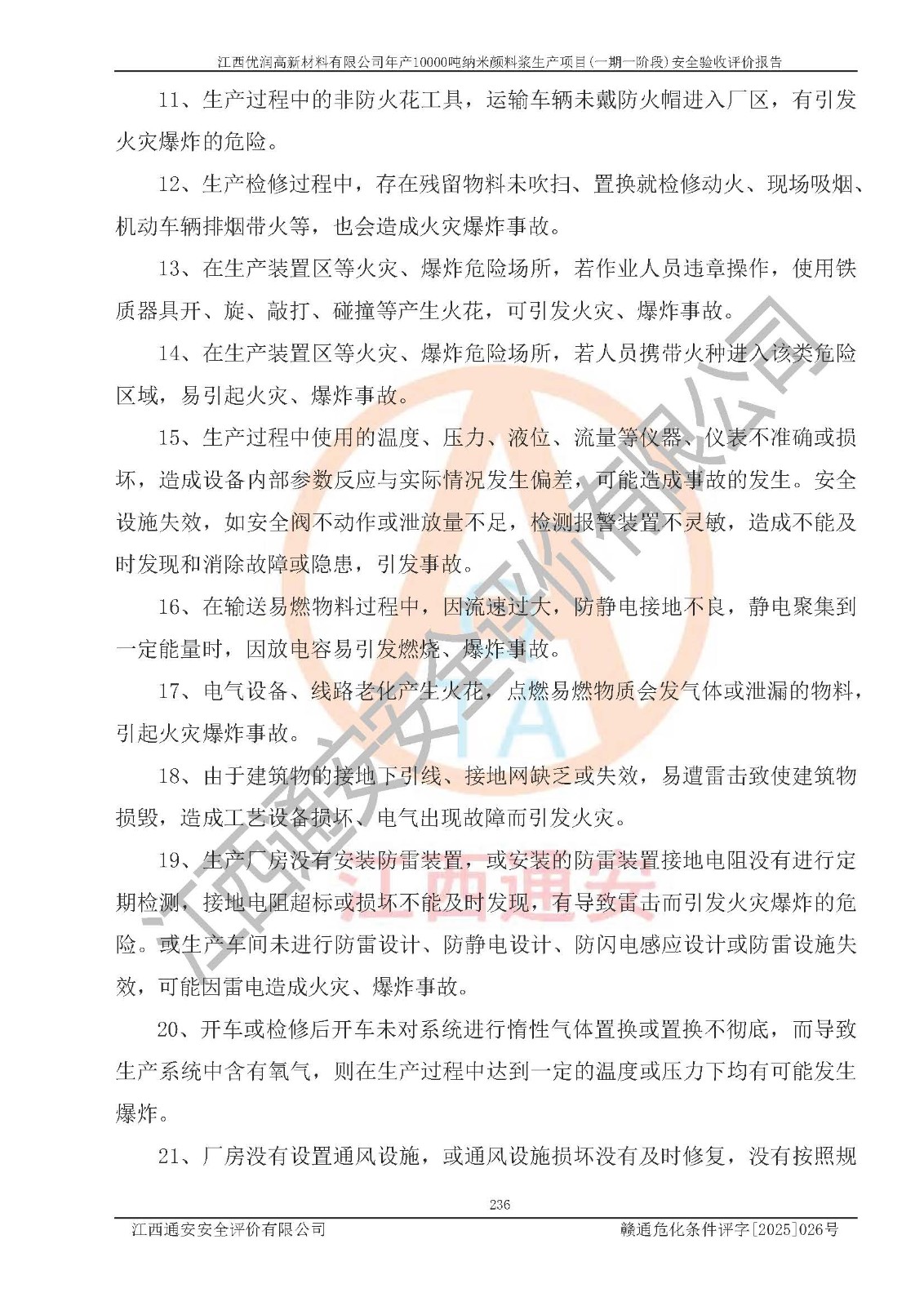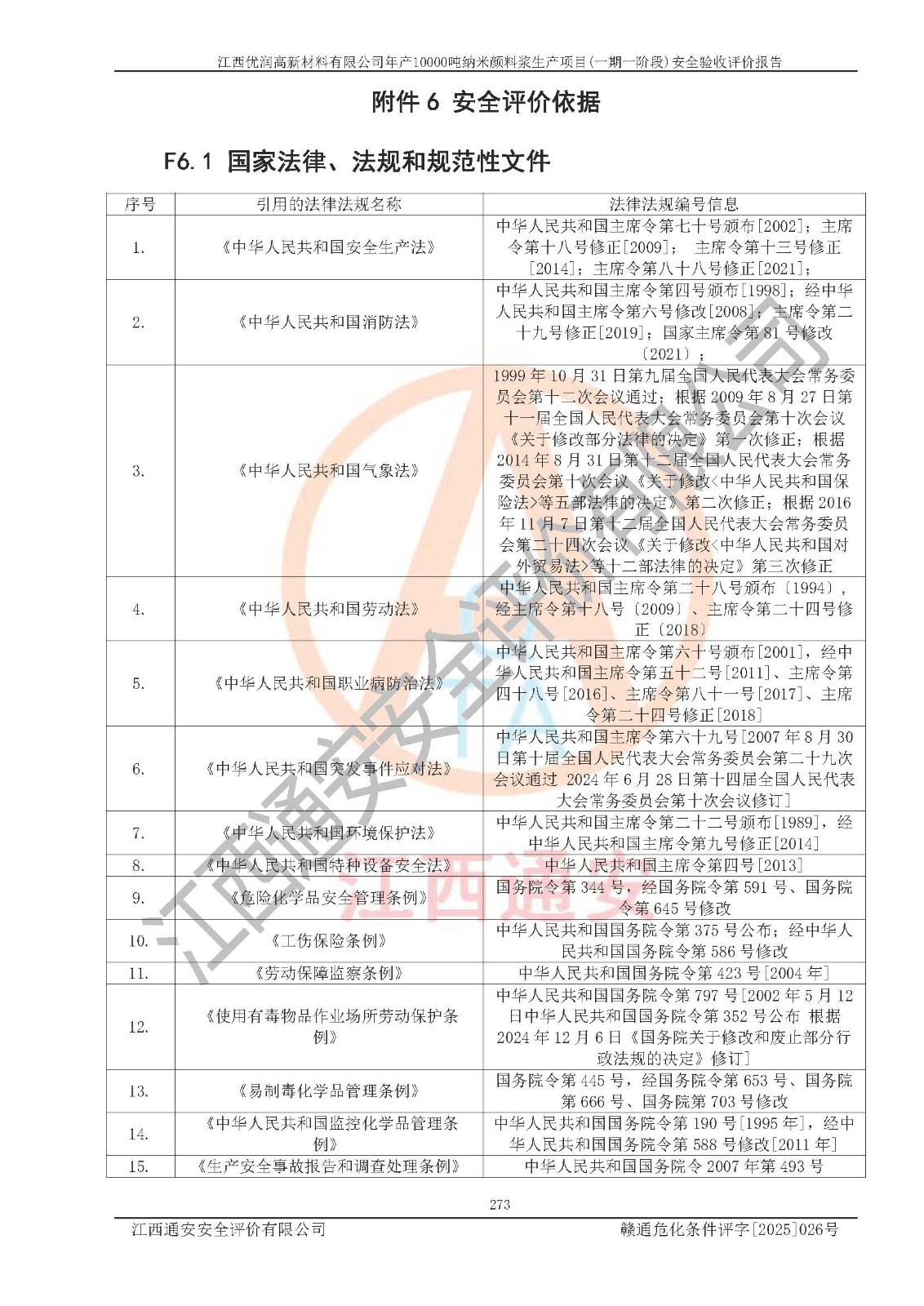 評(píng)價(jià)報(bào)告名稱(chēng) | 江西優(yōu)潤(rùn)高新材料有限公司年產(chǎn)10000噸納米顏料漿生產(chǎn)項(xiàng)目(一期一階段)安全驗(yàn)收評(píng)價(jià)報(bào)告 | |||