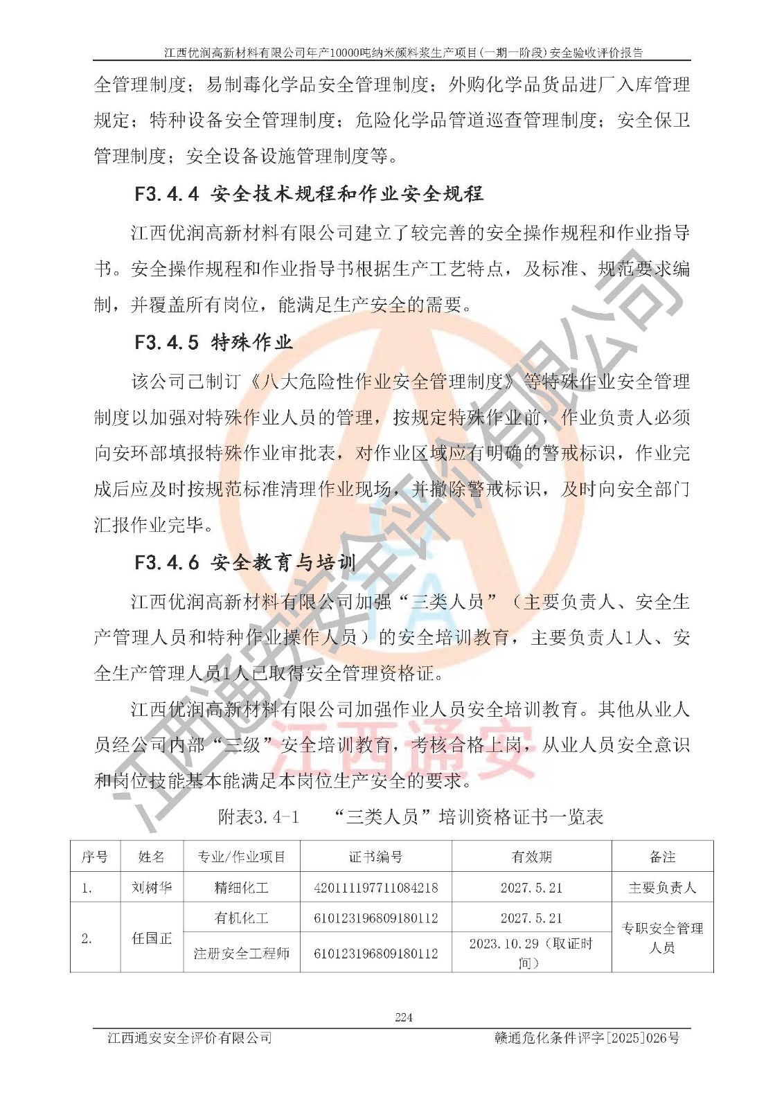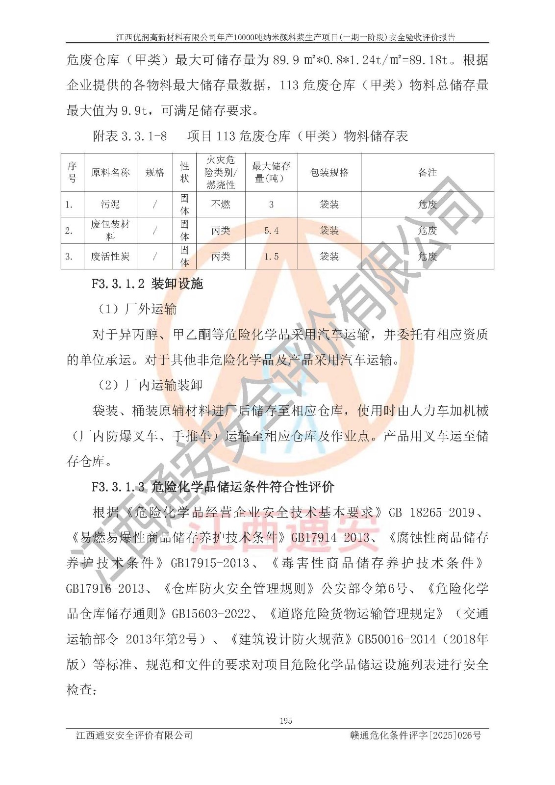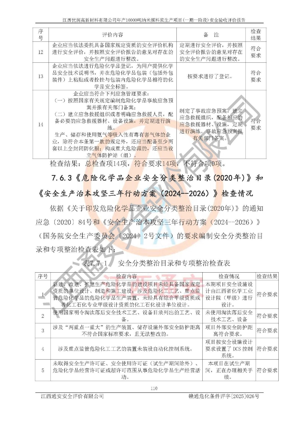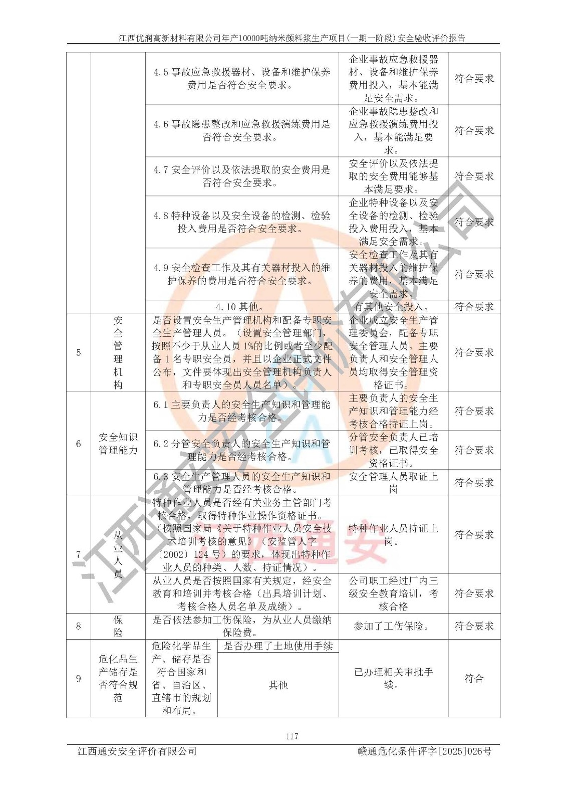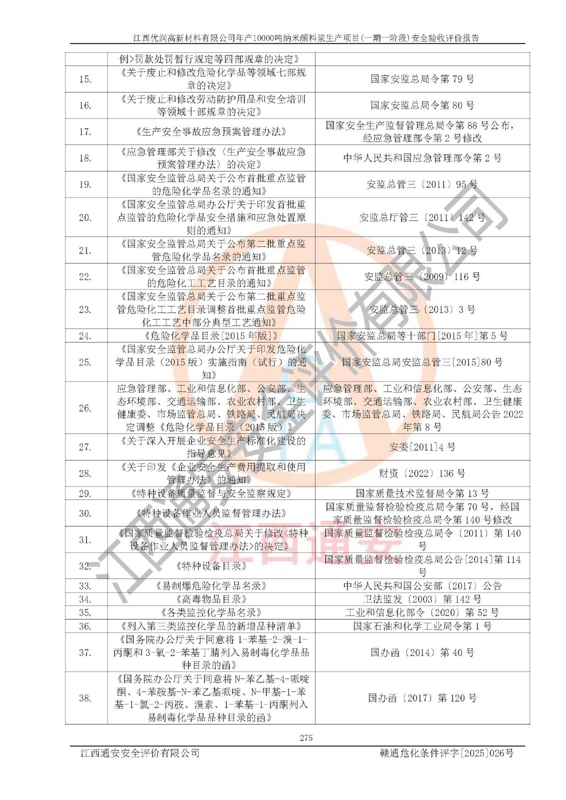 評(píng)價(jià)報(bào)告名稱(chēng) | 江西優(yōu)潤(rùn)高新材料有限公司年產(chǎn)10000噸納米顏料漿生產(chǎn)項(xiàng)目(一期一階段)安全驗(yàn)收評(píng)價(jià)報(bào)告 | |||