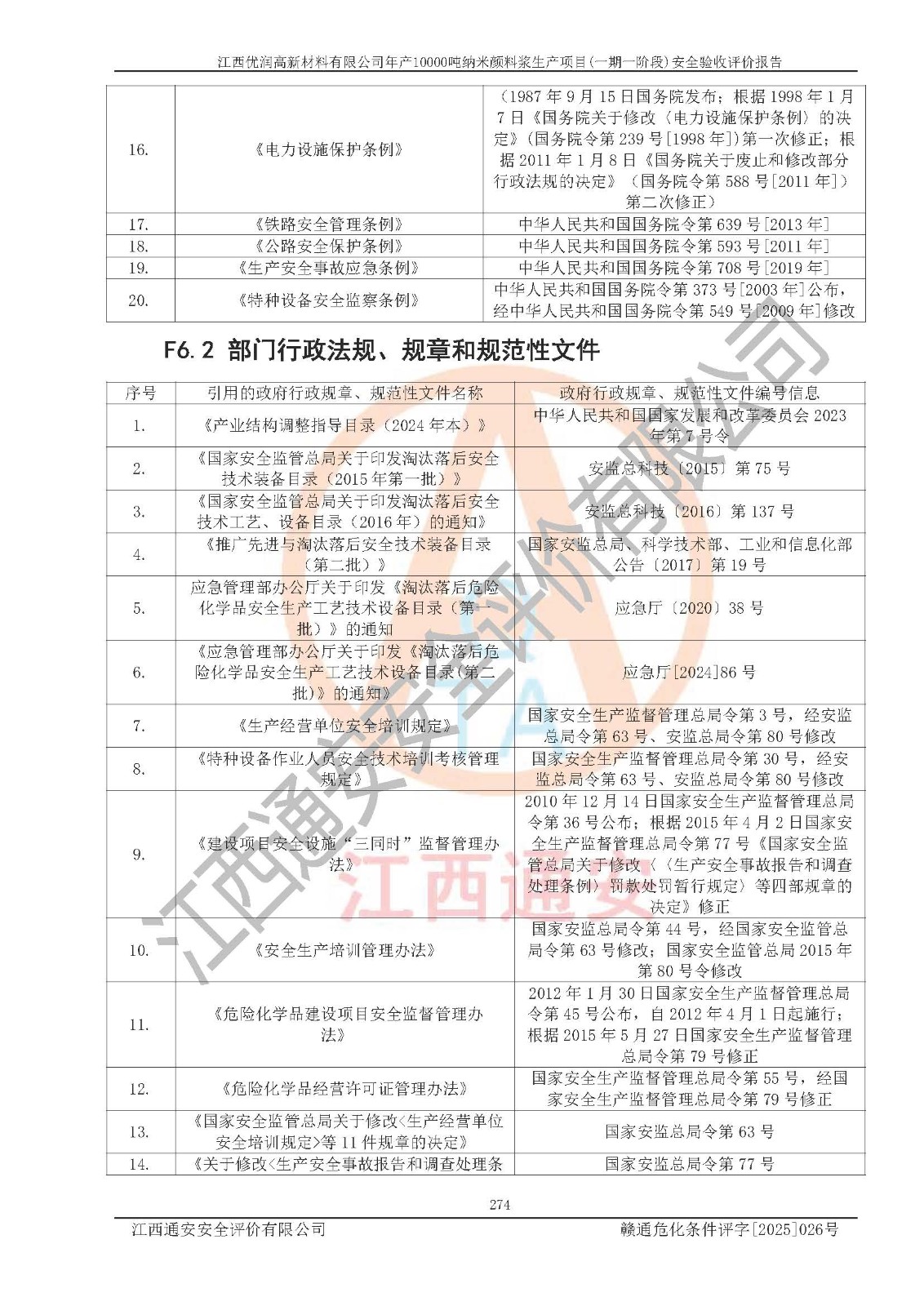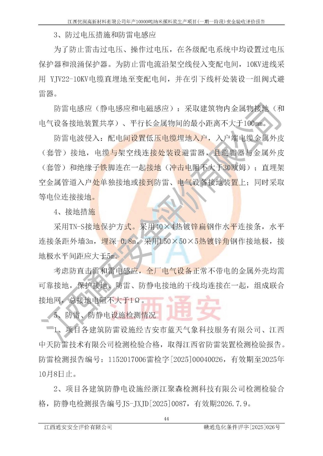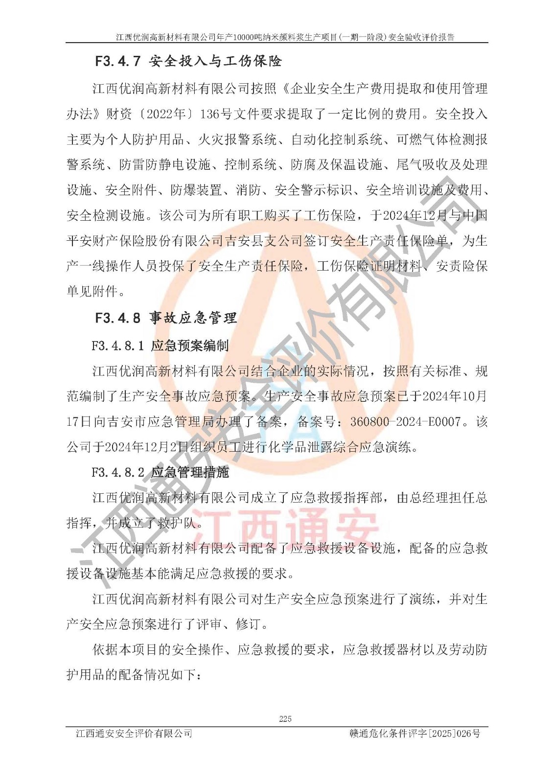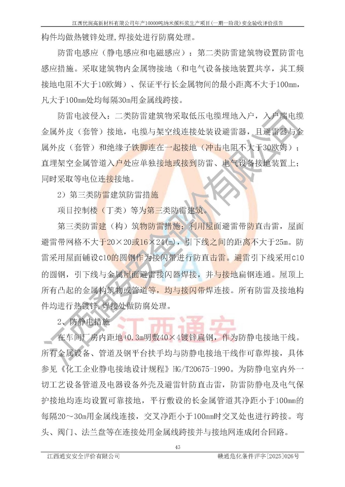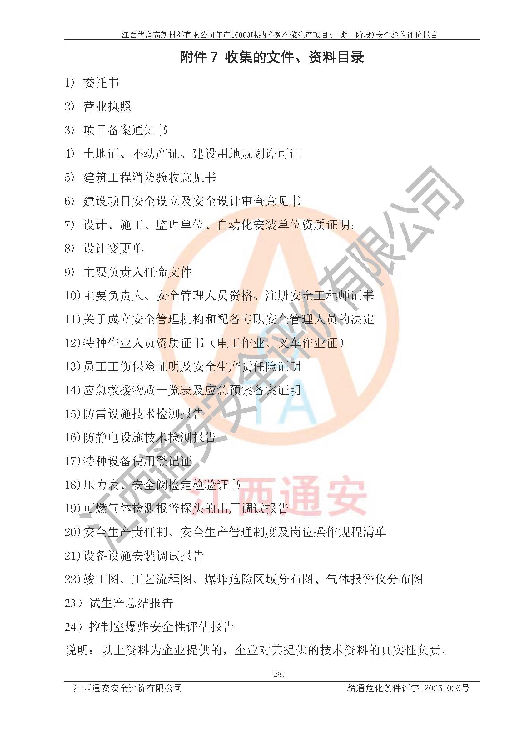 評(píng)價(jià)報(bào)告名稱(chēng) | 江西優(yōu)潤(rùn)高新材料有限公司年產(chǎn)10000噸納米顏料漿生產(chǎn)項(xiàng)目(一期一階段)安全驗(yàn)收評(píng)價(jià)報(bào)告 | |||