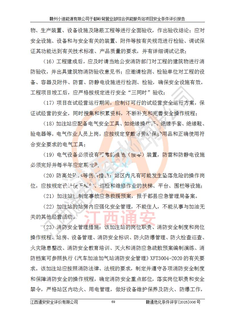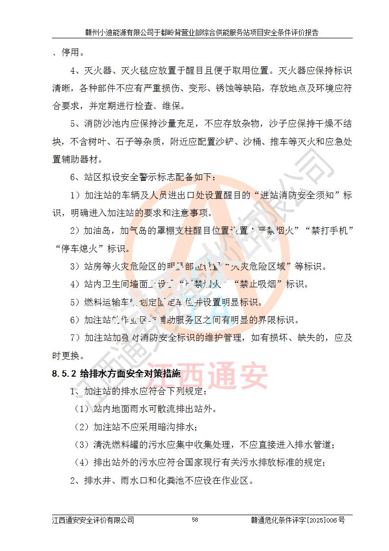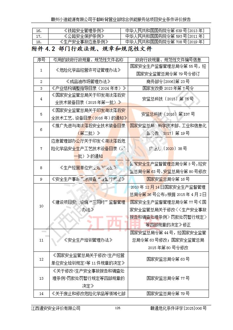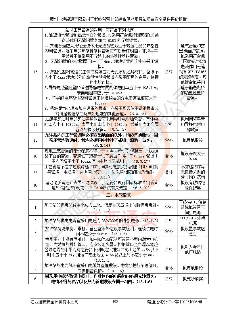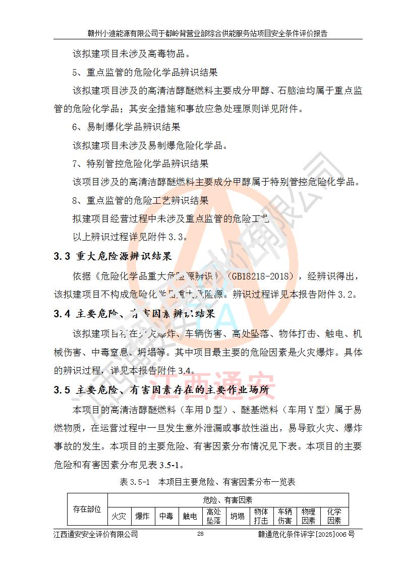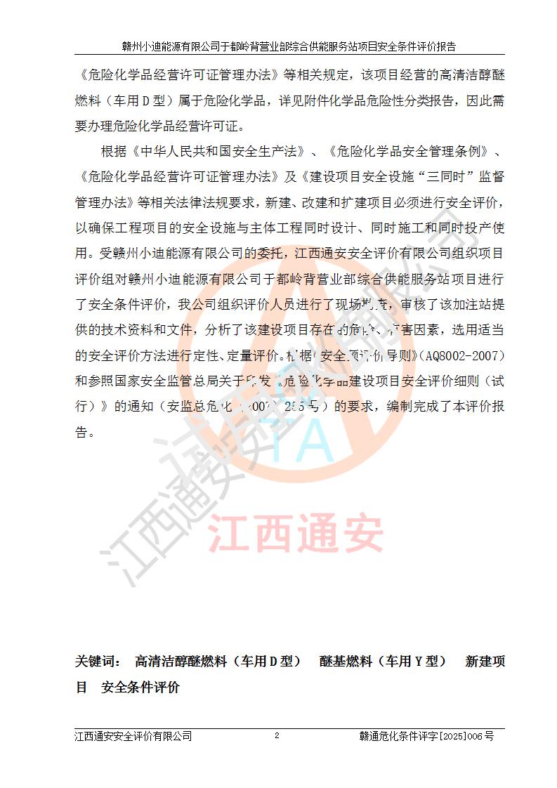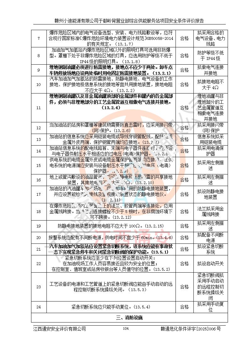 一、安全狀況綜合評(píng)述 通過(guò)對(duì)本項(xiàng)目的危險(xiǎn)、有害因素分析及定性、定量評(píng)價(jià),結(jié)果為: 1)本項(xiàng)目存在的危險(xiǎn)有害因素是火災(zāi)爆炸、**傷害、高處墜落、物體打擊、觸電、機(jī)械傷害、中毒窒息、坍塌等,主要危險(xiǎn)有害因素為火災(zāi)、爆炸等危險(xiǎn)因素。需重點(diǎn)防范的危險(xiǎn)有害因素為火災(zāi)、爆炸。本項(xiàng)目未構(gòu)成危險(xiǎn)化學(xué)品重大危險(xiǎn)源,也不存在劇毒、監(jiān)控、易制毒、易制爆化學(xué)品及高毒物品,高清潔醇醚燃料主要成分甲醇和石腦油為重點(diǎn)監(jiān)管危險(xiǎn)化學(xué)品,應(yīng)按照重點(diǎn)監(jiān)管危險(xiǎn)化學(xué)品相關(guān)規(guī)定管理。 2)預(yù)先危險(xiǎn)性分析表明該加注站儲(chǔ)存、經(jīng)營(yíng)過(guò)程中火災(zāi)、爆炸、觸電的危險(xiǎn)等級(jí)為Ⅲ級(jí),**傷害、高處墜落和中毒窒息等危險(xiǎn)等級(jí)為Ⅱ級(jí)。 3)從作業(yè)條件危險(xiǎn)性分析結(jié)果可以看出,在選定的評(píng)價(jià)單元中卸液作業(yè)、加注作業(yè)、變配電作業(yè)和維修作業(yè)中卸液作業(yè)中火災(zāi)爆炸、**傷害、觸電、中毒、窒息潛在危險(xiǎn)均為一般危險(xiǎn)。 4)從危險(xiǎn)度分析結(jié)果可以看出,燃料罐區(qū)屬中度危險(xiǎn)。 5)根據(jù)選址與總平面布置安全檢查表,該加注站符合《建筑設(shè)計(jì)防火規(guī)范》GB 50016-2014(2018年版)、《汽車(chē)加油加氣加氫站技術(shù)標(biāo)準(zhǔn)》GB50156-2021及《車(chē)用甲醇燃料加注站建設(shè)規(guī)范》(工信廳節(jié)〔2015〕129號(hào))等有關(guān)標(biāo)準(zhǔn)、規(guī)范的規(guī)定。該站與站外建筑物距離符合規(guī)范要求,站外50m內(nèi)無(wú)重要建筑物和明火設(shè)施。 6)根據(jù)立項(xiàng)批文及于都縣自然資源局出具的建設(shè)用地規(guī)劃許可證,該加注站符合有關(guān)部門(mén)的審批。 7)本項(xiàng)目采用成熟的工藝設(shè)備,項(xiàng)目在嚴(yán)格按照**相關(guān)法律、法規(guī)及技術(shù)標(biāo)準(zhǔn)制造、安裝、檢測(cè)檢驗(yàn)的情況下,其安全生產(chǎn)風(fēng)險(xiǎn)程度在可接受范圍。 8)本項(xiàng)目危害物質(zhì)為高清潔醇醚燃料(車(chē)用D型,甲類(lèi))和醚基燃料(車(chē)用Y型,丙類(lèi)),應(yīng)重點(diǎn)注意火災(zāi)、爆炸危害,做好防火防靜電措施。**加注站罐區(qū)、加注區(qū)無(wú)明火產(chǎn)生;卸液口應(yīng)設(shè)置防靜電報(bào)警器,罐區(qū)法蘭應(yīng)跨接,防止靜電引起火災(zāi)爆炸事故。 四、評(píng)價(jià)結(jié)論 贛州小迪能源有限公司于都嶺背營(yíng)業(yè)部綜合供能服務(wù)站項(xiàng)目總平面布置符合相關(guān)規(guī)范的要求。在項(xiàng)目建設(shè)和運(yùn)行階段,總平面布置設(shè)計(jì)、施工圖設(shè)計(jì)和建設(shè)施工、安裝調(diào)試及生產(chǎn)運(yùn)行中,應(yīng)嚴(yán)格執(zhí)行**有關(guān)安全生產(chǎn)法律、法規(guī)和有關(guān)標(biāo)準(zhǔn)、規(guī)范,將本報(bào)告中提出的安全對(duì)策措施落實(shí)到位,真正做到安全設(shè)施與主體工程同時(shí)設(shè)計(jì)、同時(shí)施工、同時(shí)投入生產(chǎn)和使用,項(xiàng)目建成后危險(xiǎn)、有害因素可以得到**控制,安全風(fēng)險(xiǎn)在可接受范圍,擬建的贛州小迪能源有限公司于都嶺背營(yíng)業(yè)部綜合供能服務(wù)站項(xiàng)目符合法律法規(guī)、標(biāo)準(zhǔn)、規(guī)章和規(guī)范的要求。 |